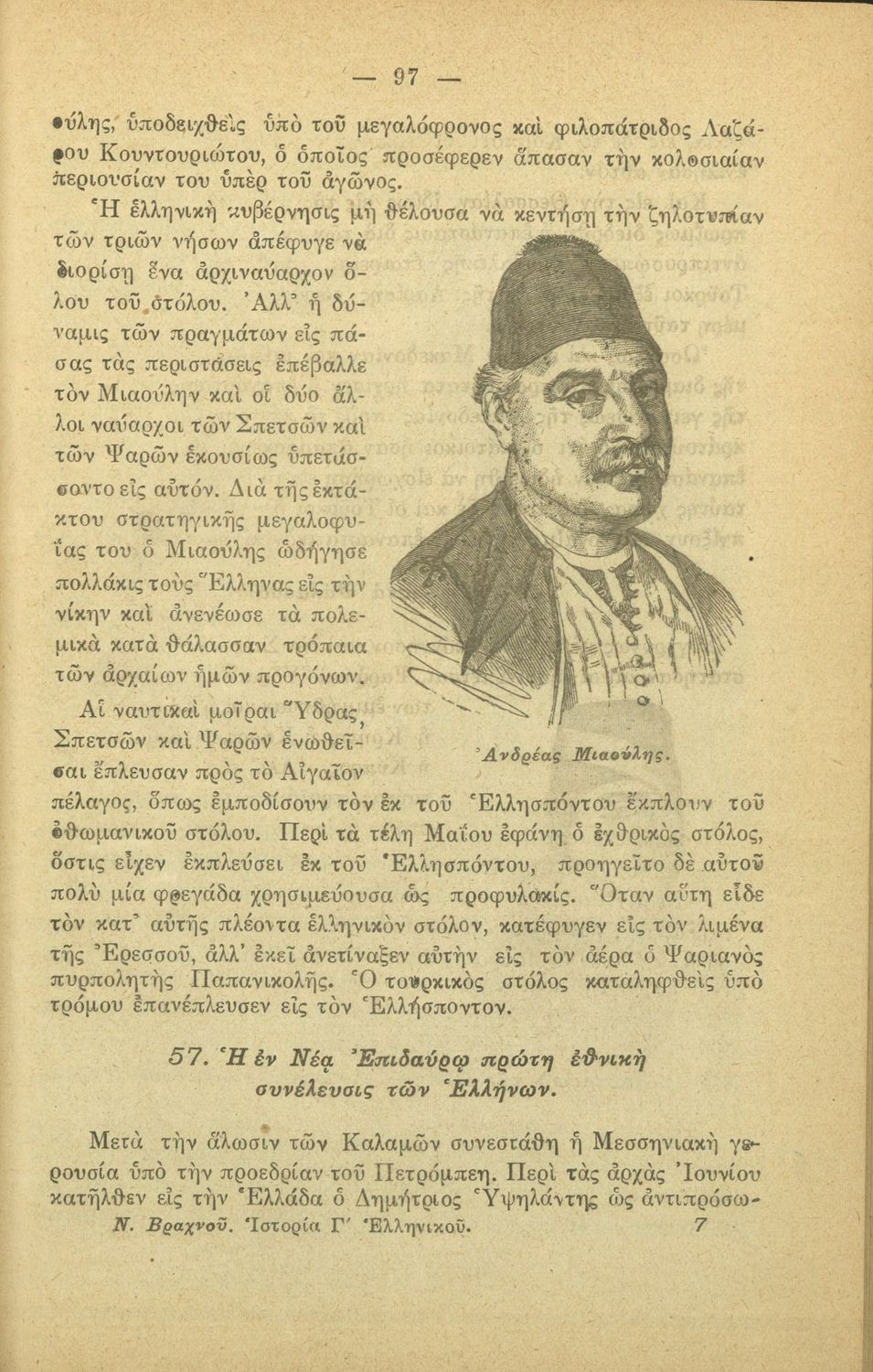 LDR 01612 2200217 4500 035 ## _a20-01406 040 ## _aΚΕΝΕΚ - Εταιρεία Σπουδών Νεοελληνικού Πολιτισμού και Παιδείας 041 ## _ael 100 ## _aΝικόλαος Ι. Βραχνός 110 ## _a1406 245 0# _aΕλληνική ιστορία από των χρόνων της Αχαϊκής συμπολιτείας μέχρι της Αλώσεως της Κωνσταντινούπολης υπό των Φράγκων μέχρι των καθ'ημάς χρόνων και τα κυριωτέρα εκ της νέας και νεωτάτης ευρωπαϊκής ιστορίας διά την Γ΄ τάξιν των Ελληνικών Σχολείων 250 ## _a4η Έκδοση 260 ## _aΑθήνα _bΠρομηθέας _c1922 300 ## _a162 _bΣκίτσα (ασπρόμαυρα) _c20 520 ## _aΣχολικό εγχειρίδιο Ιστορίας Γ' Ελληνικού Σχολείου που καλύπτει την περίοδο από την άλωση της Κωνσταντινούπολης από τους Φράγκους μέχρι την συνθήκη του Βουκουρεστίου. 521 ## _aΓ' Ελληνικού Σχολείου 522 ## _aΕλλάδα 546 ## _aΚαθαρεύουσα 563 ## _aΜαλακό Εξώφυλλο 583 ## _a5712/22-2-1918 _c1918 650 #4 _aΒαλκανικοί Πόλεμοι _aΓαλλική Επανάσταση _aΓεώργιος ο Α΄ _aΕλληνική Επανάσταση _aΚαποδίστριας _aΌθωνας