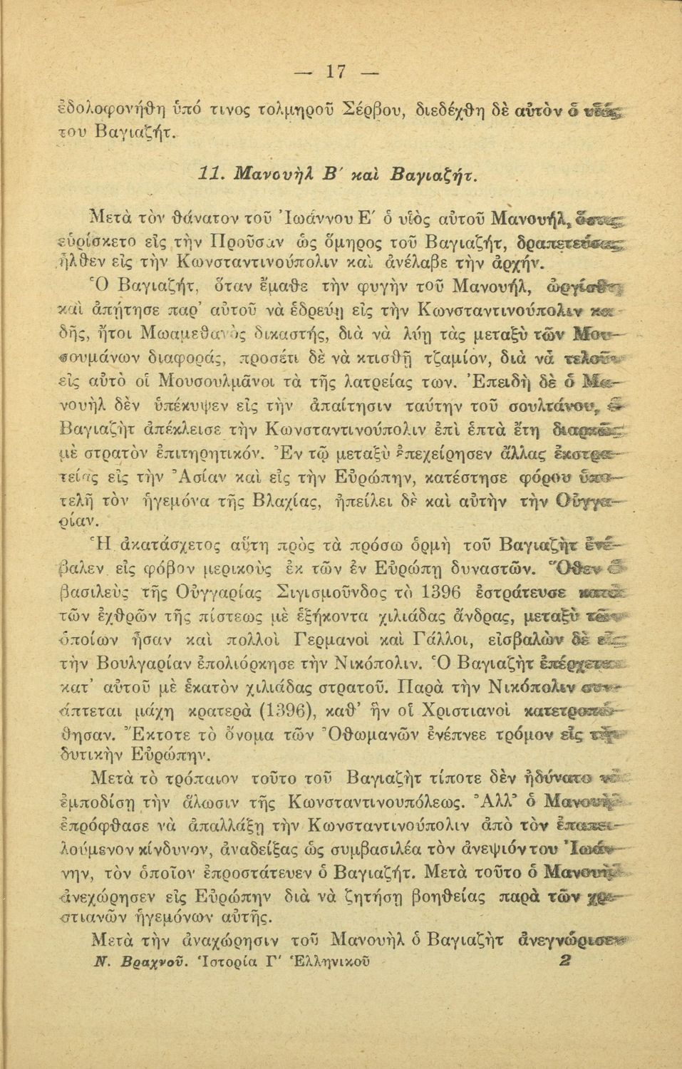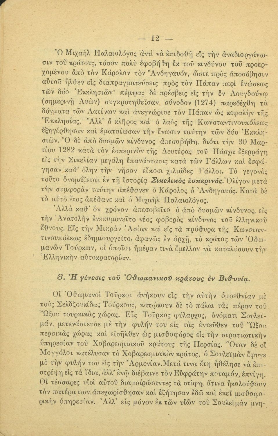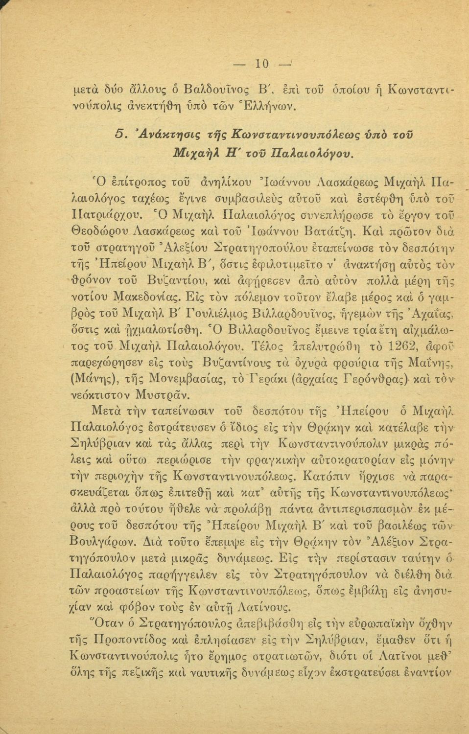 Βαθμίδα εκπαίδευσης: Δευτεροβάθμια Τάξη: Γ' Ελληνικού Σχολείου Μάθημα: Ιστορία Γλώσσα: Καθαρεύουσα Παρουσίαση περιεχομένου: Σχολικό εγχειρίδιο Ιστορίας Γ' Ελληνικού Σχολείου που καλύπτει την περίοδο από την άλωση της Κωνσταντινούπολης από τους Φράγκους μέχρι την συνθήκη του Βουκουρεστίου. |