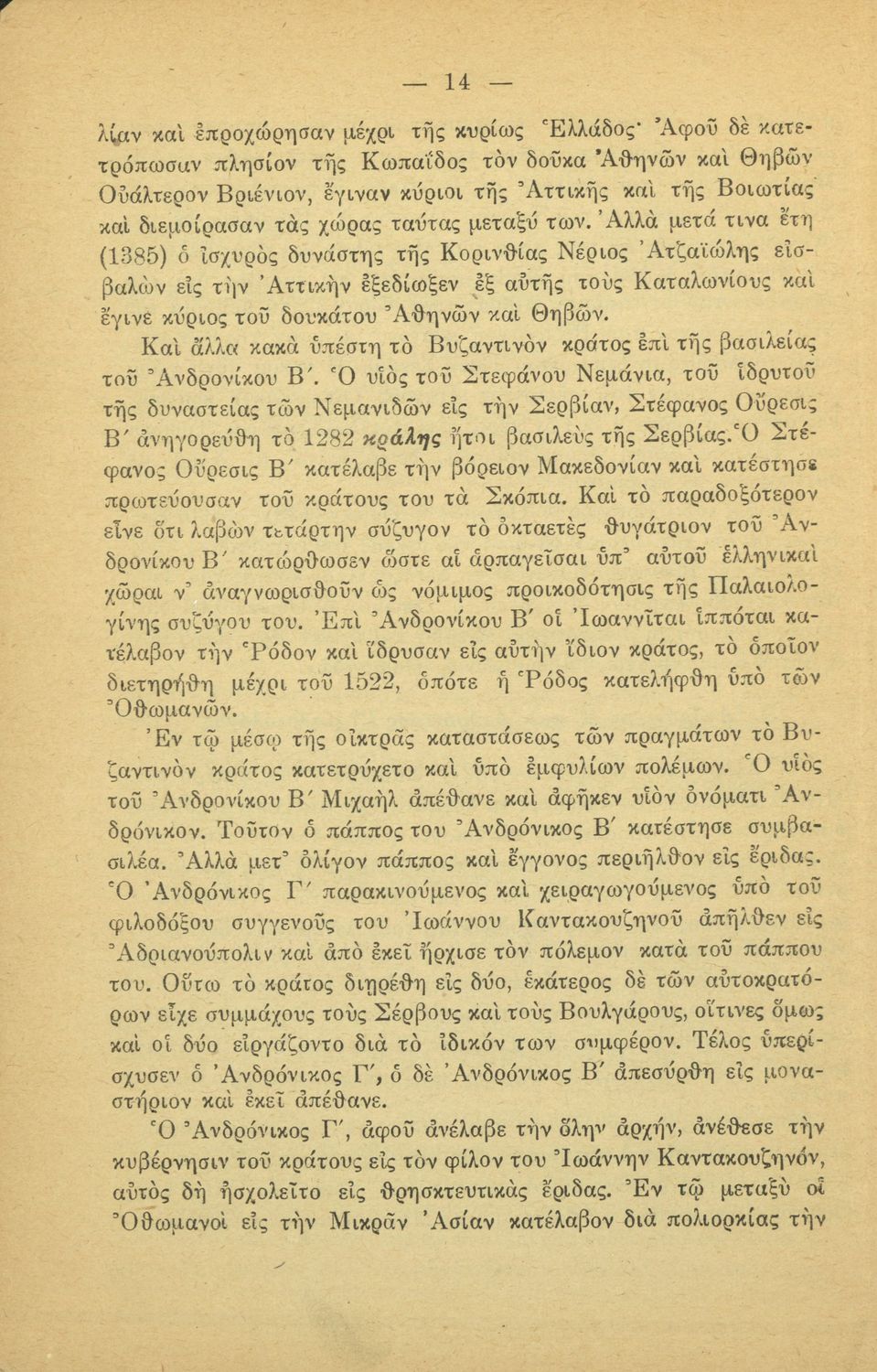 LDR 01612 2200217 4500 035 ## _a20-01406 040 ## _aΚΕΝΕΚ - Εταιρεία Σπουδών Νεοελληνικού Πολιτισμού και Παιδείας 041 ## _ael 100 ## _aΝικόλαος Ι. Βραχνός 110 ## _a1406 245 0# _aΕλληνική ιστορία από των χρόνων της Αχαϊκής συμπολιτείας μέχρι της Αλώσεως της Κωνσταντινούπολης υπό των Φράγκων μέχρι των καθ'ημάς χρόνων και τα κυριωτέρα εκ της νέας και νεωτάτης ευρωπαϊκής ιστορίας διά την Γ΄ τάξιν των Ελληνικών Σχολείων 250 ## _a4η Έκδοση 260 ## _aΑθήνα _bΠρομηθέας _c1922 300 ## _a162 _bΣκίτσα (ασπρόμαυρα) _c20 520 ## _aΣχολικό εγχειρίδιο Ιστορίας Γ' Ελληνικού Σχολείου που καλύπτει την περίοδο από την άλωση της Κωνσταντινούπολης από τους Φράγκους μέχρι την συνθήκη του Βουκουρεστίου. 521 ## _aΓ' Ελληνικού Σχολείου 522 ## _aΕλλάδα 546 ## _aΚαθαρεύουσα 563 ## _aΜαλακό Εξώφυλλο 583 ## _a5712/22-2-1918 _c1918 650 #4 _aΒαλκανικοί Πόλεμοι _aΓαλλική Επανάσταση _aΓεώργιος ο Α΄ _aΕλληνική Επανάσταση _aΚαποδίστριας _aΌθωνας