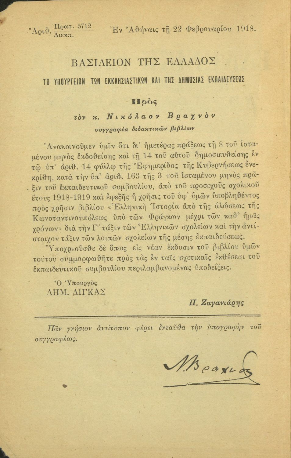 Εκδότης: Προμηθέας Έτος έκδοσης: 1922 Τόπος έκδοσης: Αθήνα Έκδοση: 4η Υπουργική απόφαση / Σύμβαση: 5712/22-2-1918 Έτος έγκρισης: 1918 |