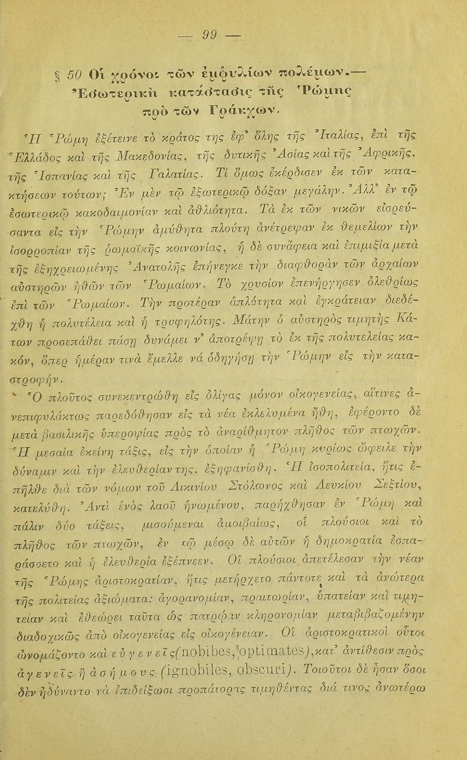 Βαθμίδα εκπαίδευσης: Δευτεροβάθμια Τάξη: Γυμνάσιο Μάθημα: Ιστορία Γλώσσα: Καθαρεύουσα Παρουσίαση περιεχομένου: Μαθητικό βοήθημα Ιστορίας Γυμνασίου που καλύπτει το διάστημα από τη ίδρυση της Ρώμης ως την περίοδο του Διοκλητιανού. |