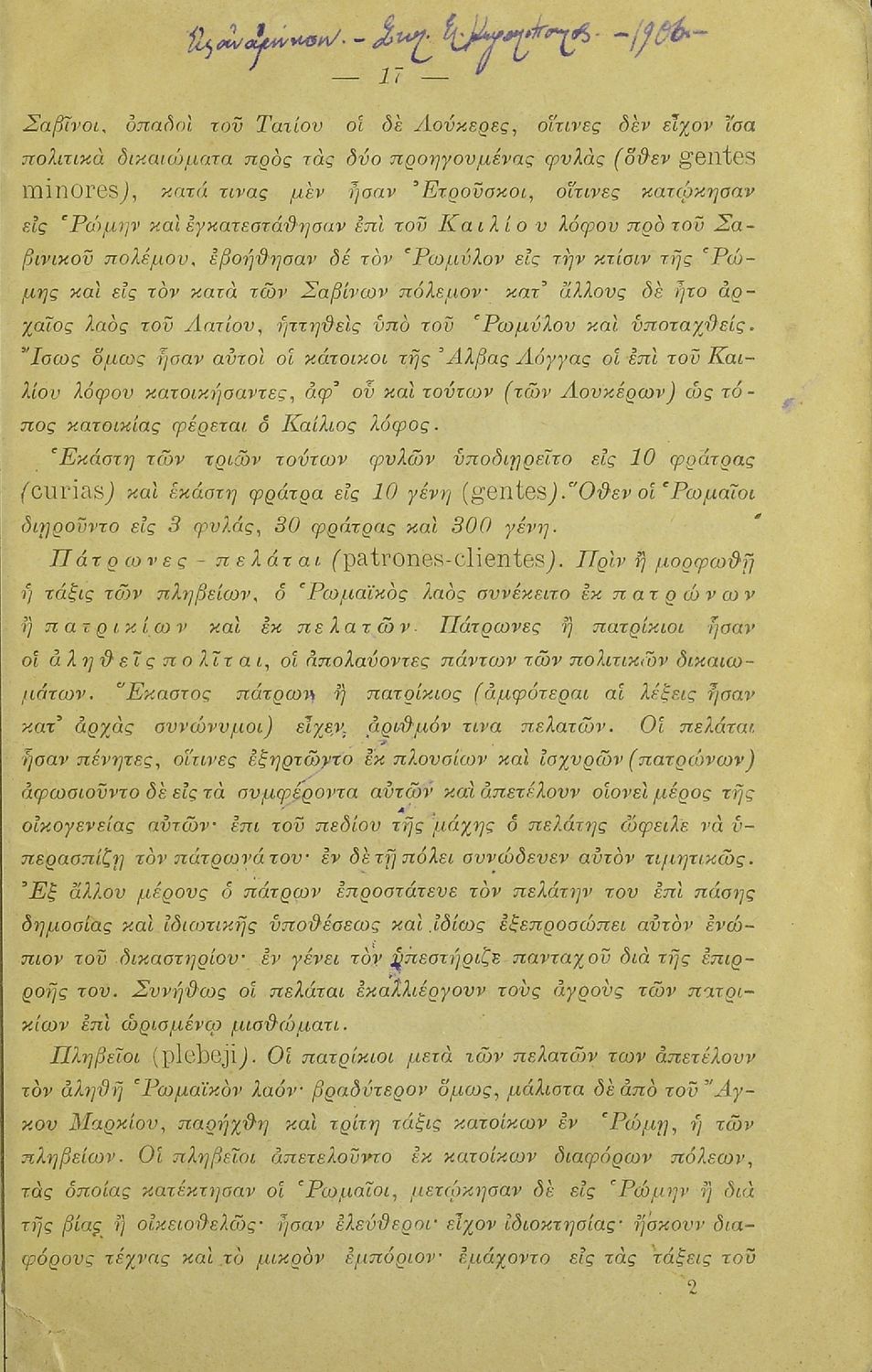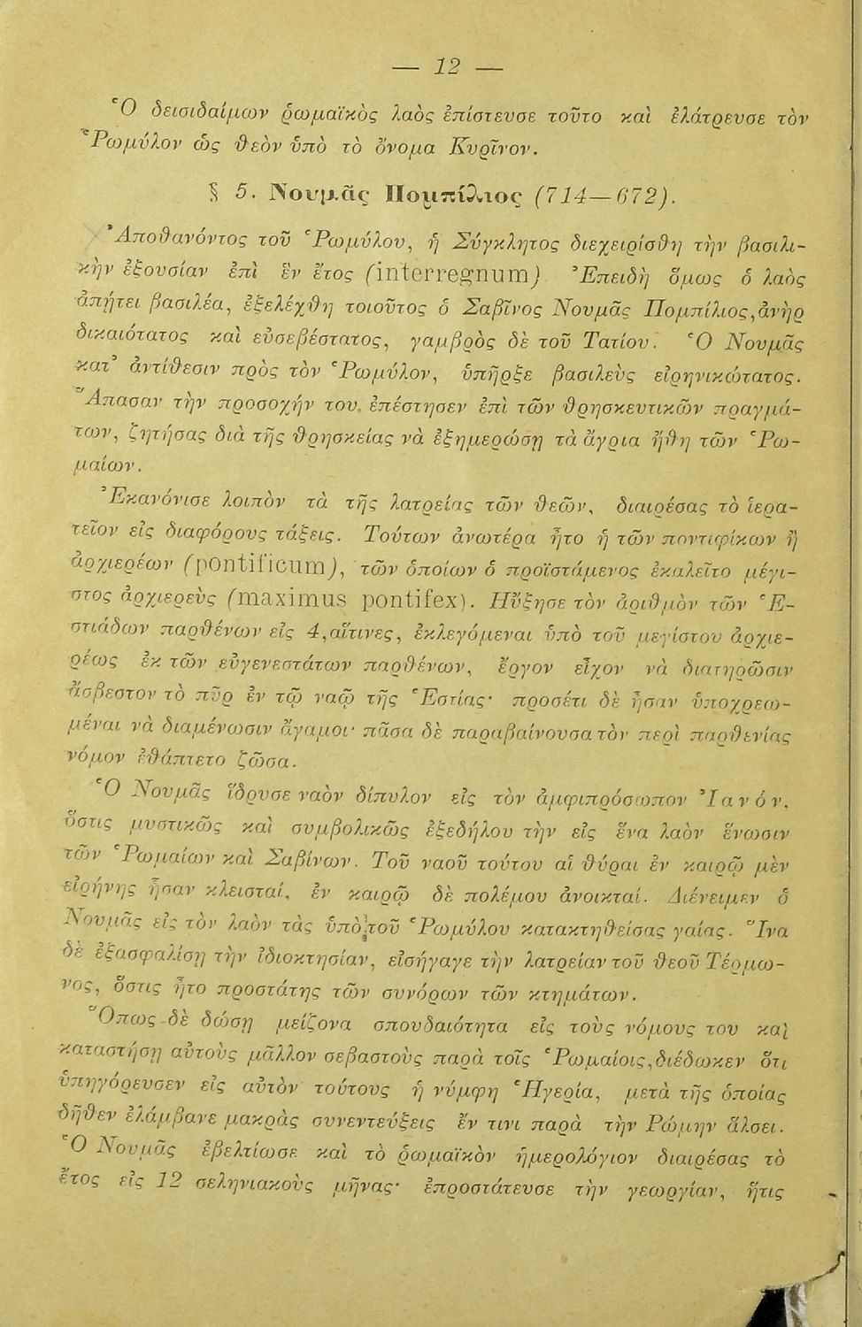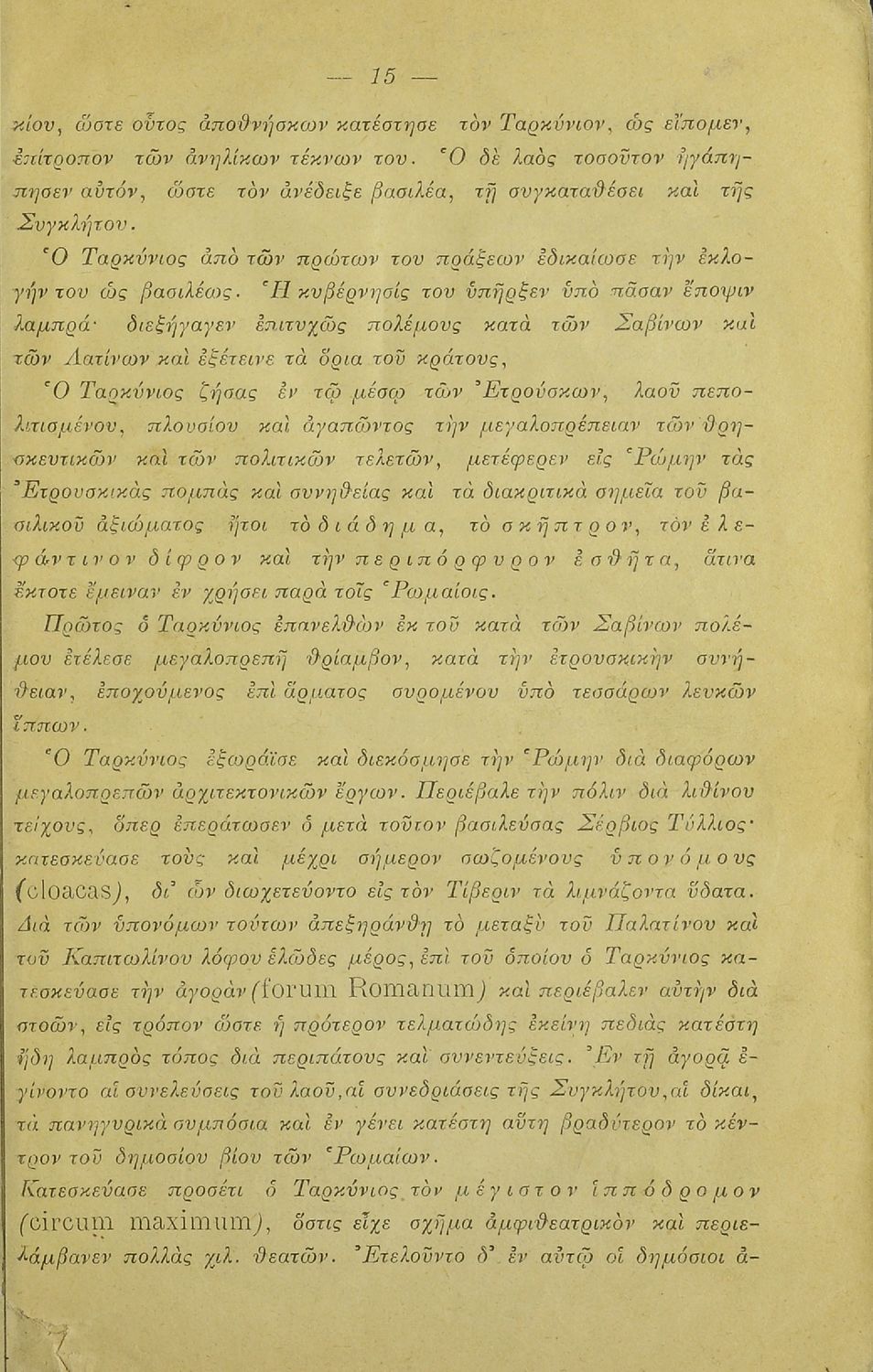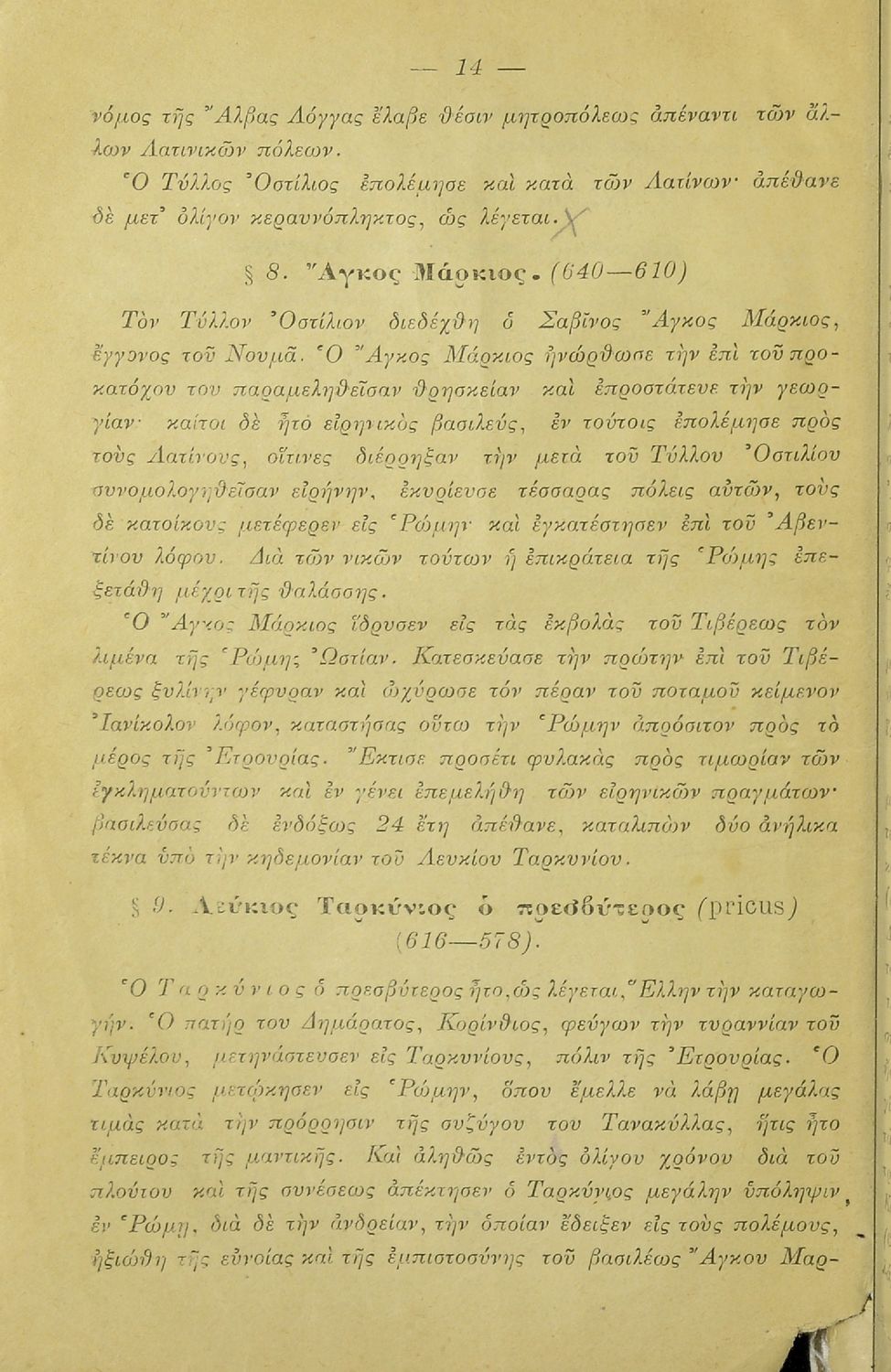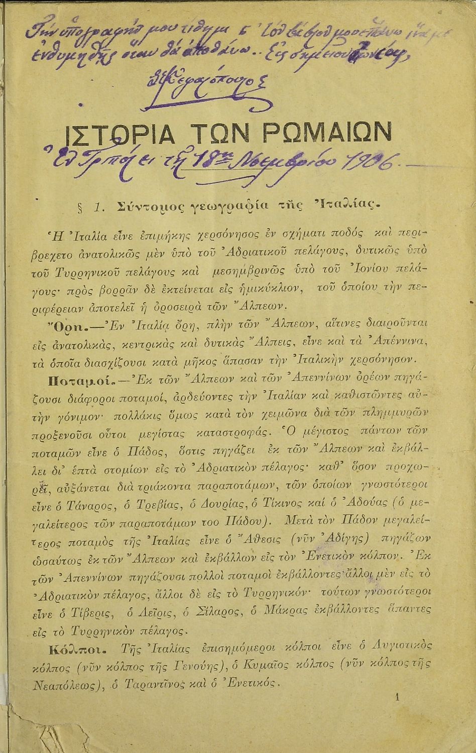 Βαθμίδα εκπαίδευσης: Δευτεροβάθμια Τάξη: Γυμνάσιο Μάθημα: Ιστορία Γλώσσα: Καθαρεύουσα Παρουσίαση περιεχομένου: Μαθητικό βοήθημα Ιστορίας Γυμνασίου που καλύπτει το διάστημα από τη ίδρυση της Ρώμης ως την περίοδο του Διοκλητιανού. |