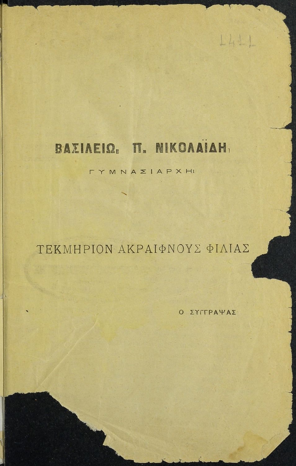 Εντοπισμός πρωτοτύπου: ΚΕΝΕΚ - Εταιρεία Σπουδών Νεοελληνικού Πολιτισμού και Παιδείας Κωδικός βιβλιοθήκης: 1411 |