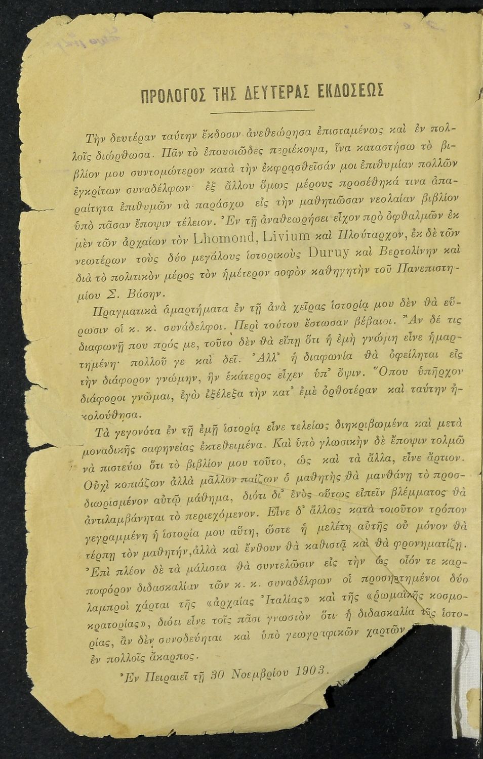 LDR 01203 2200205 4500 035 ## _a20-01411 040 ## _aΚΕΝΕΚ - Εταιρεία Σπουδών Νεοελληνικού Πολιτισμού και Παιδείας 041 ## _ael 100 ## _aΝικόλαος Ι. Βραχνός 110 ## _a1411 245 0# _aΙστορία των Ρωμαίων μέχρι του Μεγάλου Κωνσταντίνου προς χρήσιν των μαθητών των Γυμνασίων 250 ## _a3η Έκδοση 260 ## _aΑθήνα _bΙωάννης Ν. Σιδέρης _c1906 300 ## _a186 _c20 520 ## _aΜαθητικό βοήθημα Ιστορίας Γυμνασίου που καλύπτει το διάστημα από τη ίδρυση της Ρώμης ως την περίοδο του Διοκλητιανού. 521 ## _aΓυμνάσιο 522 ## _aΕλλάδα 546 ## _aΚαθαρεύουσα 563 ## _aΜαλακό Εξώφυλλο 650 #4 _aΑνδριανός _aΔιοκλητιανός _aΙούλιος Καίσαρας _aΚαρχηδονιακοί πόλεμοι _aΜεγάλος Κωνσταντίνος _aΟκταβιανός _aΡωμύλος _aΤαρκύνιοι