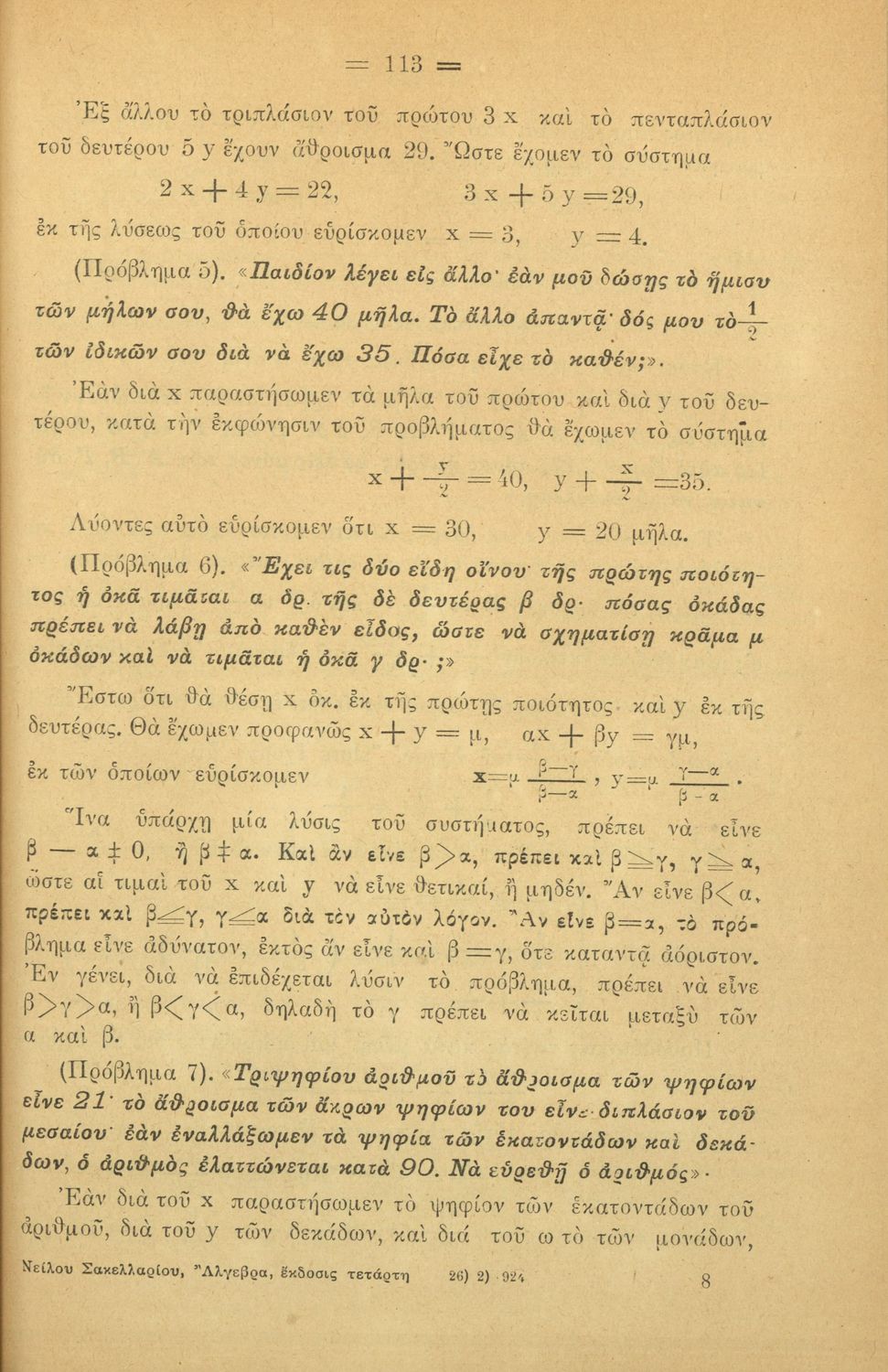 Σχολικό εγχειρίδιο Άλγεβρας για τα Γυμνάσια χωρισμένο σε θεωρία και ασκήσεις. Ο συγγραφέας ήταν καθηγητής στο Πανεπιστήμιο Αθηνών.