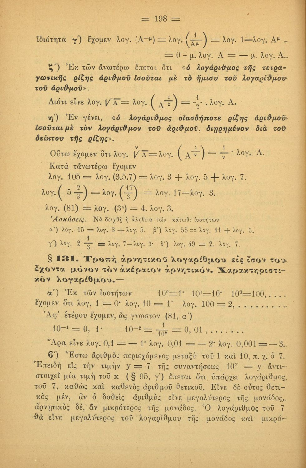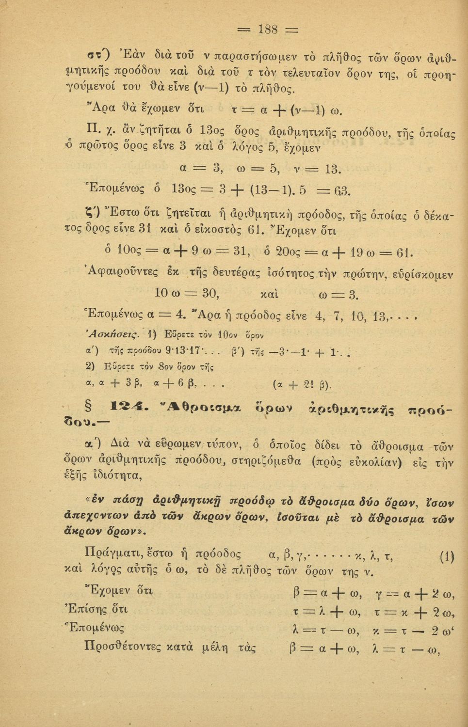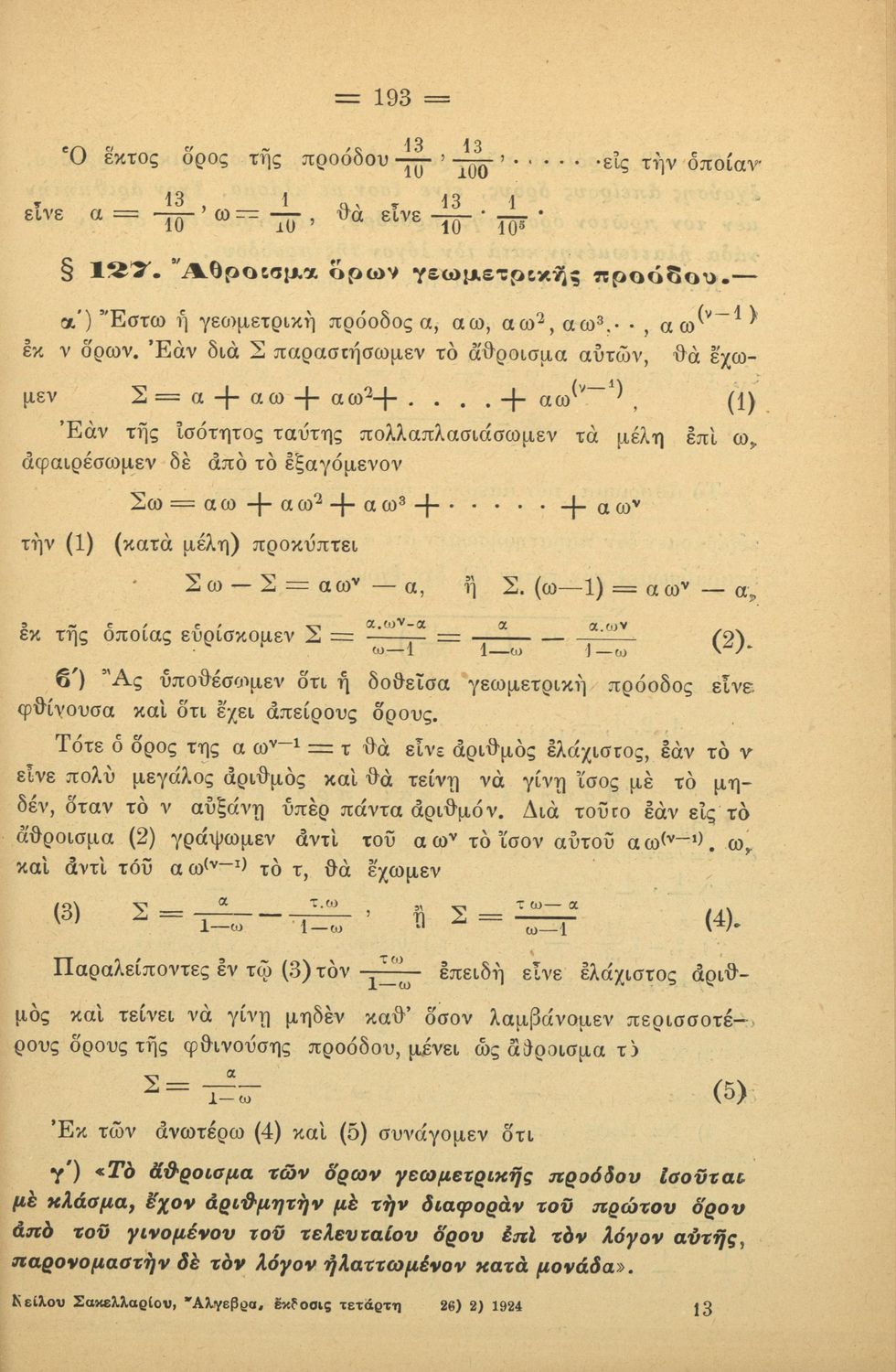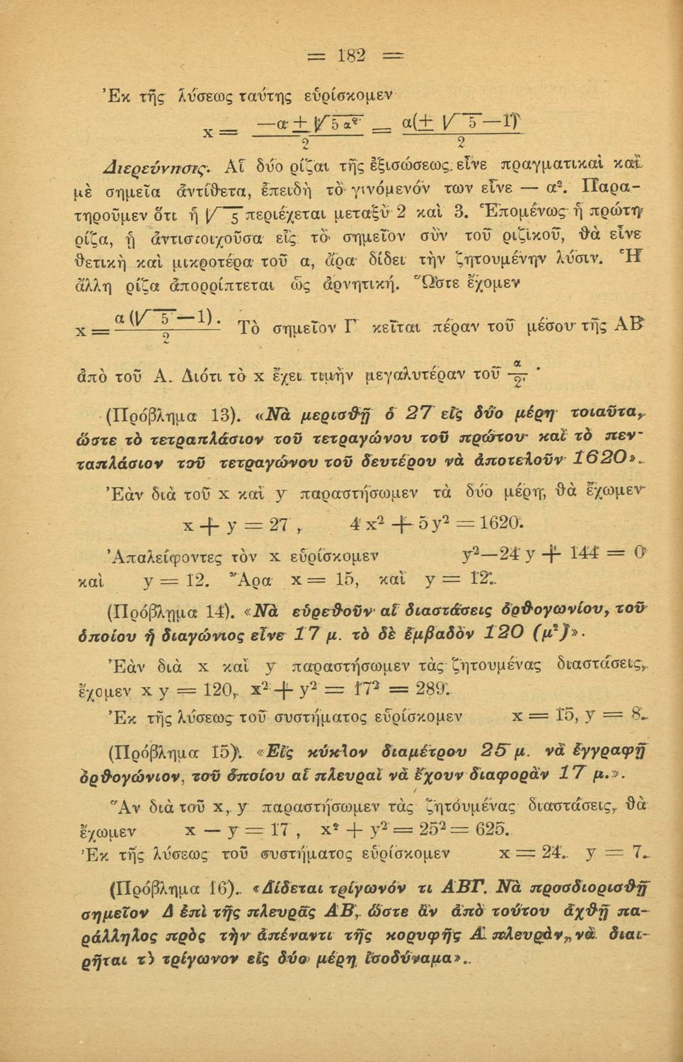 Σχολικό εγχειρίδιο Άλγεβρας για τα Γυμνάσια χωρισμένο σε θεωρία και ασκήσεις. Ο συγγραφέας ήταν καθηγητής στο Πανεπιστήμιο Αθηνών.