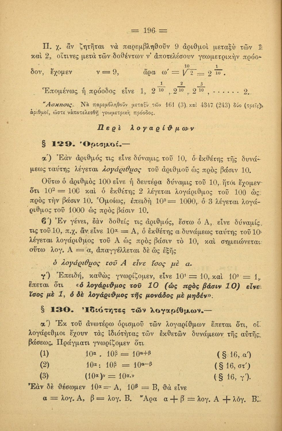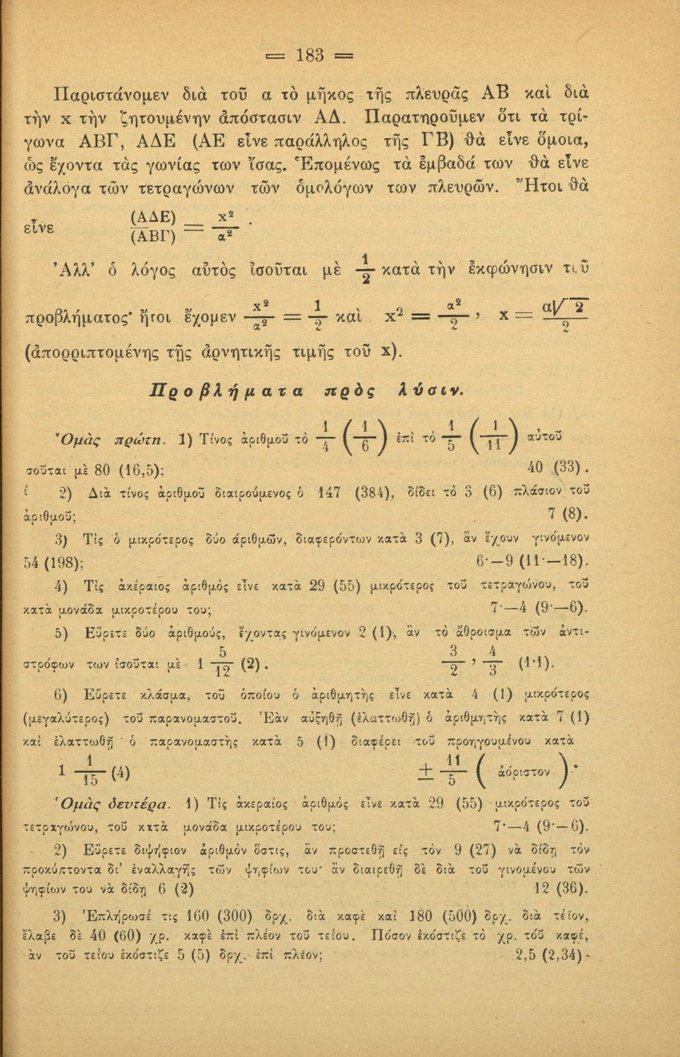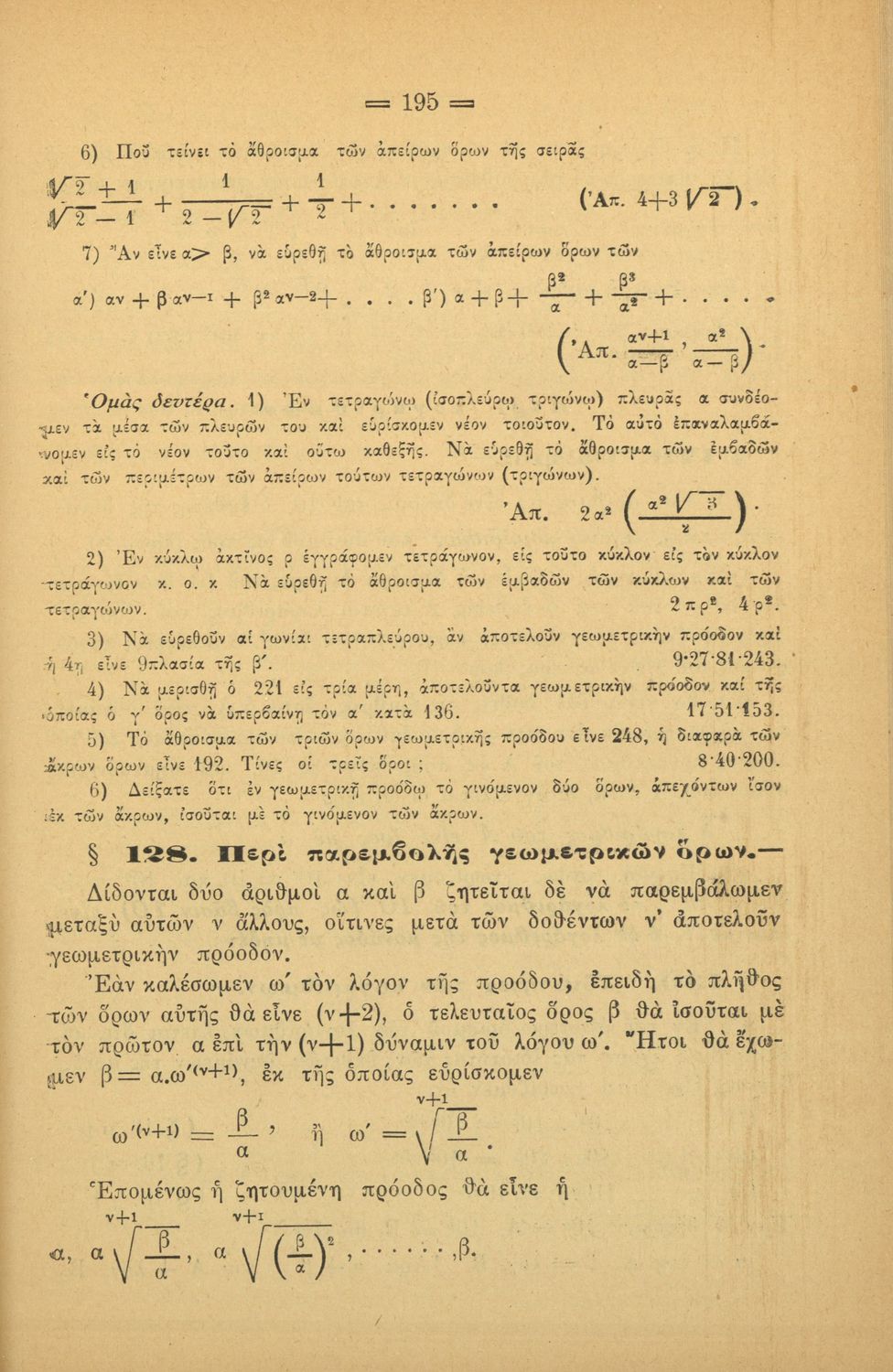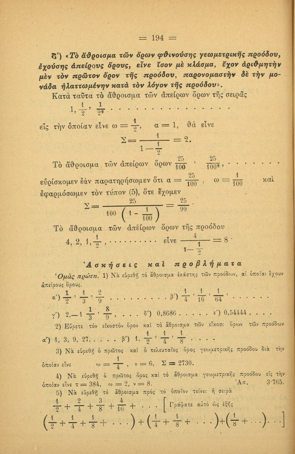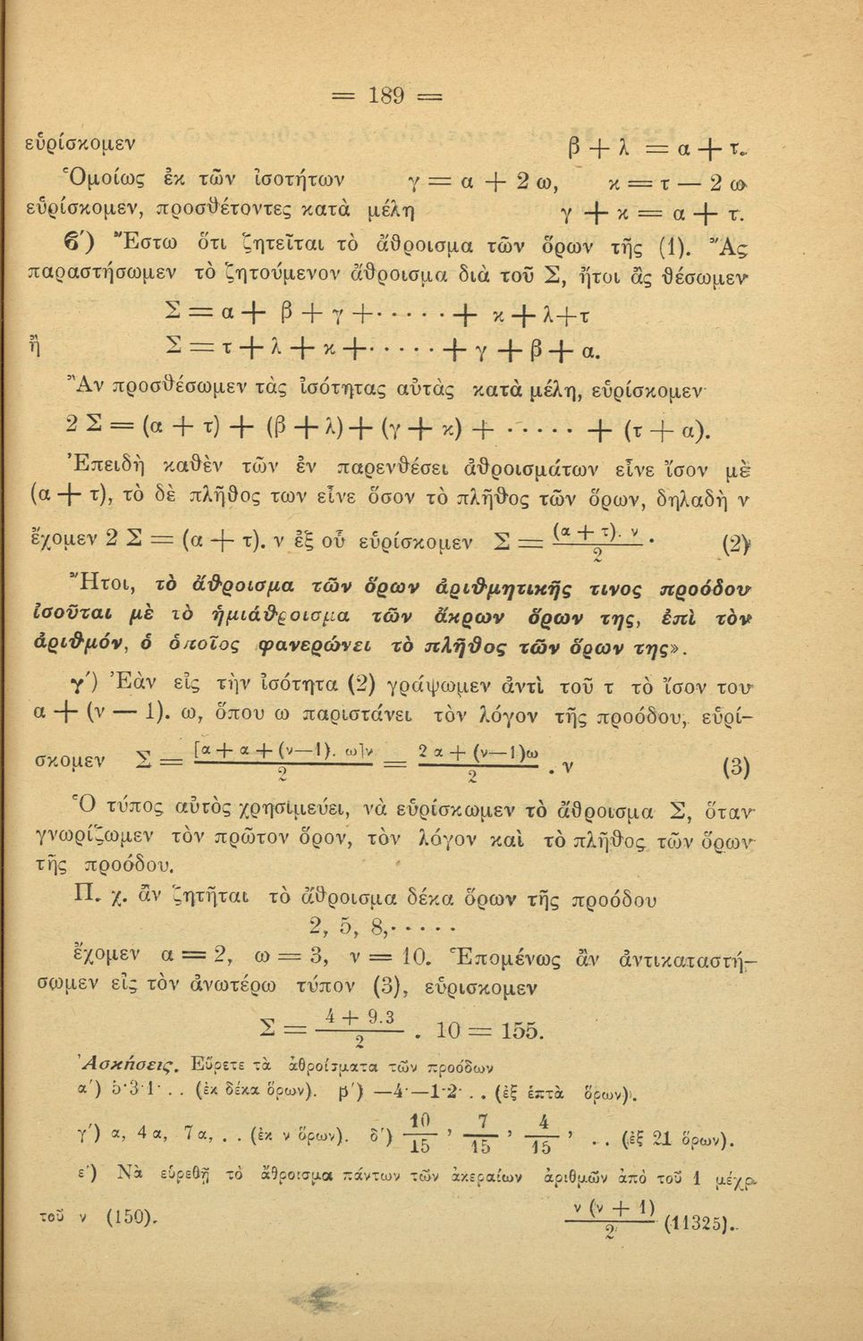 Σχολικό εγχειρίδιο Άλγεβρας για τα Γυμνάσια χωρισμένο σε θεωρία και ασκήσεις. Ο συγγραφέας ήταν καθηγητής στο Πανεπιστήμιο Αθηνών.