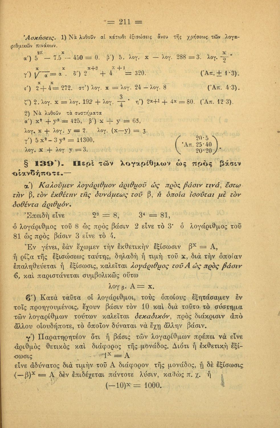 Σχολικό εγχειρίδιο Άλγεβρας για τα Γυμνάσια χωρισμένο σε θεωρία και ασκήσεις. Ο συγγραφέας ήταν καθηγητής στο Πανεπιστήμιο Αθηνών.