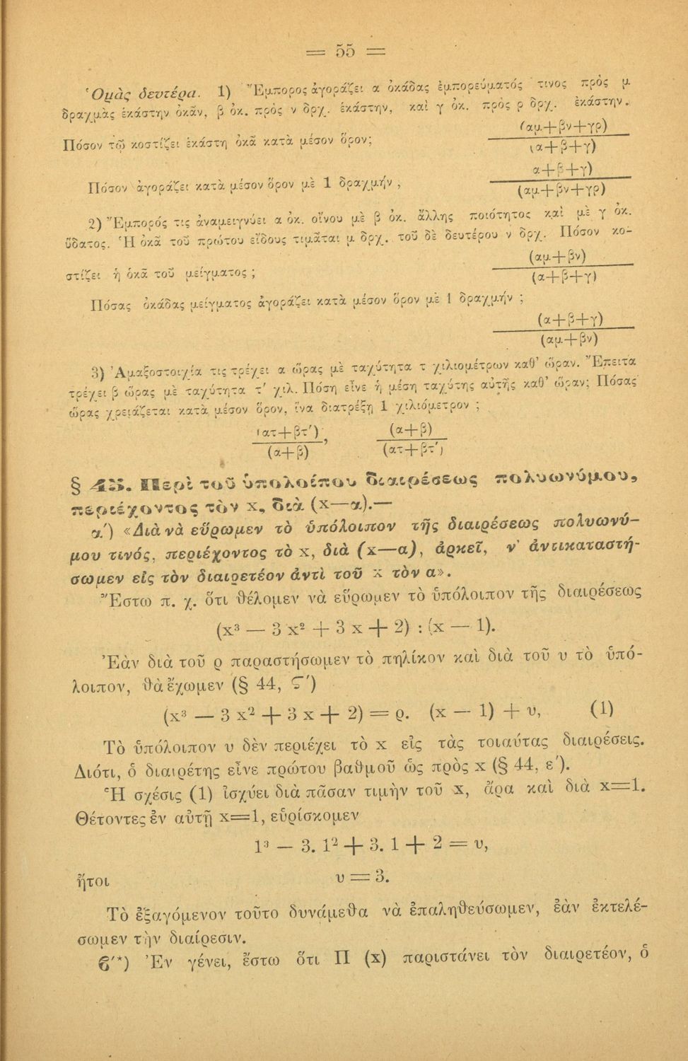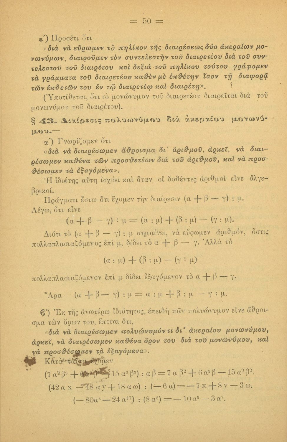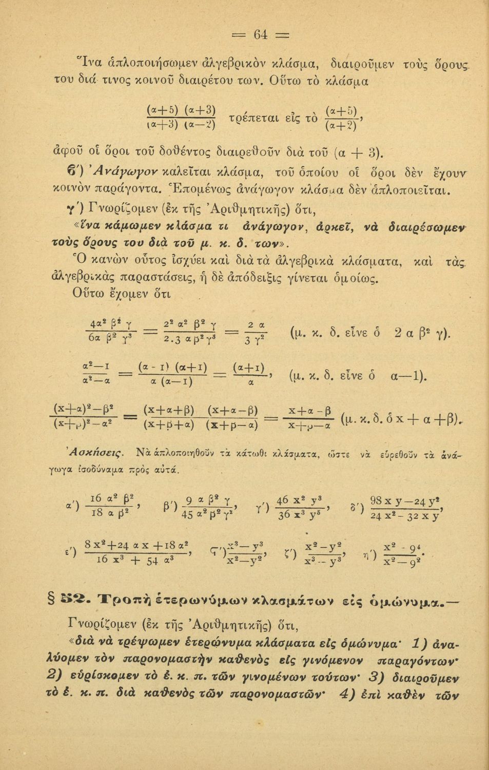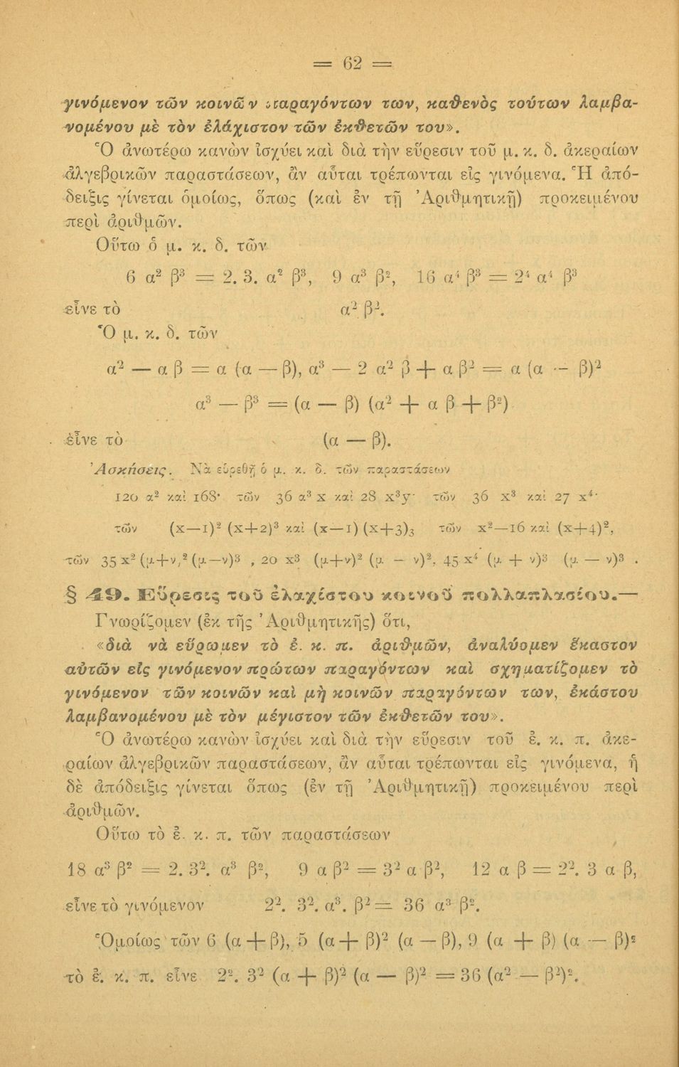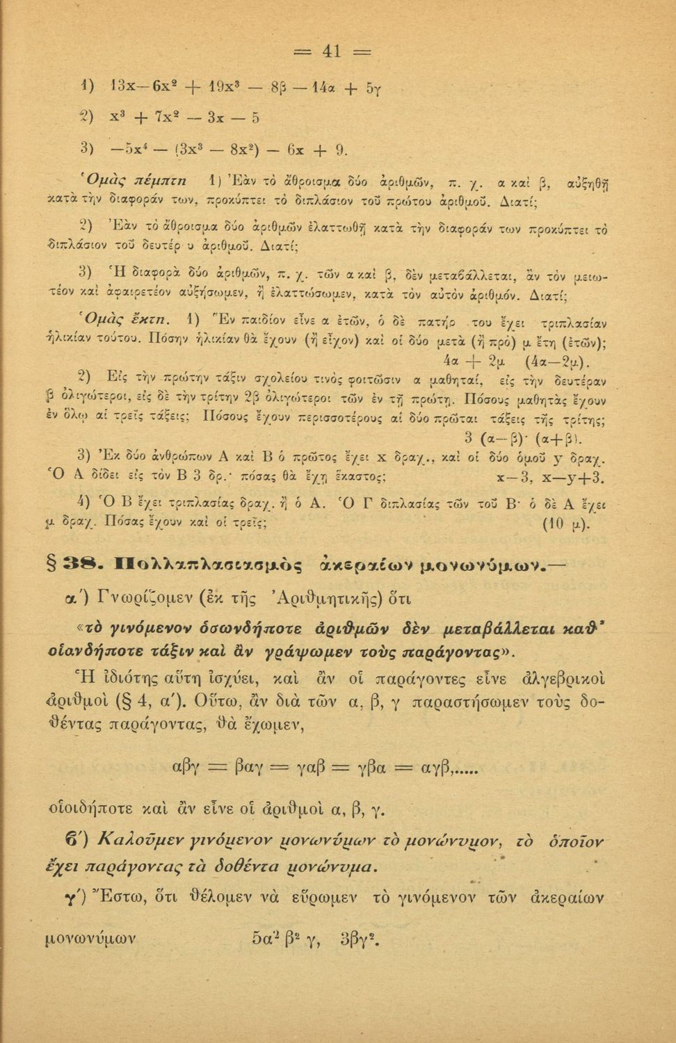 Σχολικό εγχειρίδιο Άλγεβρας για τα Γυμνάσια χωρισμένο σε θεωρία και ασκήσεις. Ο συγγραφέας ήταν καθηγητής στο Πανεπιστήμιο Αθηνών.