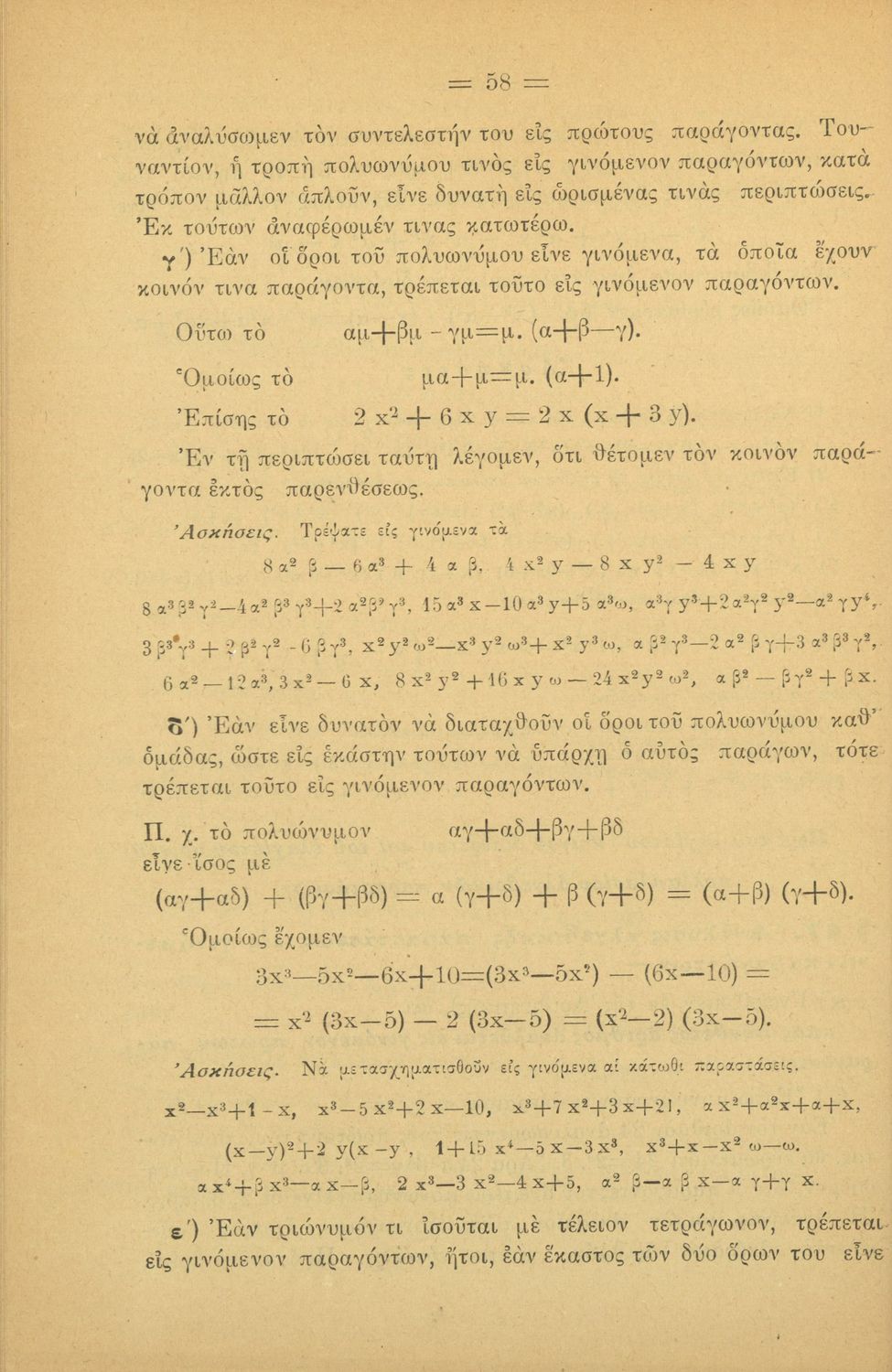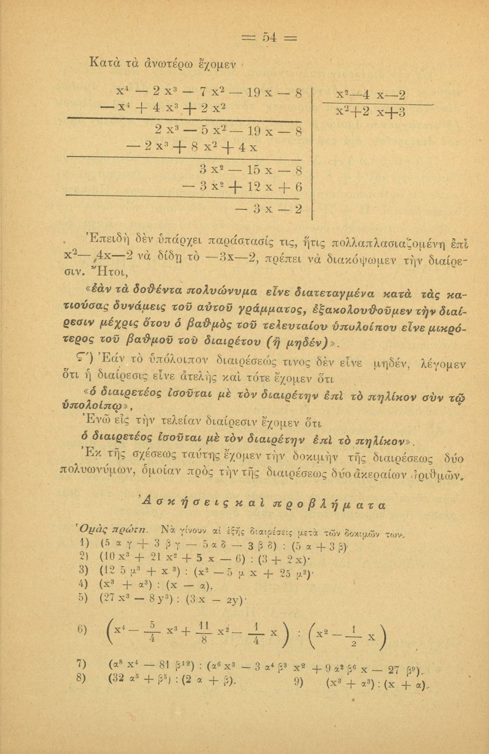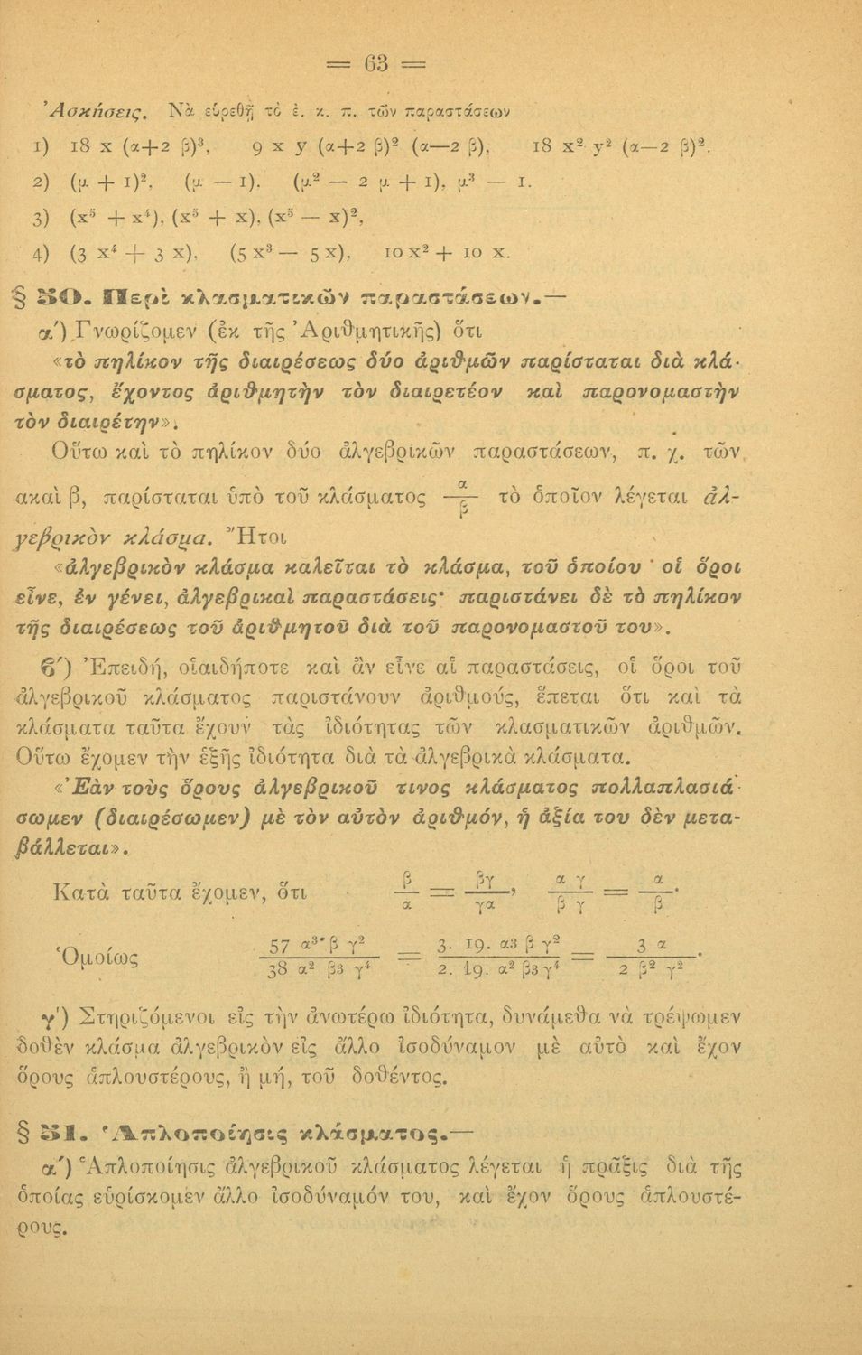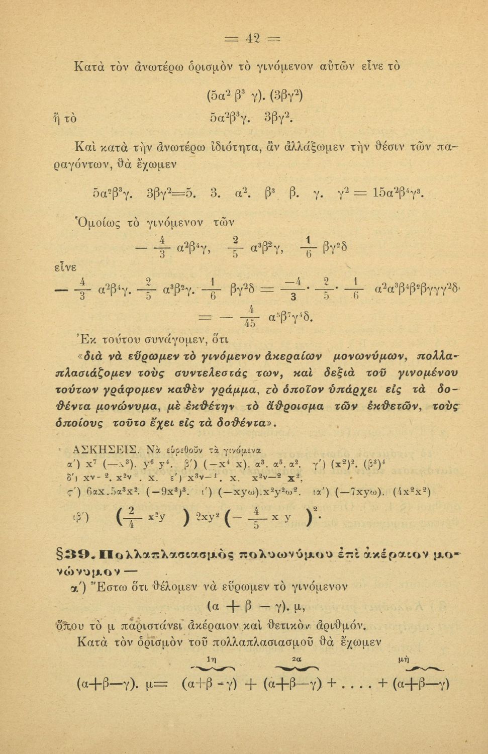 Σχολικό εγχειρίδιο Άλγεβρας για τα Γυμνάσια χωρισμένο σε θεωρία και ασκήσεις. Ο συγγραφέας ήταν καθηγητής στο Πανεπιστήμιο Αθηνών.