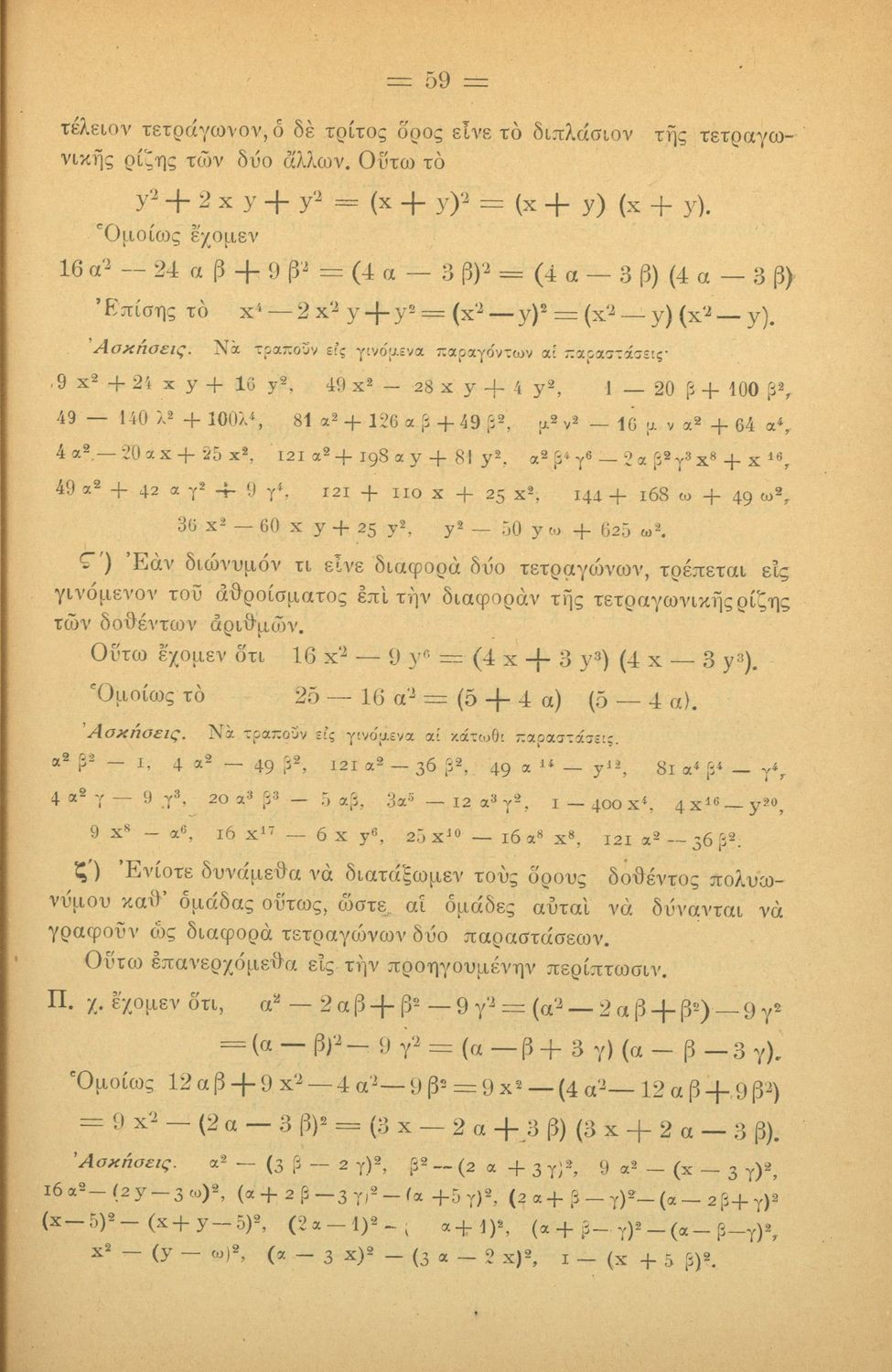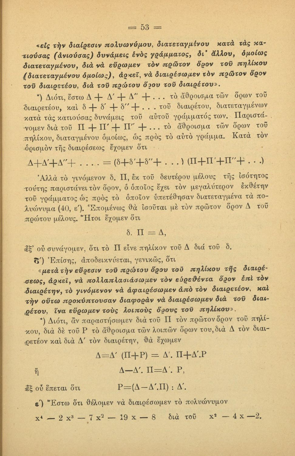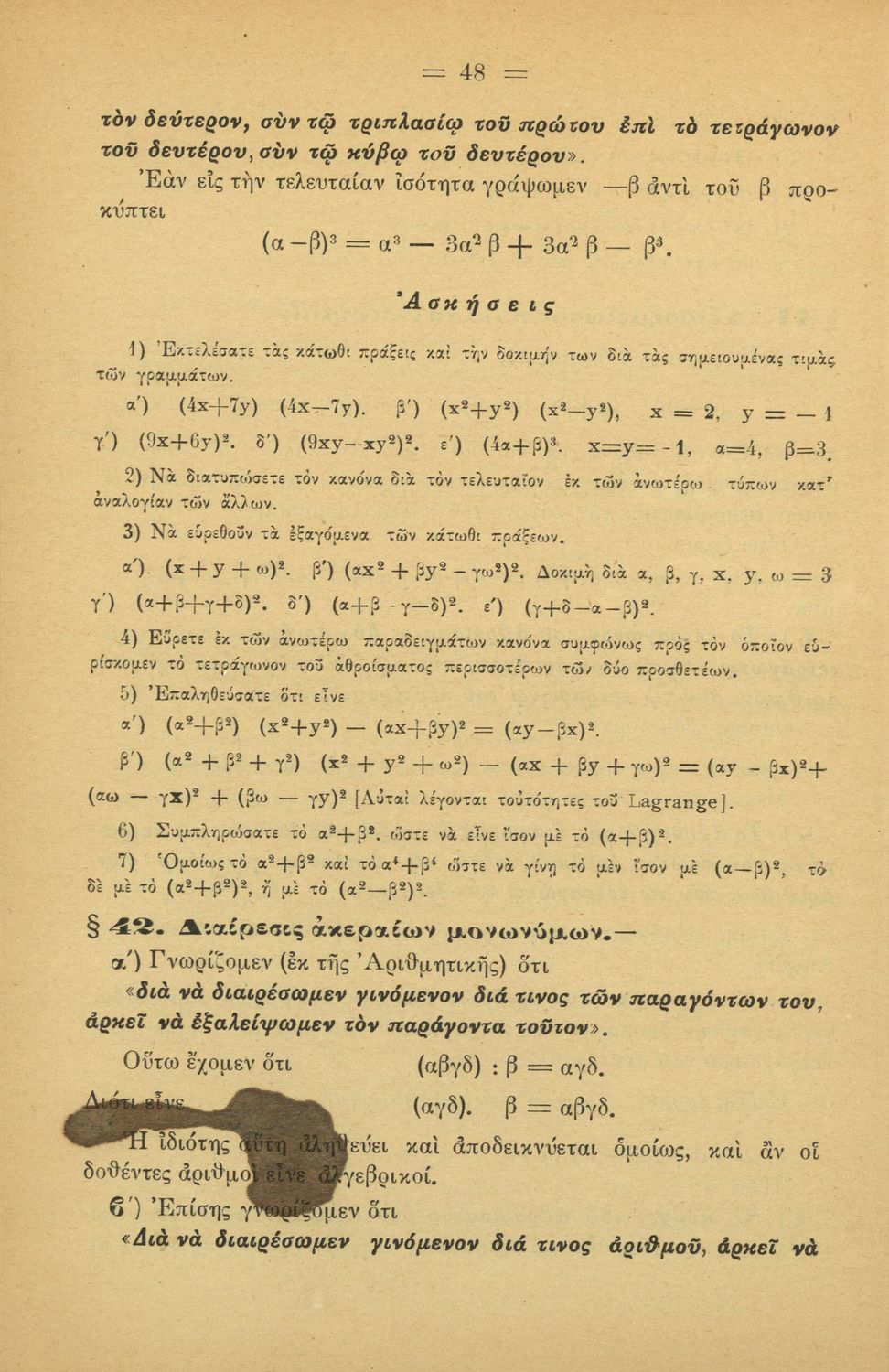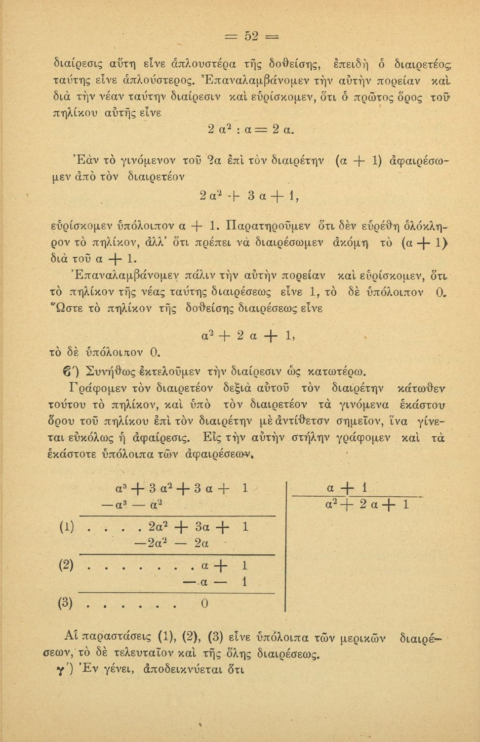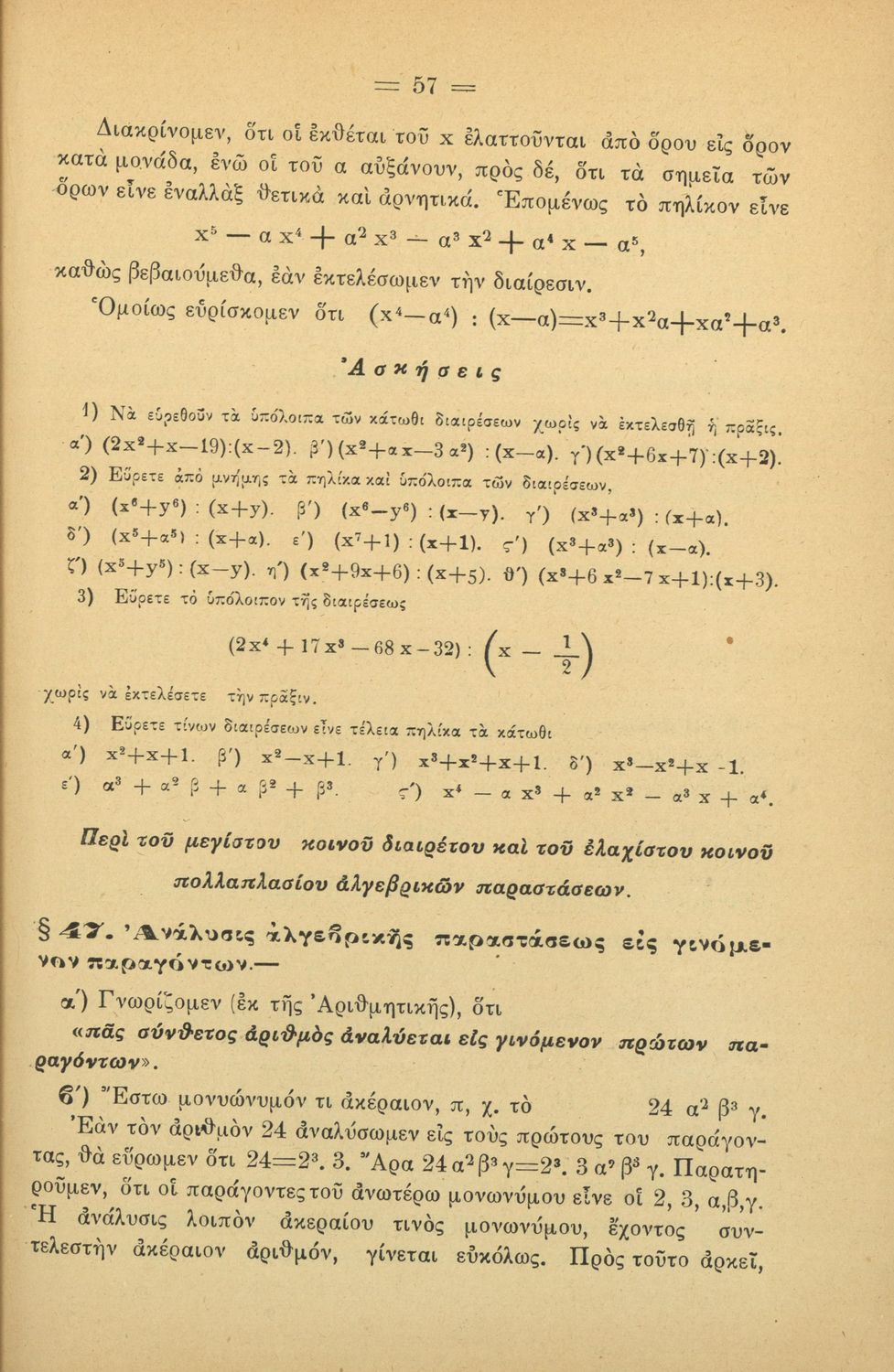 Σχολικό εγχειρίδιο Άλγεβρας για τα Γυμνάσια χωρισμένο σε θεωρία και ασκήσεις. Ο συγγραφέας ήταν καθηγητής στο Πανεπιστήμιο Αθηνών.