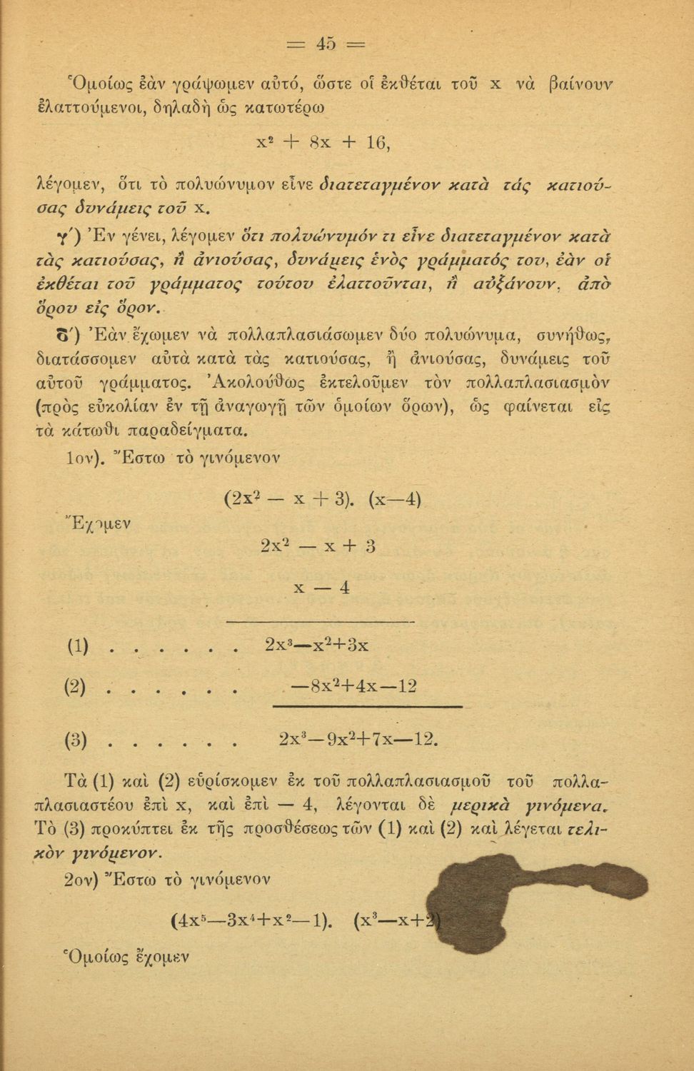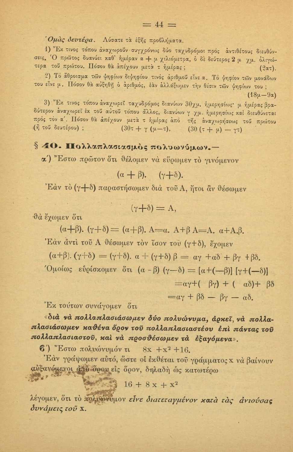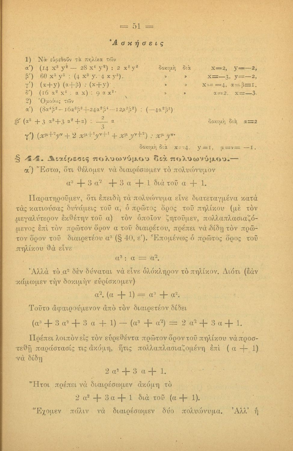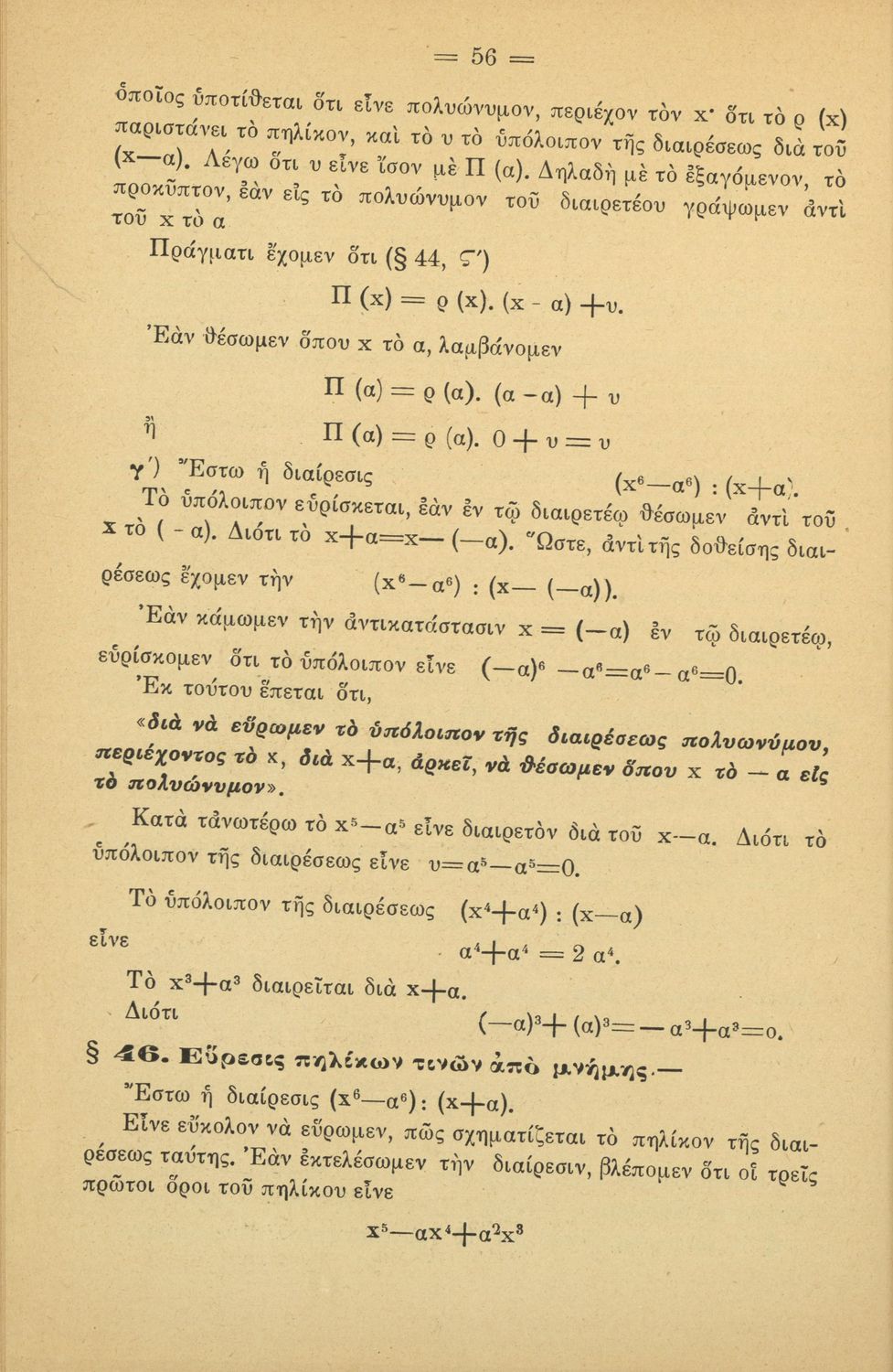 Σχολικό εγχειρίδιο Άλγεβρας για τα Γυμνάσια χωρισμένο σε θεωρία και ασκήσεις. Ο συγγραφέας ήταν καθηγητής στο Πανεπιστήμιο Αθηνών.