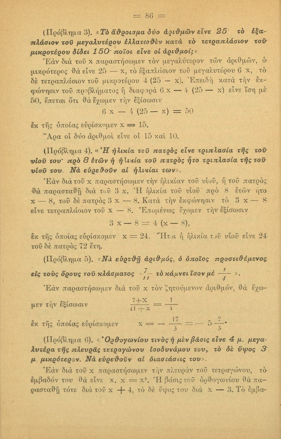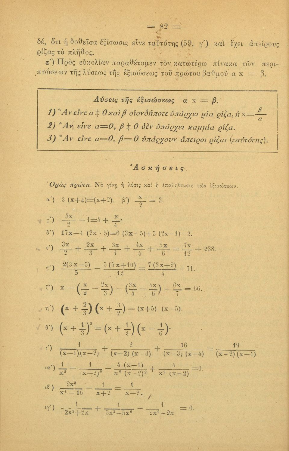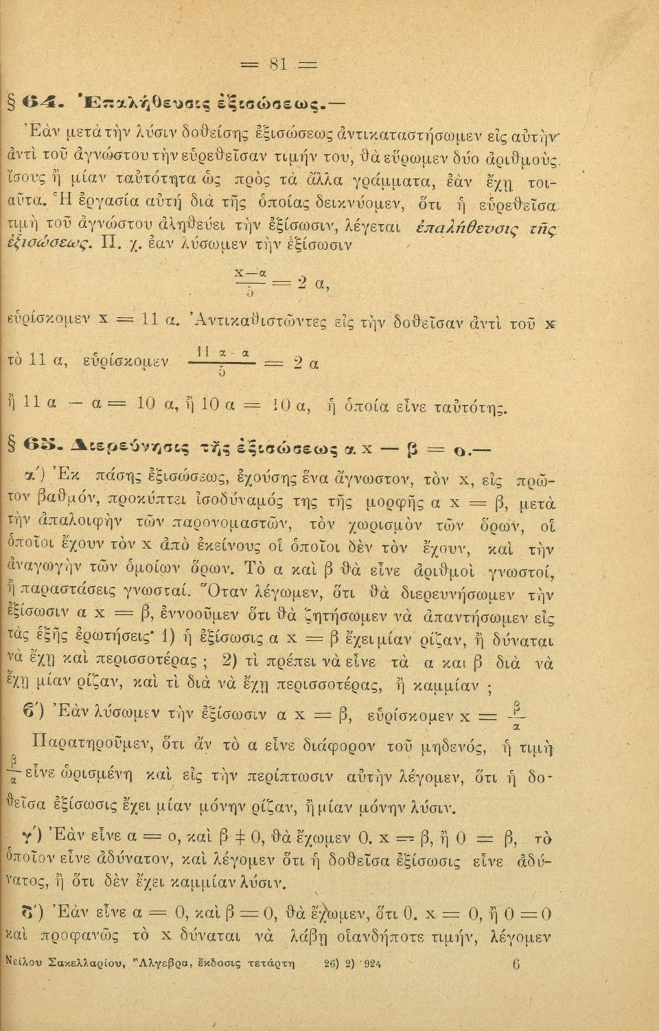 Σχολικό εγχειρίδιο Άλγεβρας για τα Γυμνάσια χωρισμένο σε θεωρία και ασκήσεις. Ο συγγραφέας ήταν καθηγητής στο Πανεπιστήμιο Αθηνών.