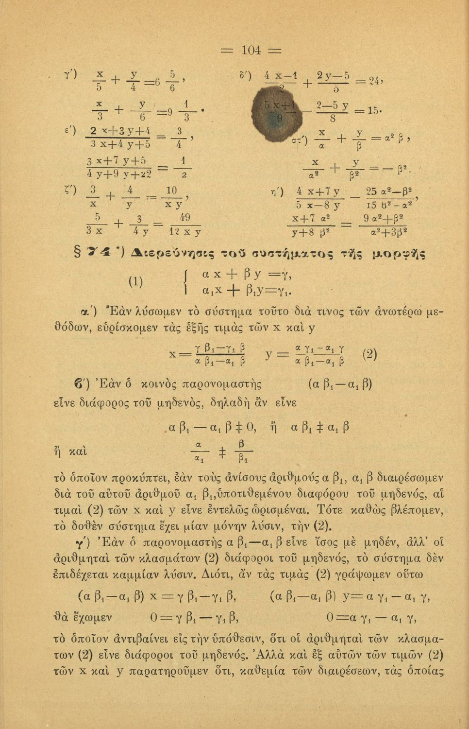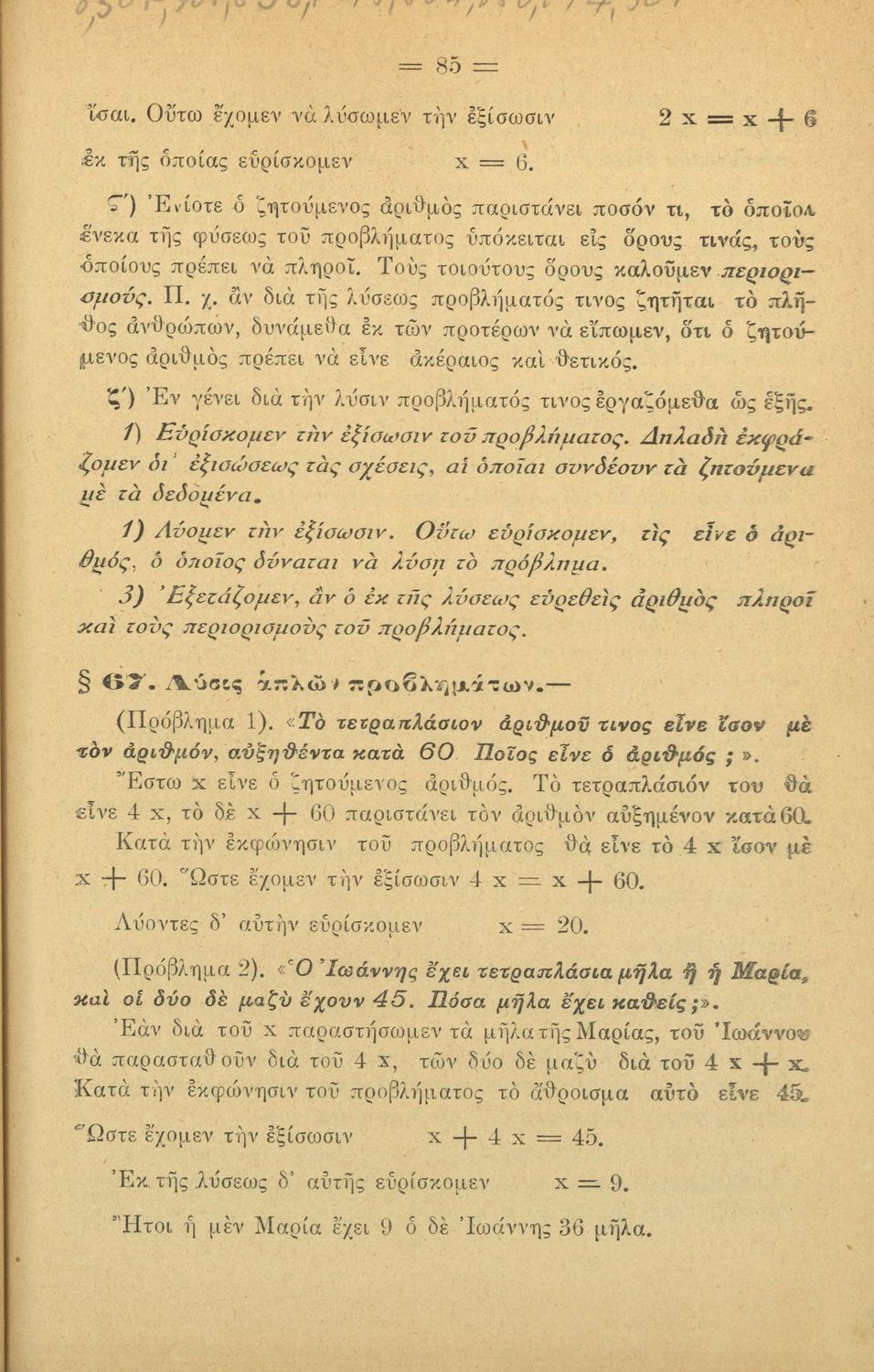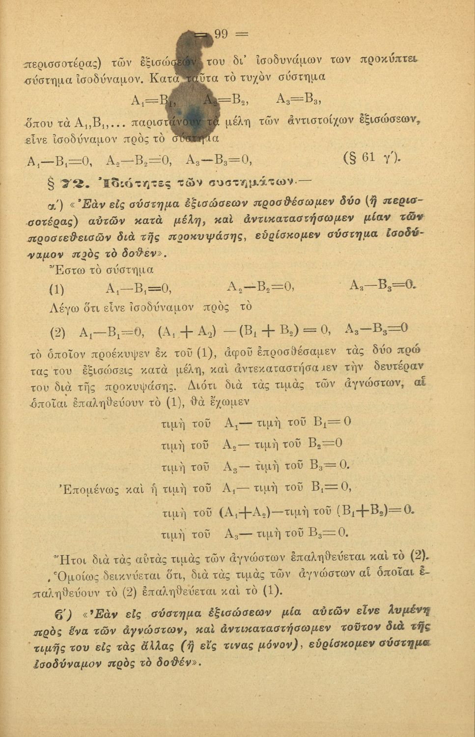 Σχολικό εγχειρίδιο Άλγεβρας για τα Γυμνάσια χωρισμένο σε θεωρία και ασκήσεις. Ο συγγραφέας ήταν καθηγητής στο Πανεπιστήμιο Αθηνών.