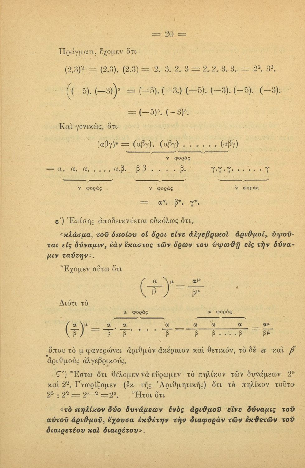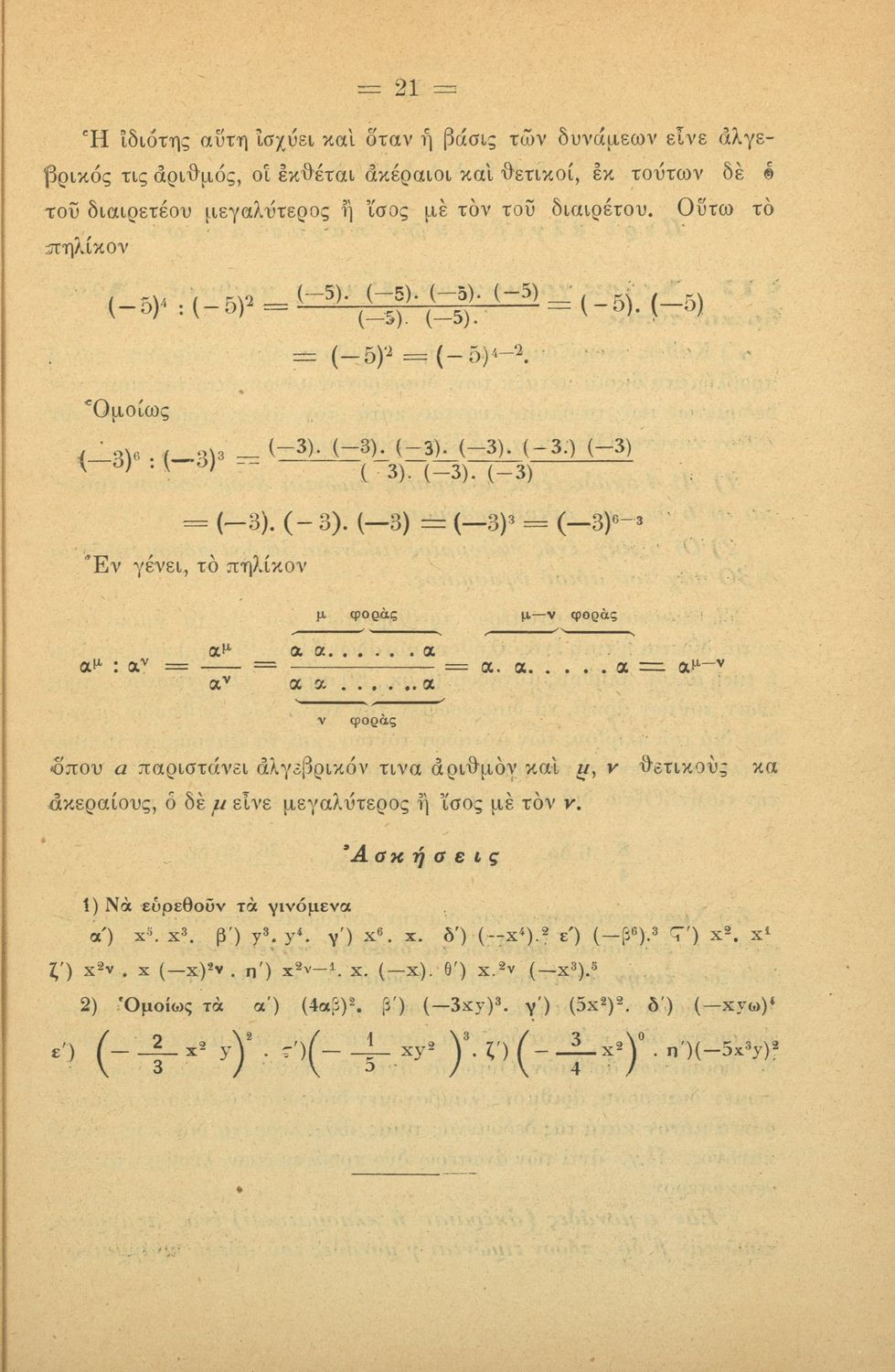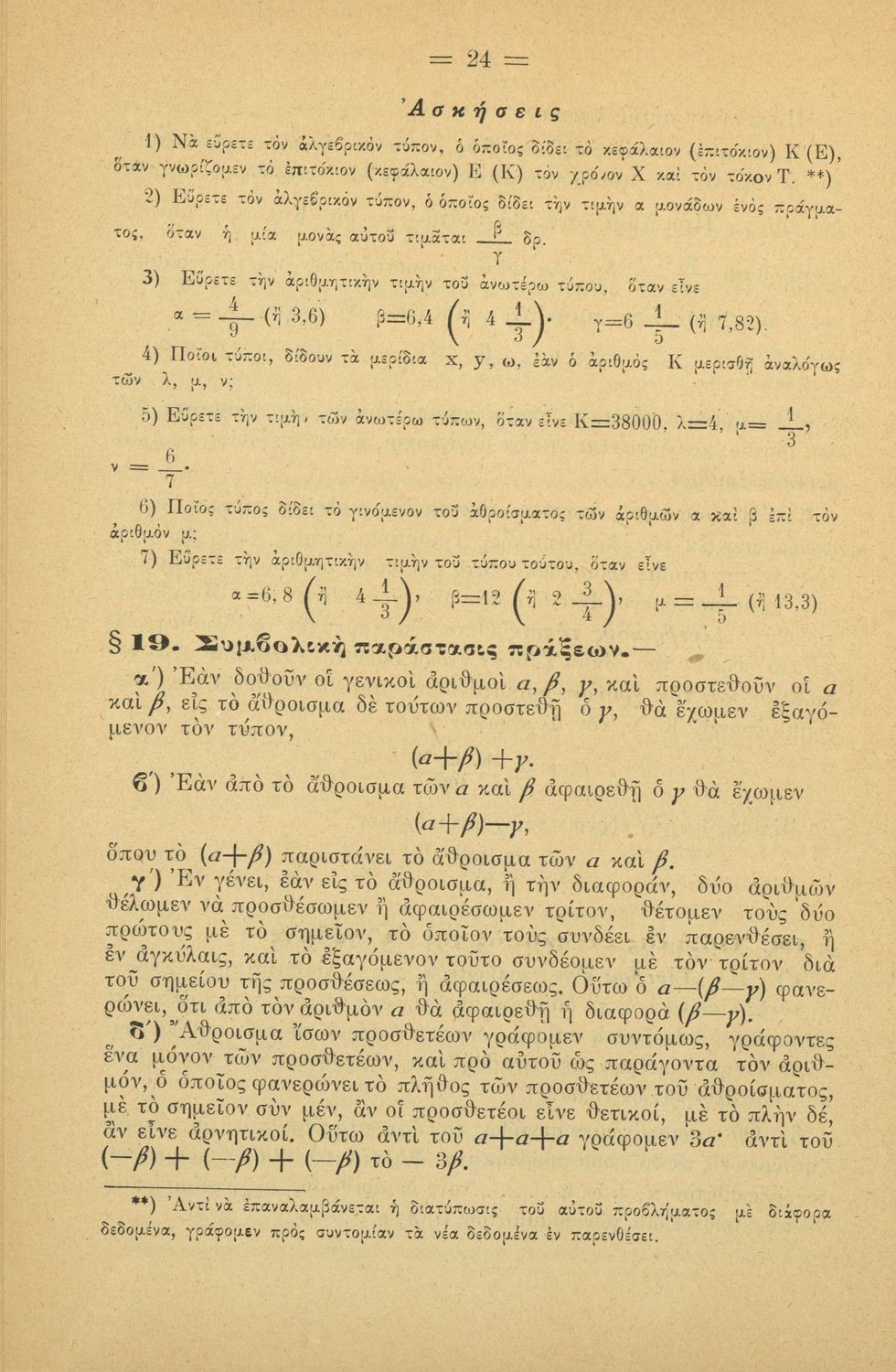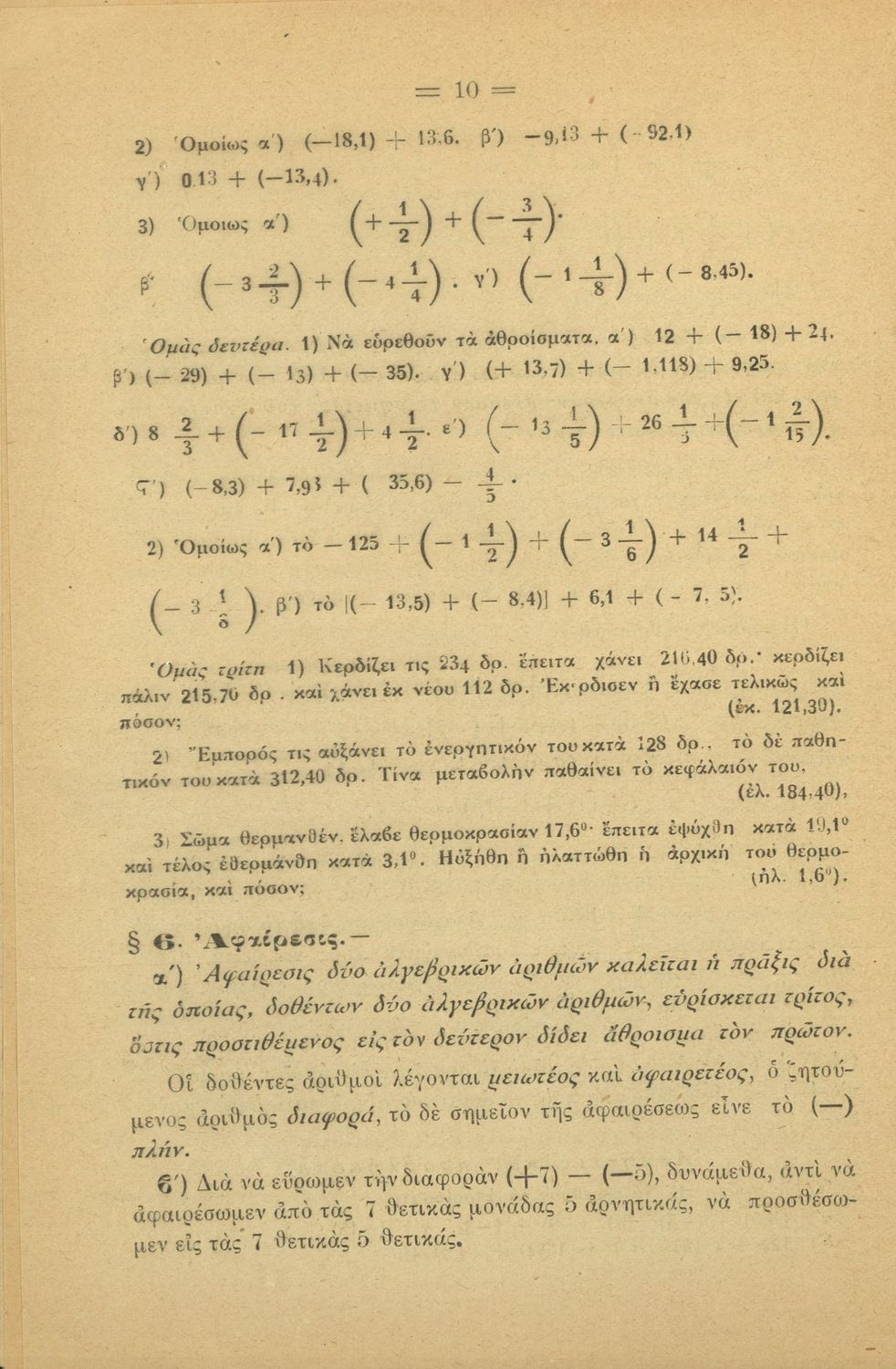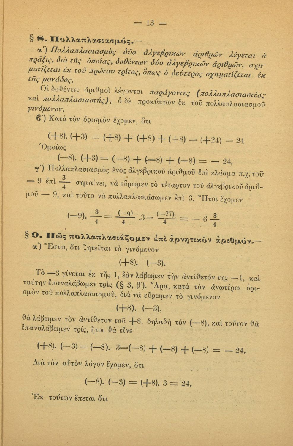 Βαθμίδα εκπαίδευσης: Δευτεροβάθμια Μάθημα: Άλγεβρα Γλώσσα: Καθαρεύουσα Παρουσίαση περιεχομένου: Σχολικό εγχειρίδιο Άλγεβρας που εστιάζει στις αριθμητικές πράξεις πράξεις, τις δυνάμεις, τις αλγεβρικές παραστάσεις, τις συναρτήσεις και πολυώνυμα, τις εξισώσεις πρώτου και δευτέρου βαθμού, τις προόδους και τις πιθανότητες. |