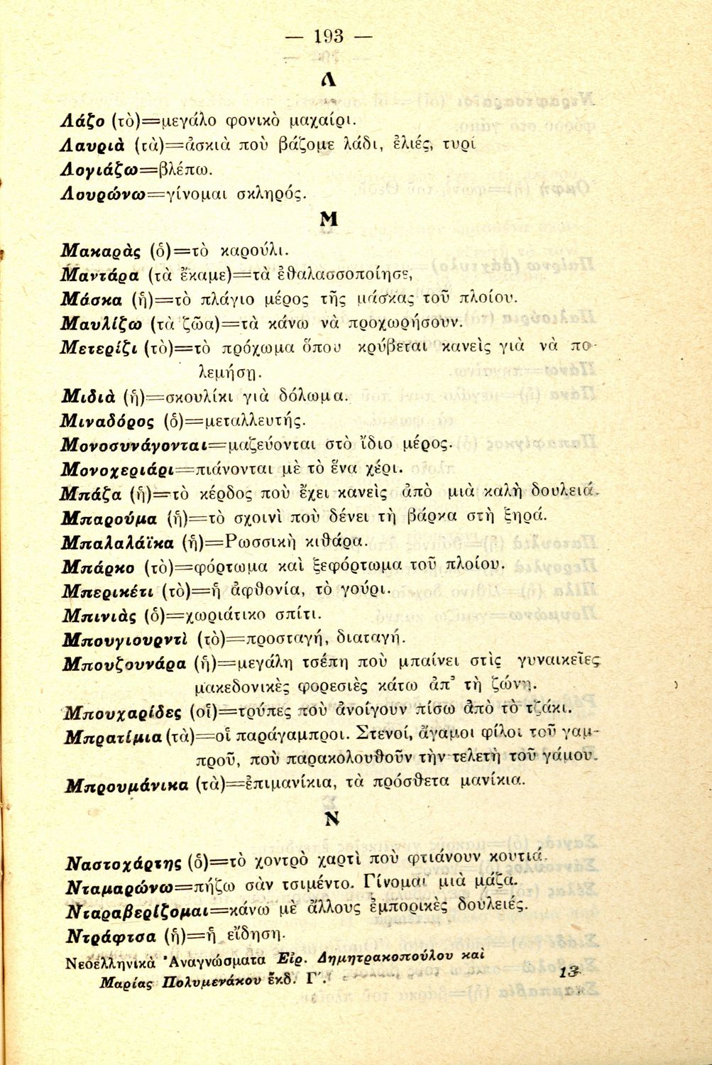 Εκδότης: Ιωάννης Ν. Σιδέρης Έτος έκδοσης: 1936 Τόπος έκδοσης: Αθήνα Έκδοση: 3η Υπουργική απόφαση / Σύμβαση: 41719/26-8-1933 Έτος έγκρισης: 1933 |