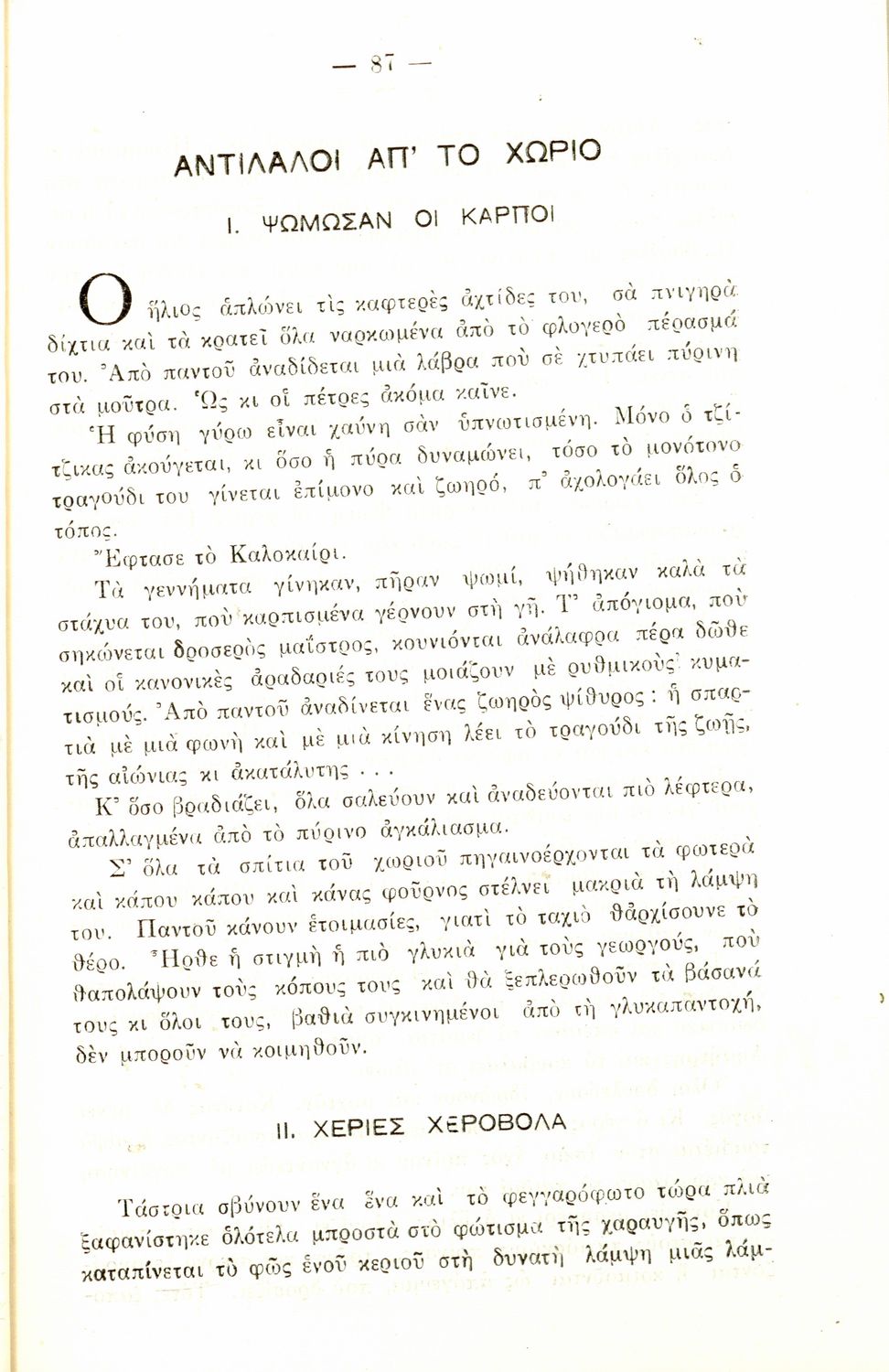 Σχολικό εγχειρίδιο Νέων Ελληνικών Α΄ Γυμνασίου που περιλαμβάνει πεζά και ποιήματα Ελλήνων συγγραφέων εμπνευσμένα από τη ζωή στην ελληνική ύπαιθρο και τα αστικά κέντρα, από την ελληνική μυθολογία, από την ...