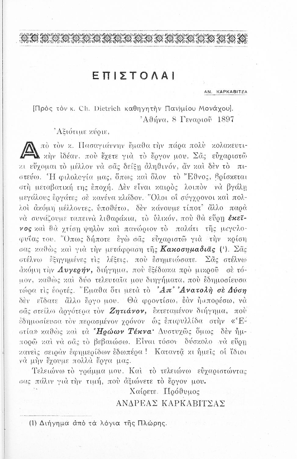 Γλώσσα: Καθαρεύουσα