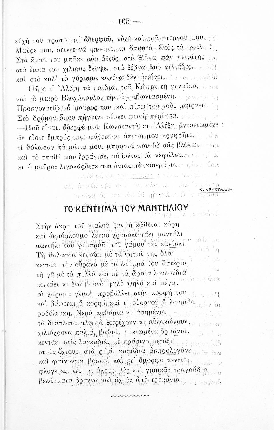 Σχετιζόμενοι όροι:  Κρυστάλλης, Παλαμάς, Σολωμός, Δροσίνης