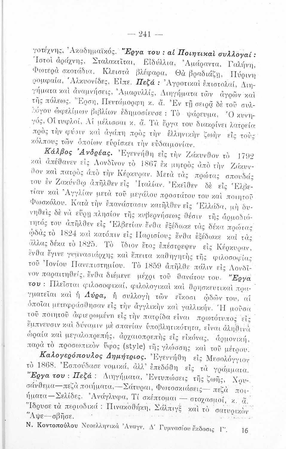 Σχετιζόμενοι όροι:  Λάμπρος, Σολωμός, Κάλβος, Κοραής, Παλαμάς