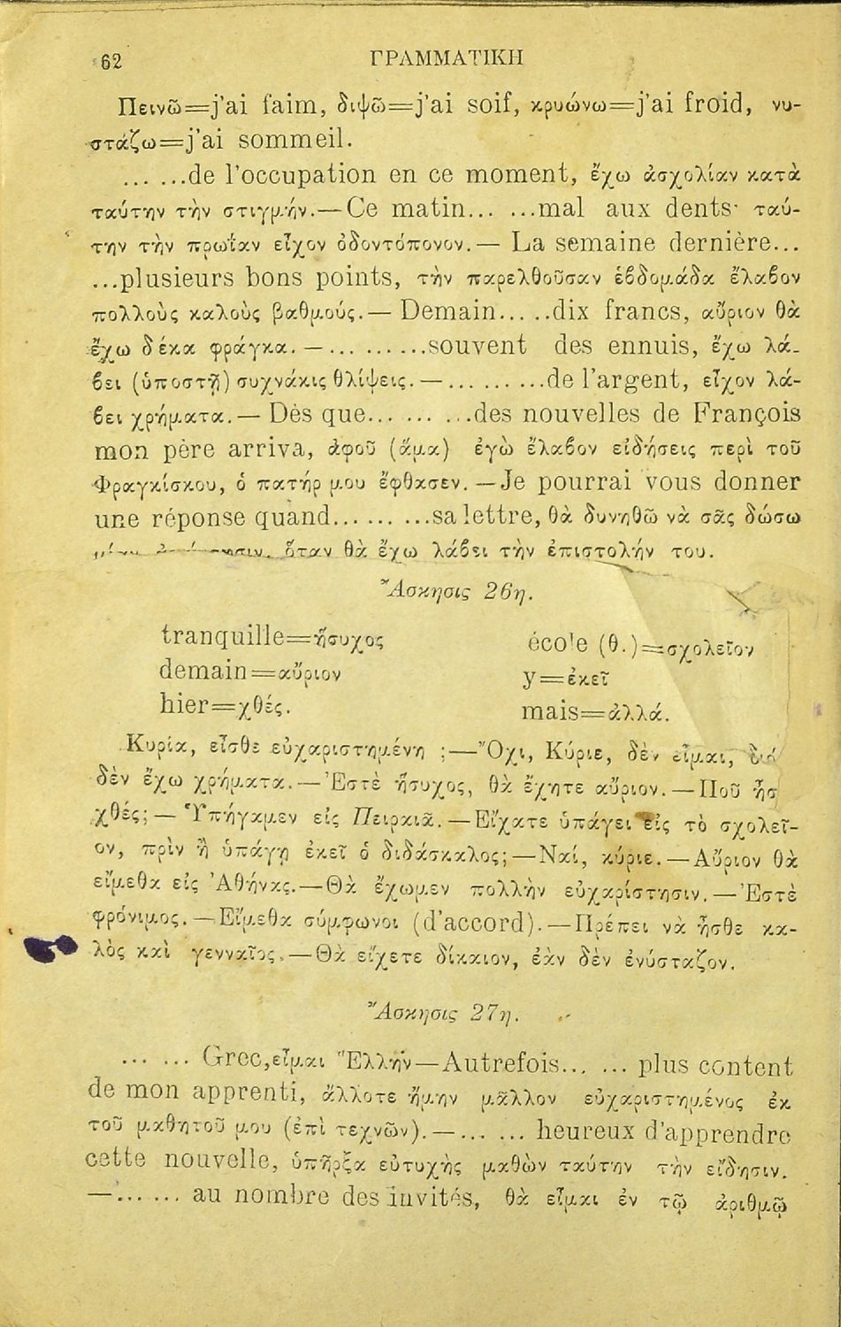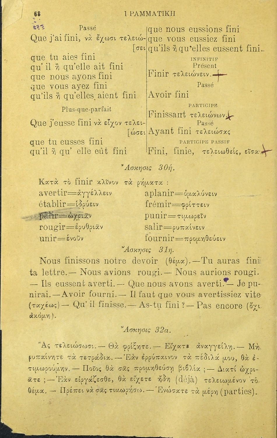 Τίτλος: Στοιχειώδης γραμματική της γαλλικής γλώσσης προς χρήσιν των Ελληνικών Σχολείων και Παρθεναγωγείων