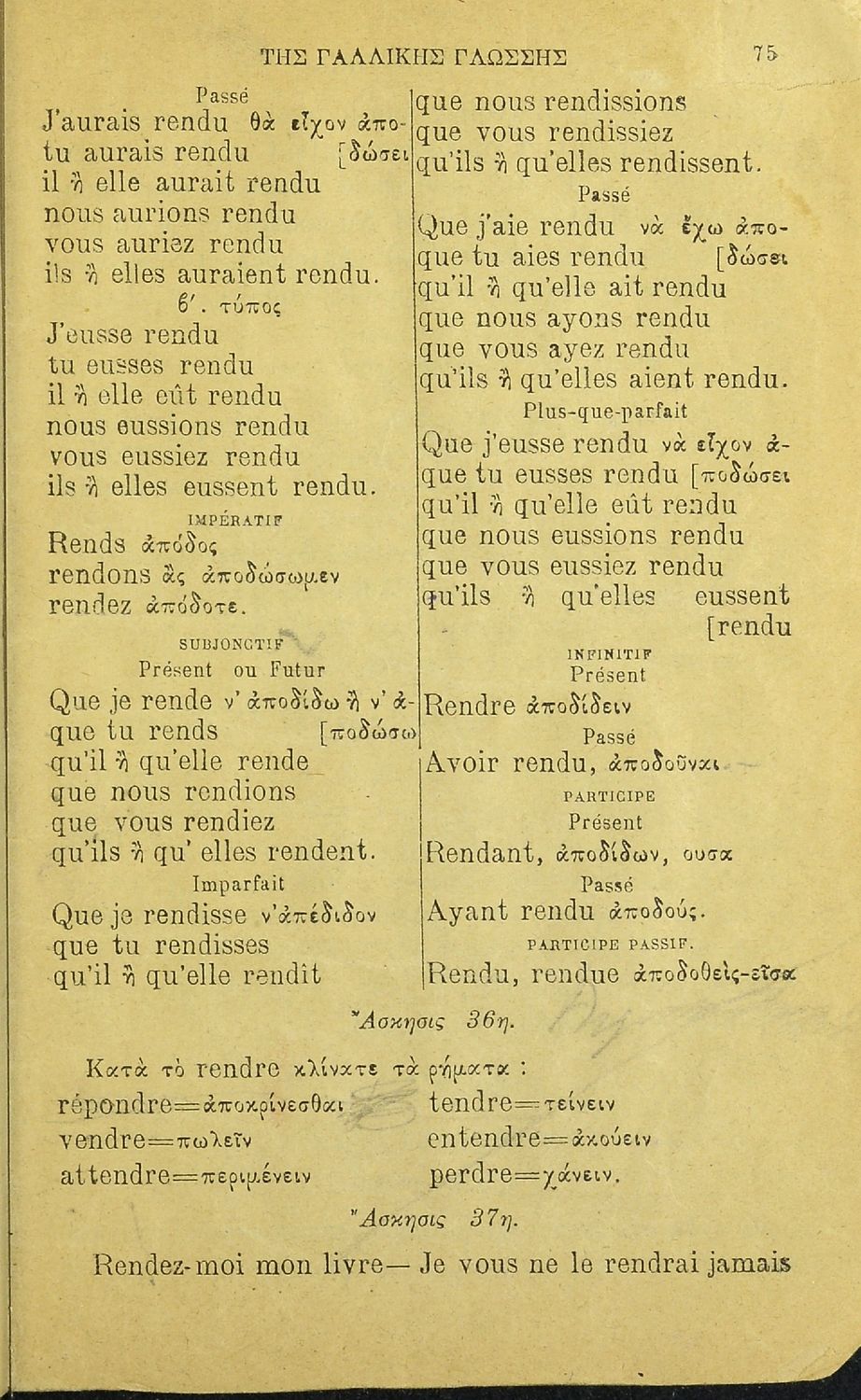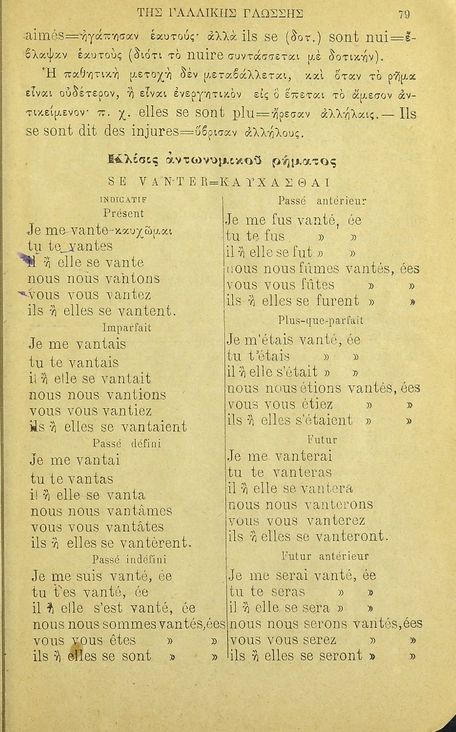 Μαθητικό βοήθημα Αρχαίων Ελληνικών για τα Ελληνικά Σχολεία, Παρθεναγωγεία και Γυμνάσια που περιλαμβάνει γραμματική της αρχαίας ελληνικής και κατάλογο ανωμάλων ρημάτων.