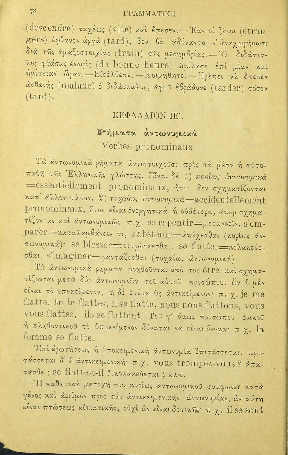 Σχολικό εγχειρίδιο Αρχαίων Ελληνικών για τα Ελληνικά Σχολεία, Παρθεναγωγεία και Γυμνάσια που περιέχει τους κανόνες γραμματικής και είναι χωρισμένο σε φθογγολογικό, τυπολογικό και ετυμολογικό μέρος.