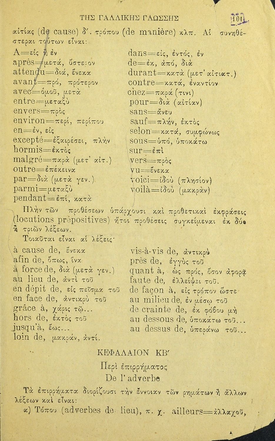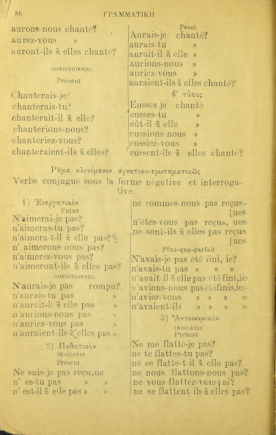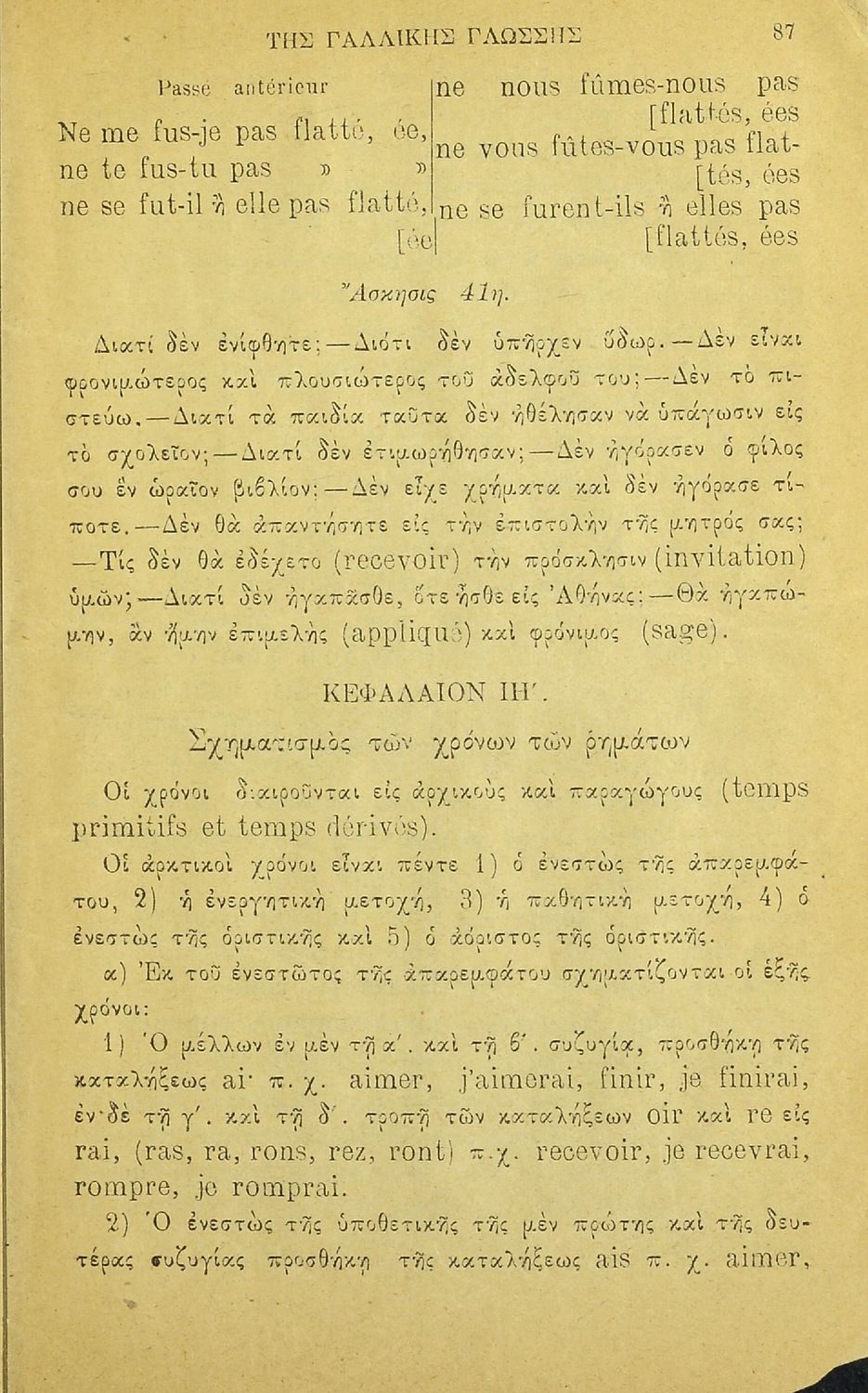 Σχολικό εγχειρίδιο για τα Ελληνικά Σχολεία και Παρθεναγωγεία περιλαμβάνει τους βασικούς κανόνες γραμματικής της γαλλικής γλώσσας.