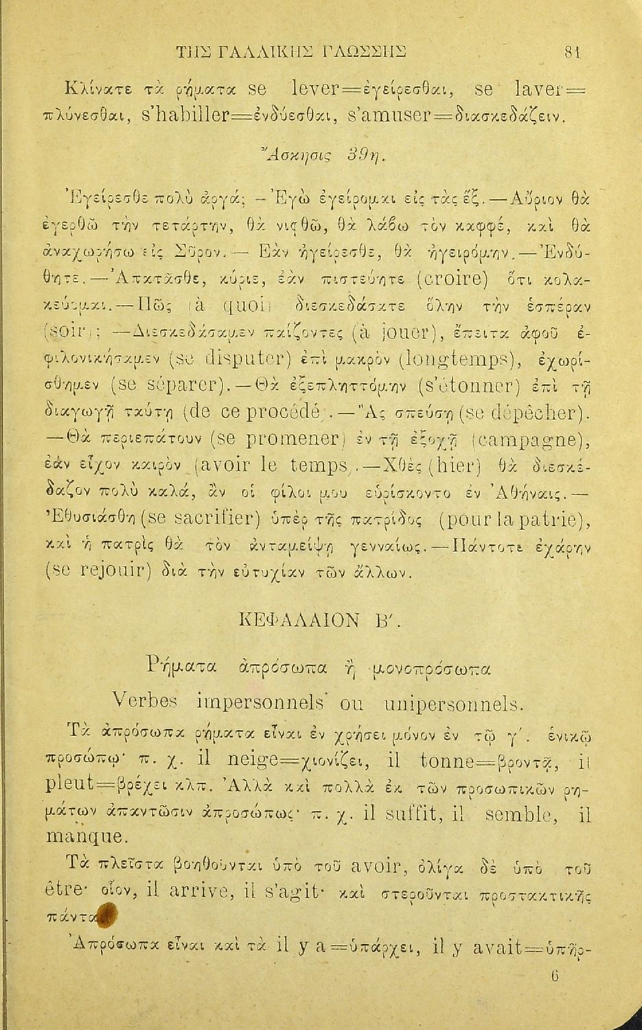 Σχολικό εγχειρίδιο για τις τάξεις των Γυμνασίων, Αστικών σχολείων, Παρθεναγωγείων, Διδασκαλεία και Εμπορικές σχολές. Το βιβλίο περιλαμβάνει ασκήσεις γραμματικής, συντακτικού και λεξιλογίου για πρακτική ...