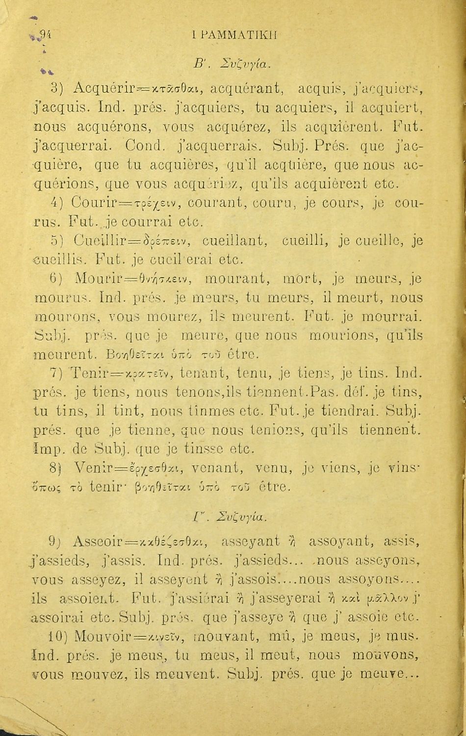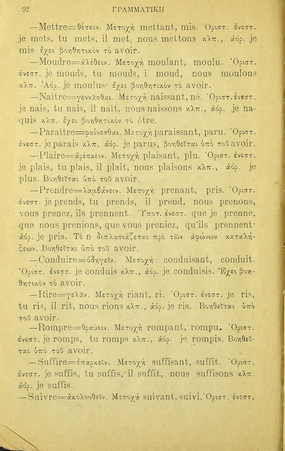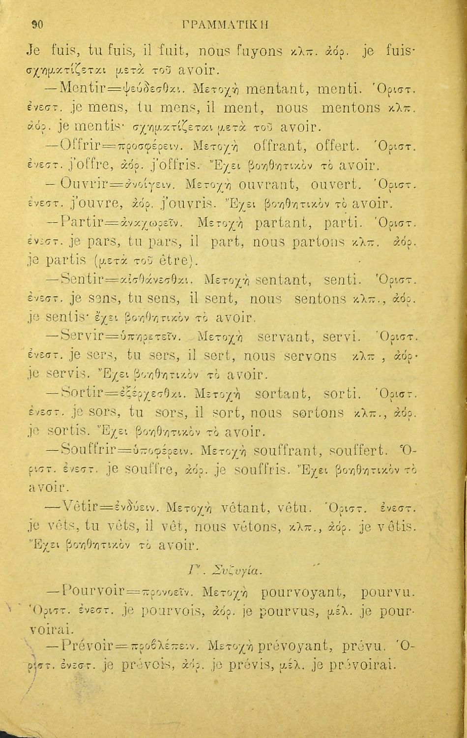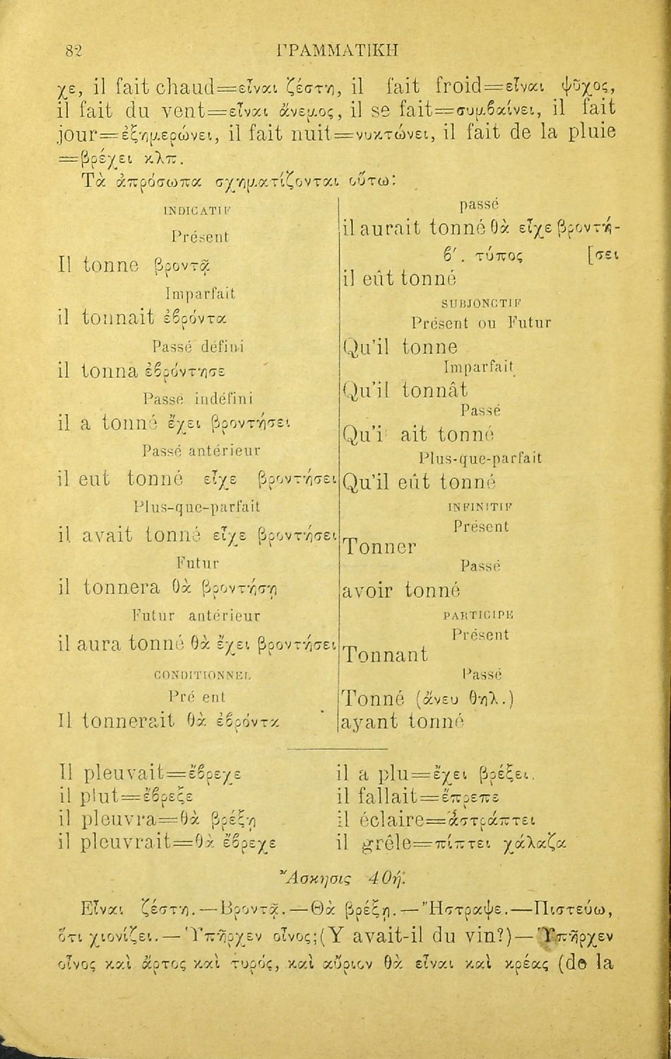 Μαθητικό βοήθημα Αρχαίων Ελληνικών για τα Ελληνικά Σχολεία, Παρθεναγωγεία και Γυμνάσια που περιλαμβάνει γραμματική της αρχαίας ελληνικής και κατάλογο ανωμάλων ρημάτων.