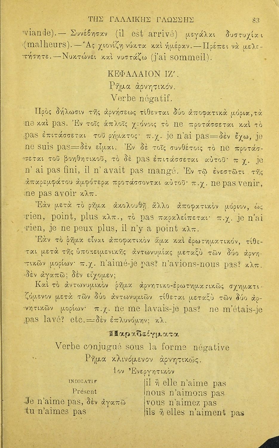 Σχολικό εγχειρίδιο Γαλλικών για τοΕλληνικό Σχολείο, το Αστικό Σχολείο, το Παρθεναγωγείο, το Διδασκαλείο και τις Εμπορικές Σχολές που αποτελείται από κείμενα, γραμματική και συντακτικό της γαλλικής γλώσσας και ...