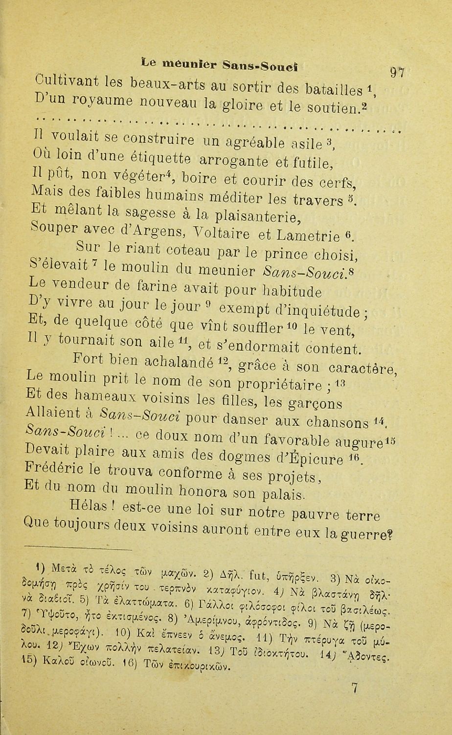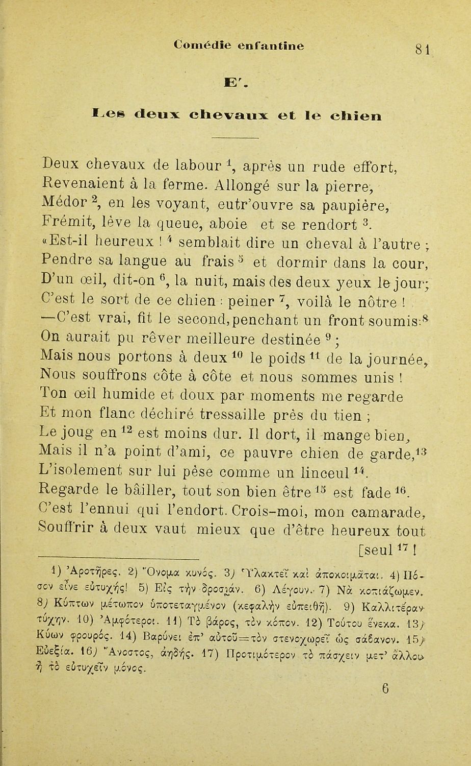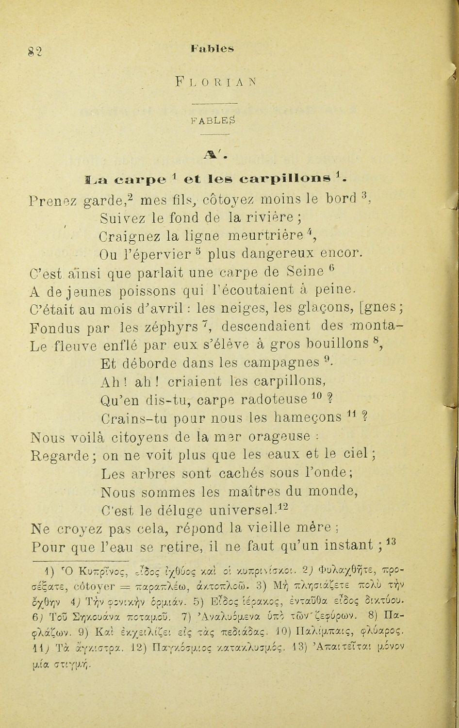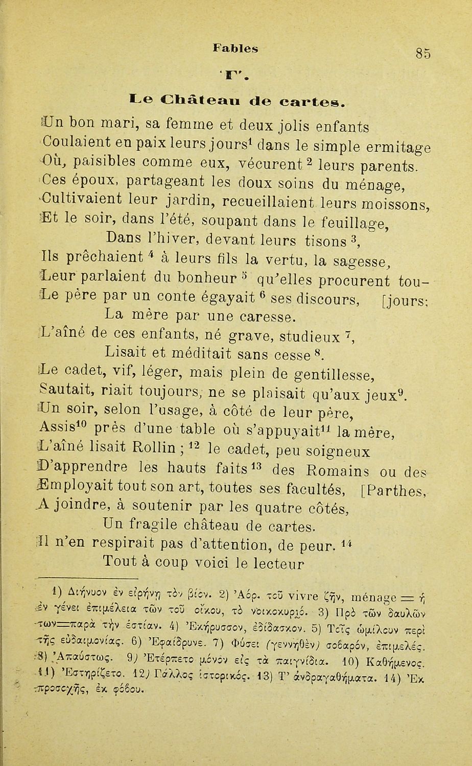 Βαθμίδα εκπαίδευσης: Δευτεροβάθμια Τάξη: Α' Γυμνασίου Μάθημα: Γαλλικά Γλώσσα: Καθαρεύουσα Παρουσίαση περιεχομένου: Σχολικό εγχειρίδιο Γαλλικών Α' Γυμνασίου που περιλαμβάνεται έργα επιφανών Γάλλων συγγραφέων, και ερμηνευτικά και λεξιλογικά σχόλια. |