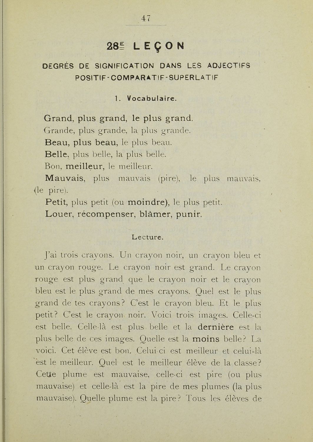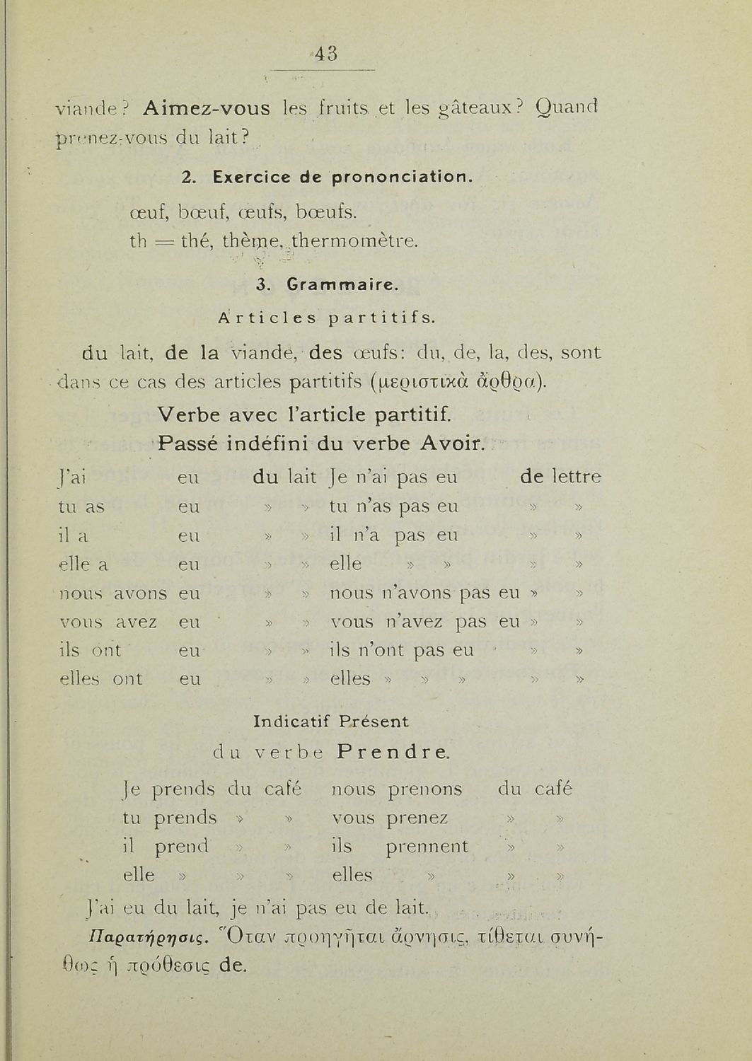 Σχολικό εγχειρίδιο Γαλλικών Β΄ και Γ' Ελληνικού Σχολείου, Αστικού Σχολείου και Παρθεναγωγείου που περιλαμβάνει κείμενα, κανόνες γραμματικής και συντακτικού, ερωτήσεις και ασκήσεις κατανόησης, και λεξιλογικά ...