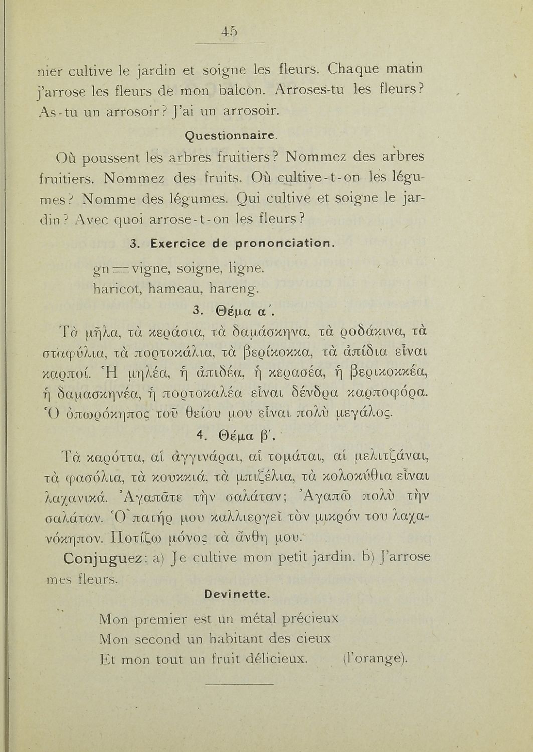 Στοιχειώδες βιβλίον μεθοδικής διδασκαλίας της γαλλικής γλώσσης διά την Β΄, Γ΄ Τάξεις των Ελληνικών Σχολείων και των αντιστοίχων τάξεων Αστικών Σχολείων και Παρθεναγωγείων