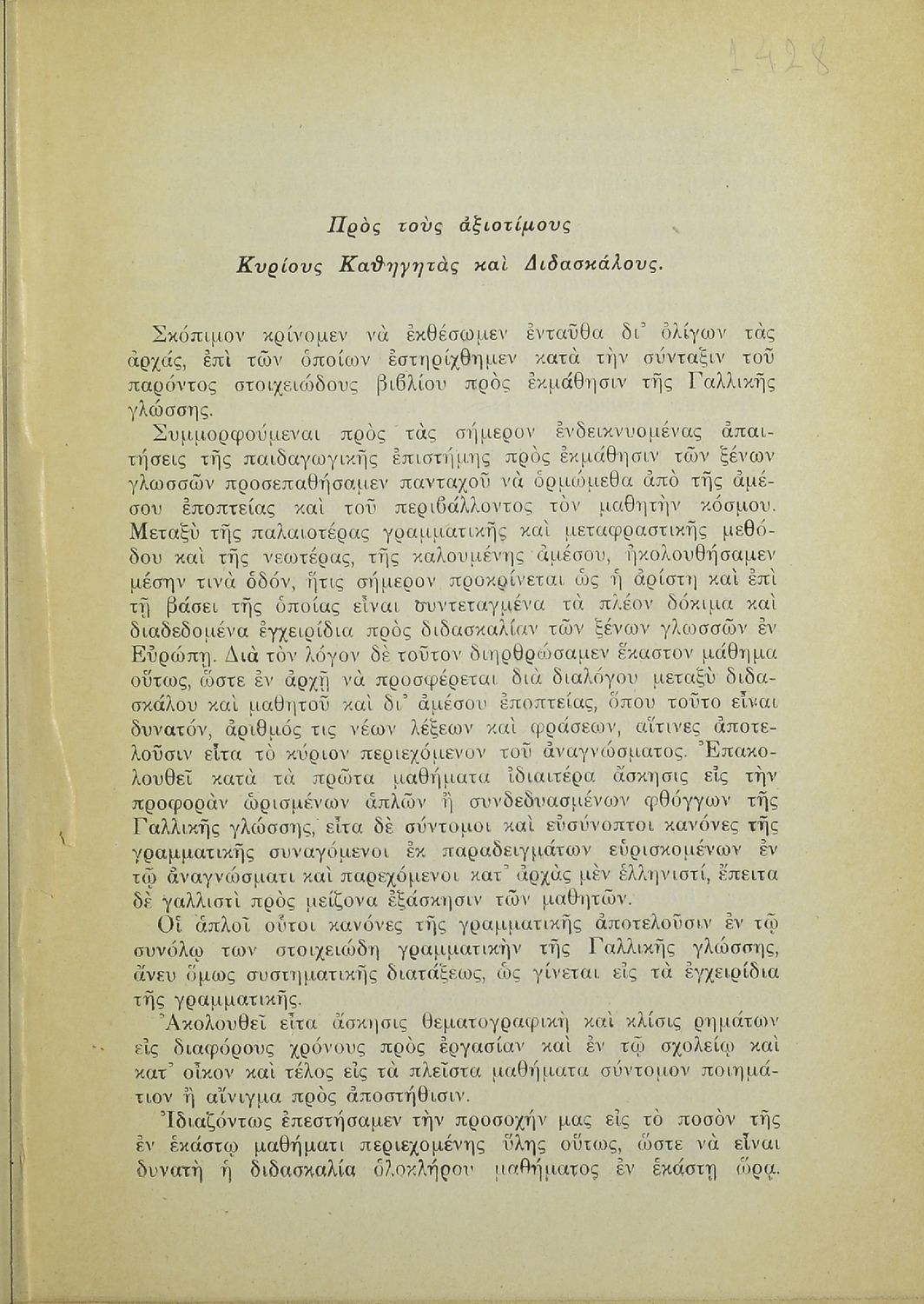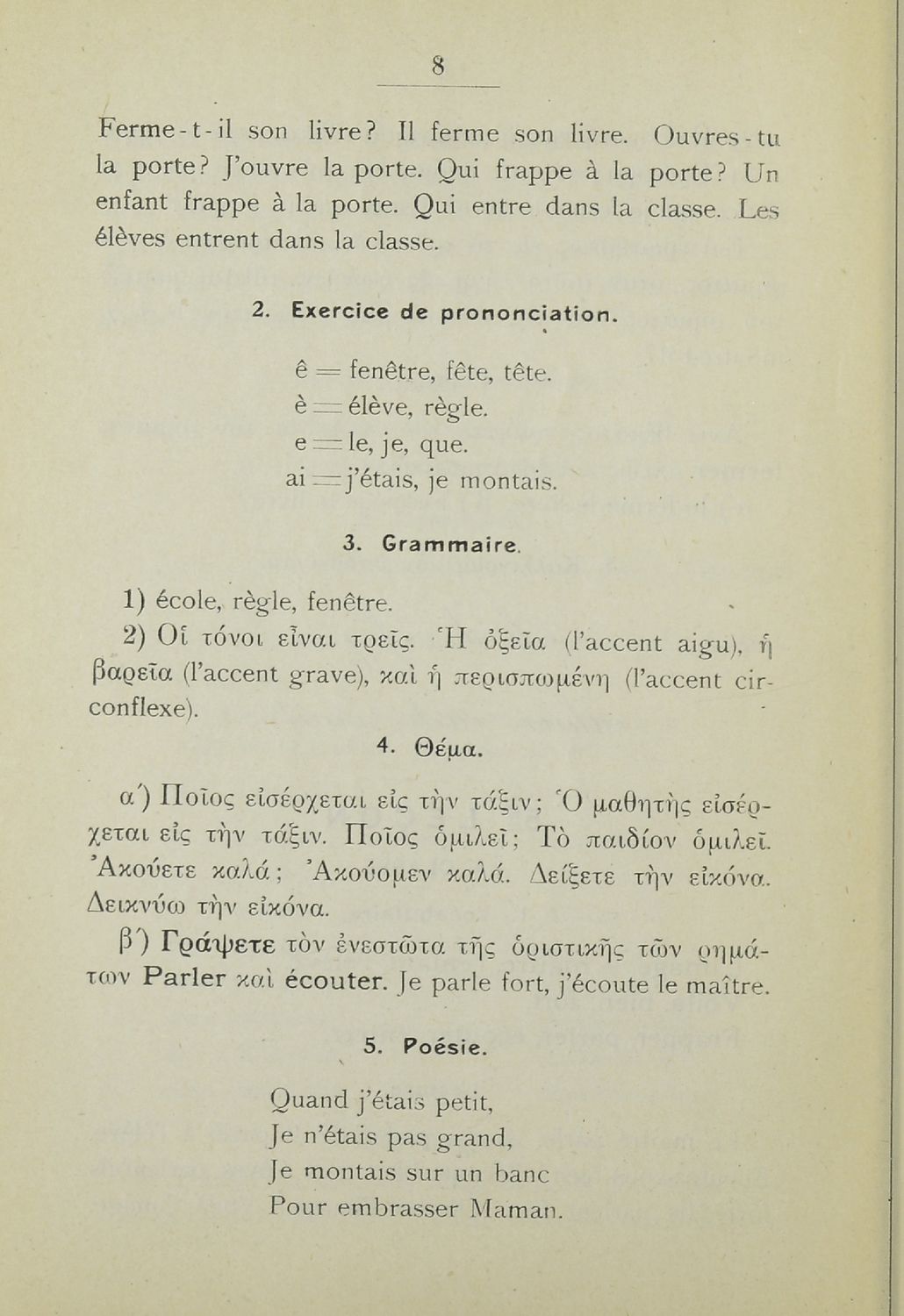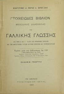Στοιχειώδες βιβλίον μεθοδικής διδασκαλίας της γαλλικής γλώσσης διά την Β΄, Γ΄ Τάξεις των Ελληνικών Σχολείων και των αντιστοίχων τάξεων Αστικών Σχολείων και Παρθεναγωγείων