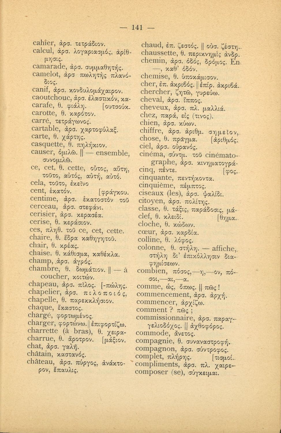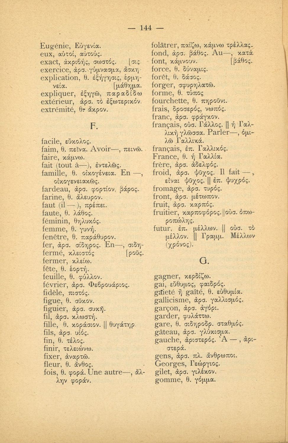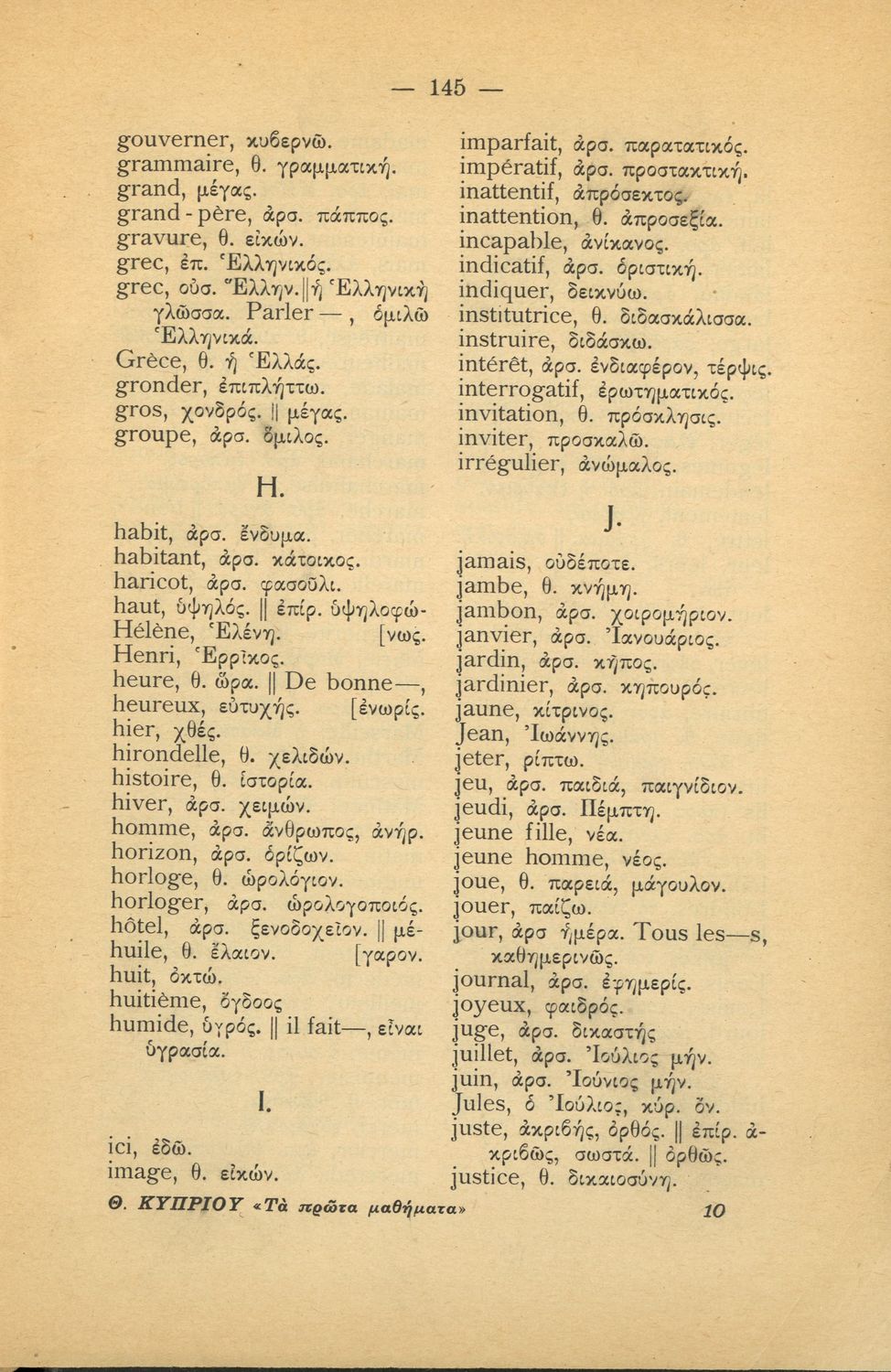Γραμματική της Γαλλικής γλώσσας για τα Τετρατάξια Γυμνάσια, τη Γ΄ τάξη των Αστικών Σχολείων των Θηλέων και τα Διδασκαλεία της Δημοτικής Εκπαίδευσης που περιλαμβάνει θεωρία, ασκήσεις και λεξιλόγιο.