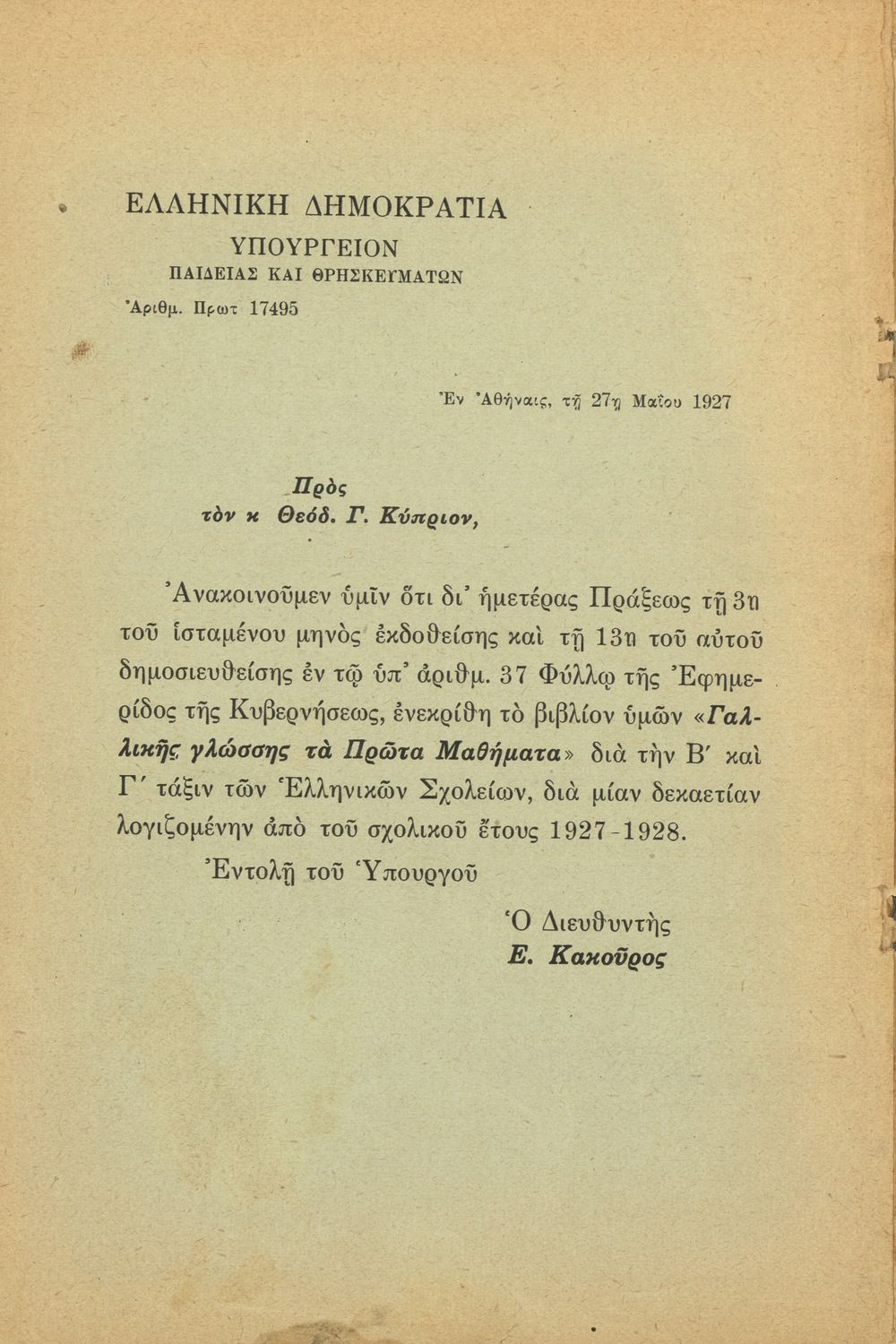 Υπουργική απόφαση / Σύμβαση: 17495/13-5-1927