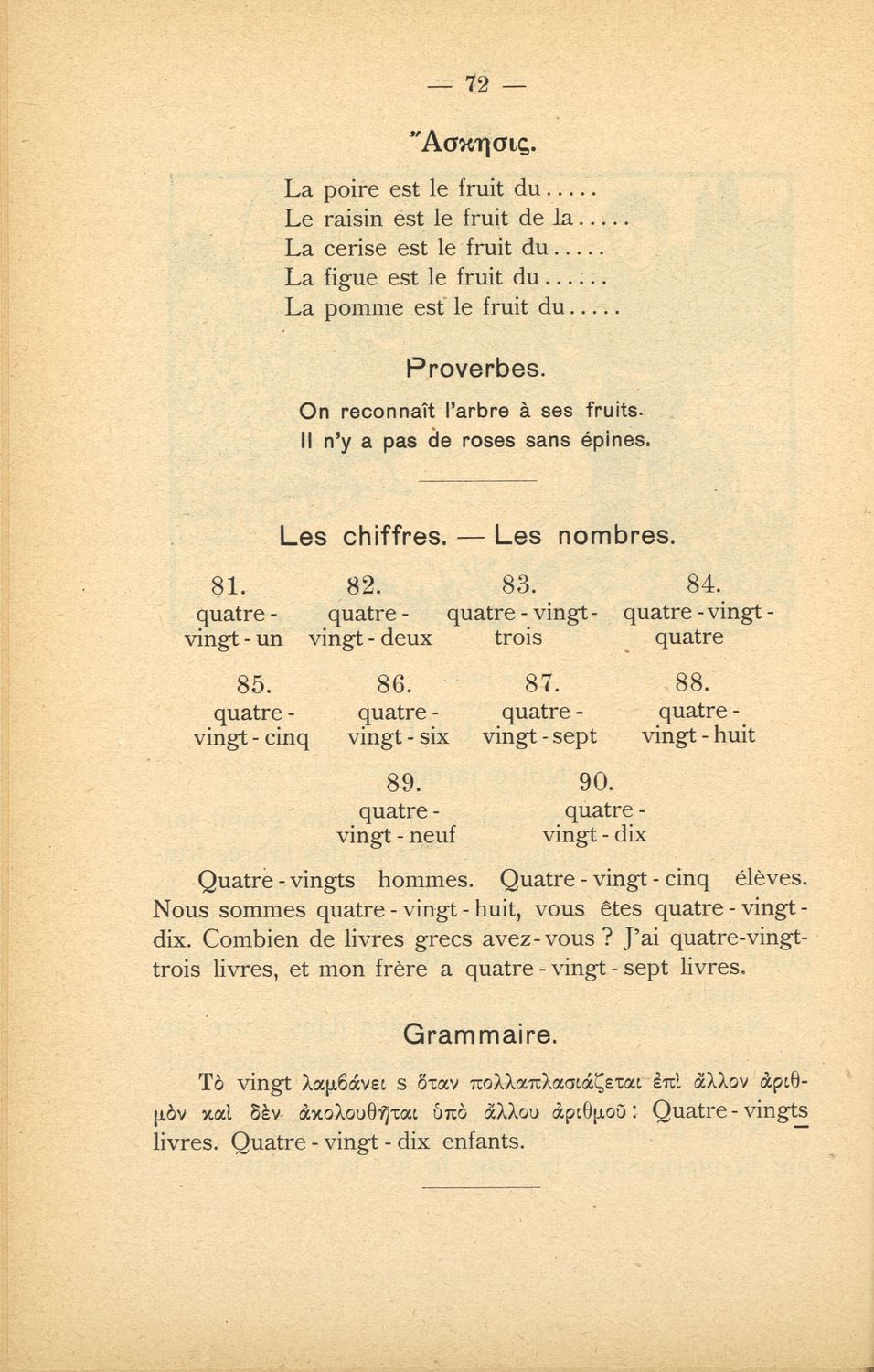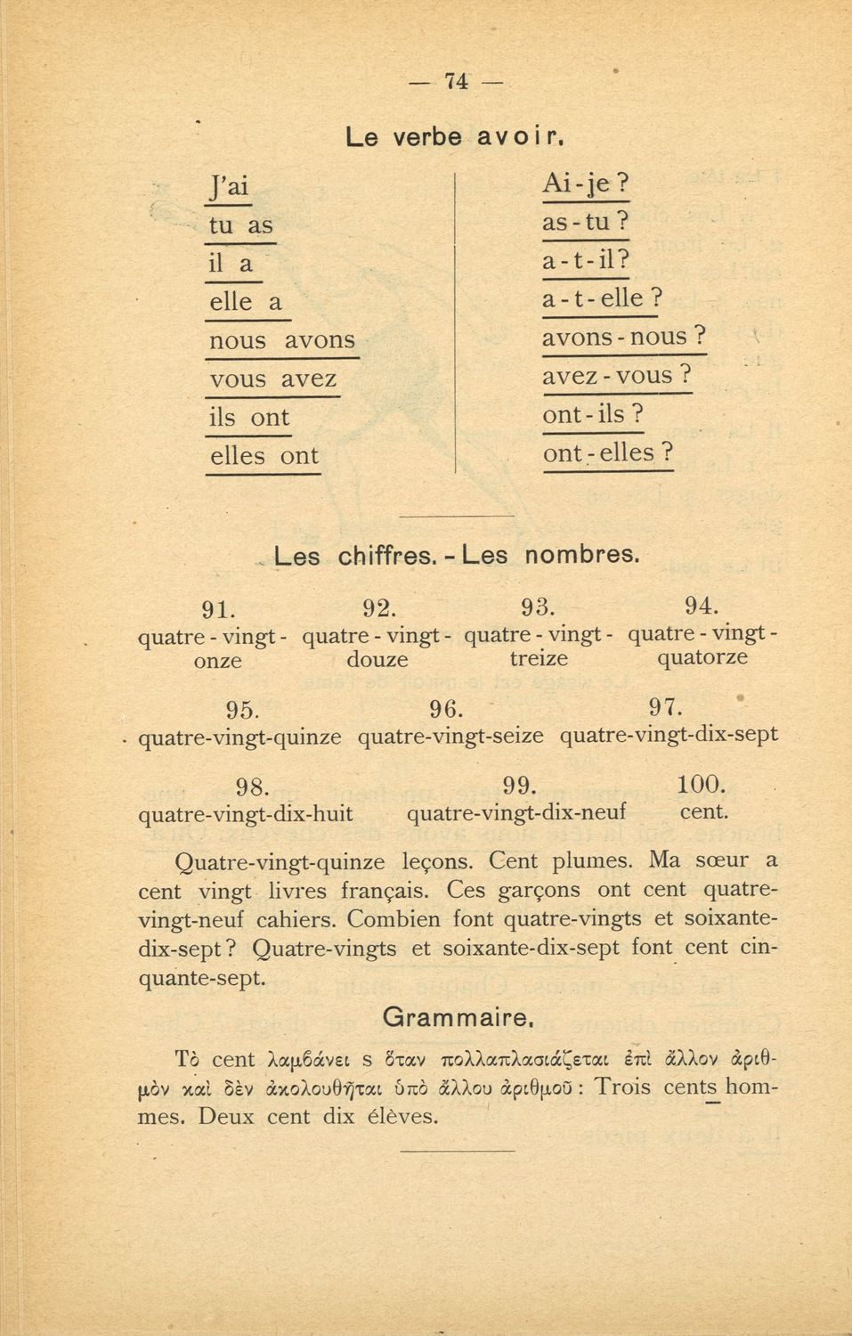 Γραμματική της Γαλλικής γλώσσας για τα Τετρατάξια Γυμνάσια, τη Γ΄ τάξη των Αστικών Σχολείων των Θηλέων και τα Διδασκαλεία της Δημοτικής Εκπαίδευσης που περιλαμβάνει θεωρία, ασκήσεις και λεξιλόγιο.