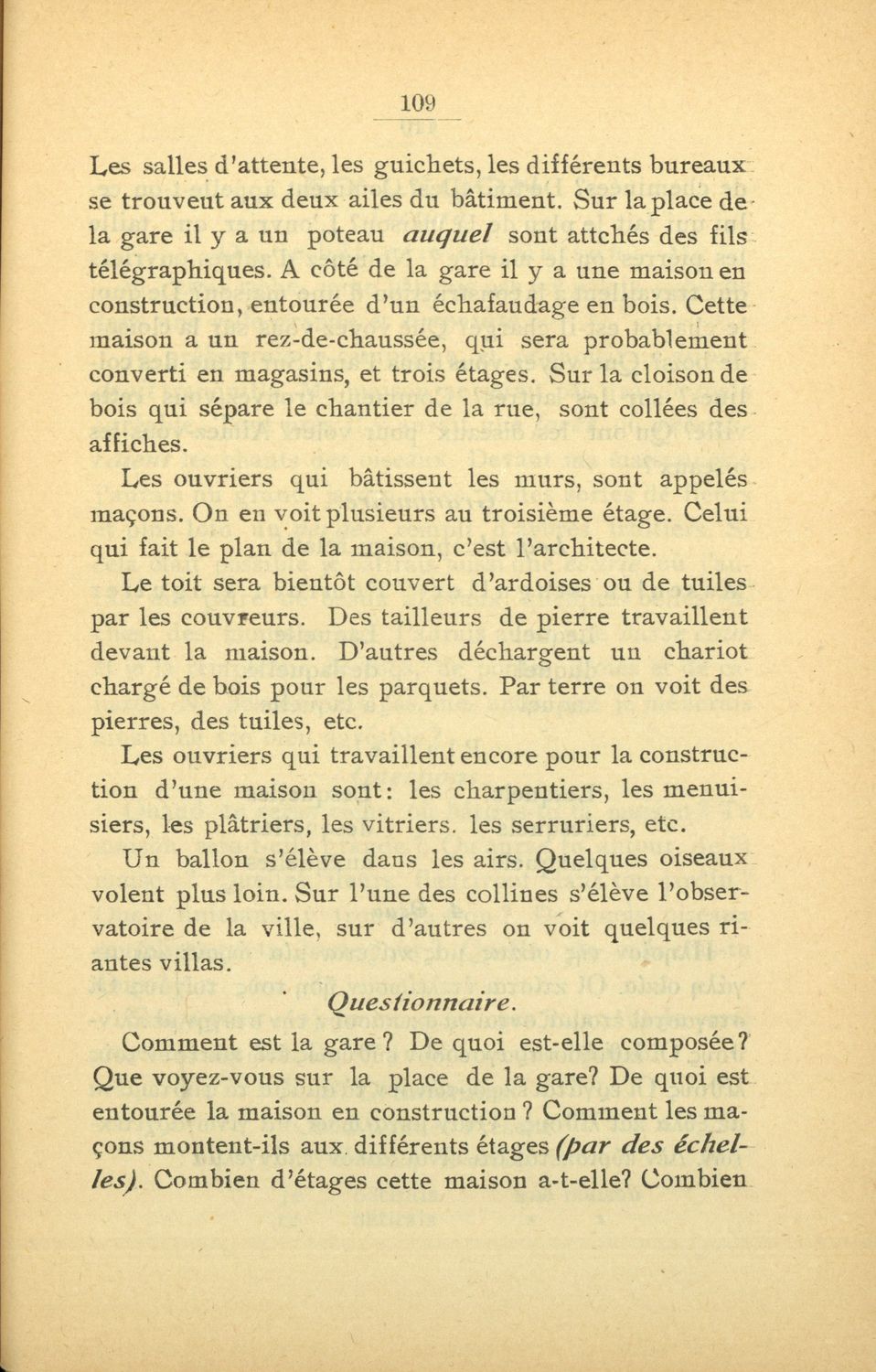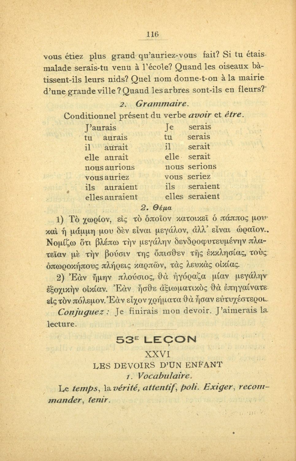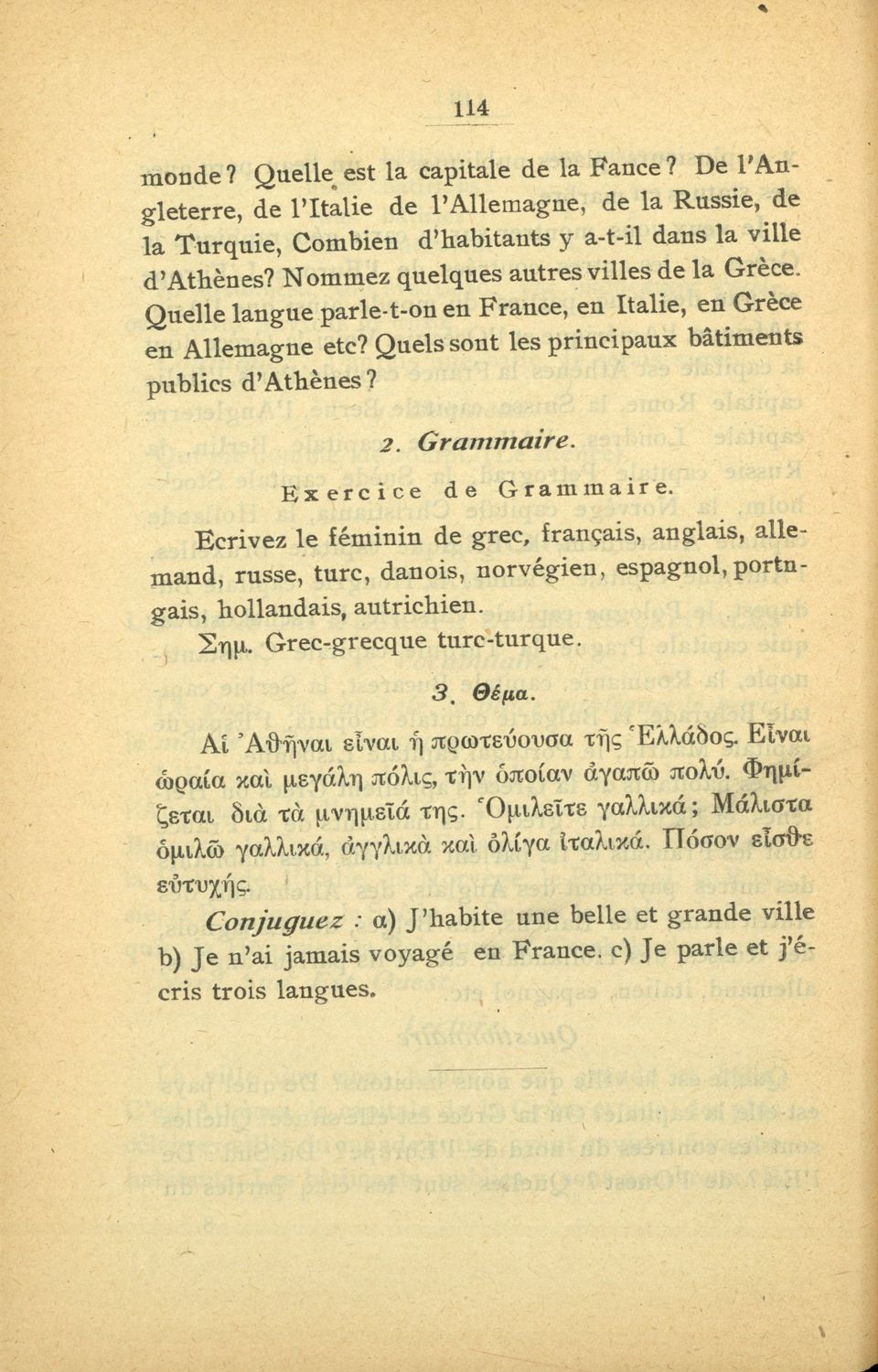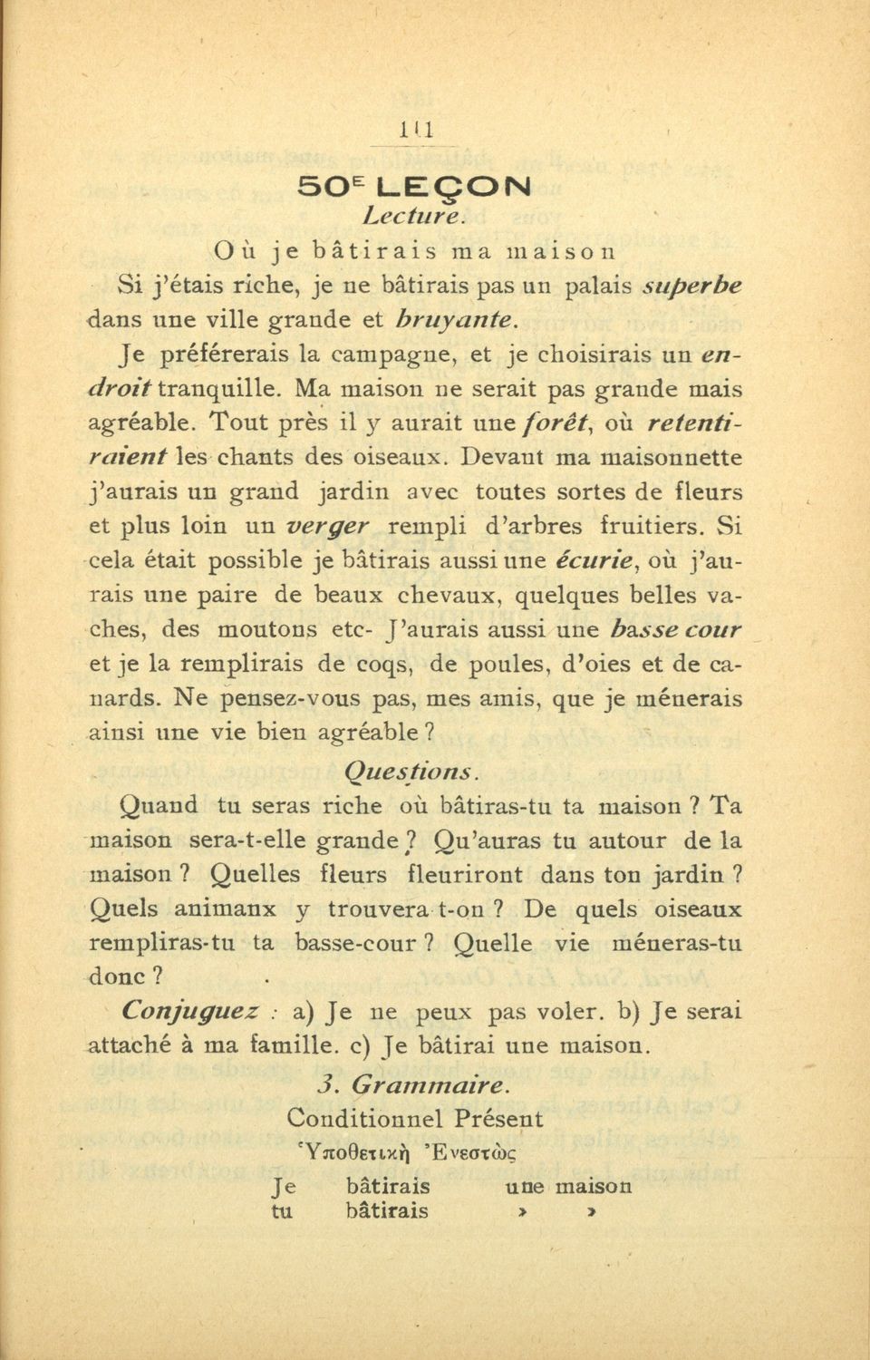 Σχολικό εγχειρίδιο Γαλλικών Β΄ και Γ' Ελληνικού Σχολείου, Αστικού Σχολείου και Παρθεναγωγείου που περιλαμβάνει κείμενα, κανόνες γραμματικής και συντακτικού, ερωτήσεις και ασκήσεις κατανόησης, και λεξιλογικά ...