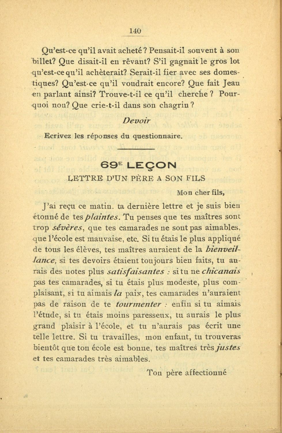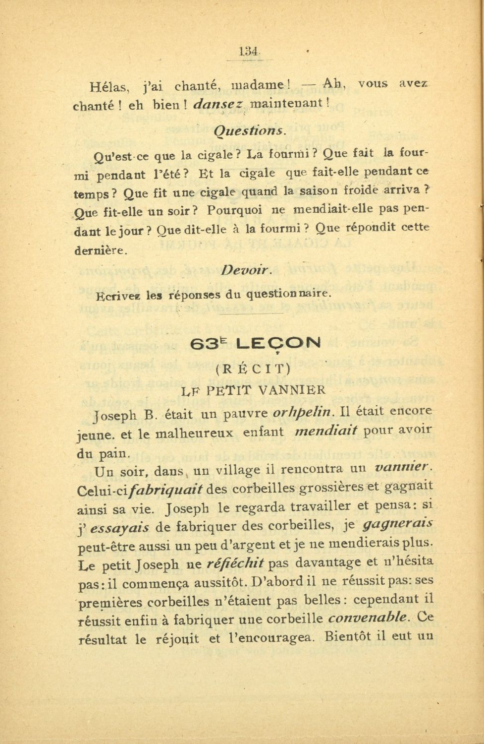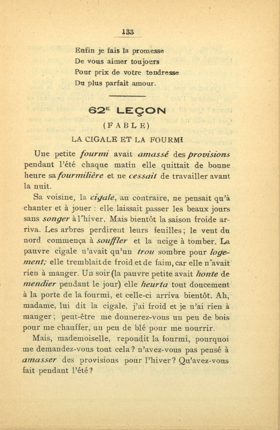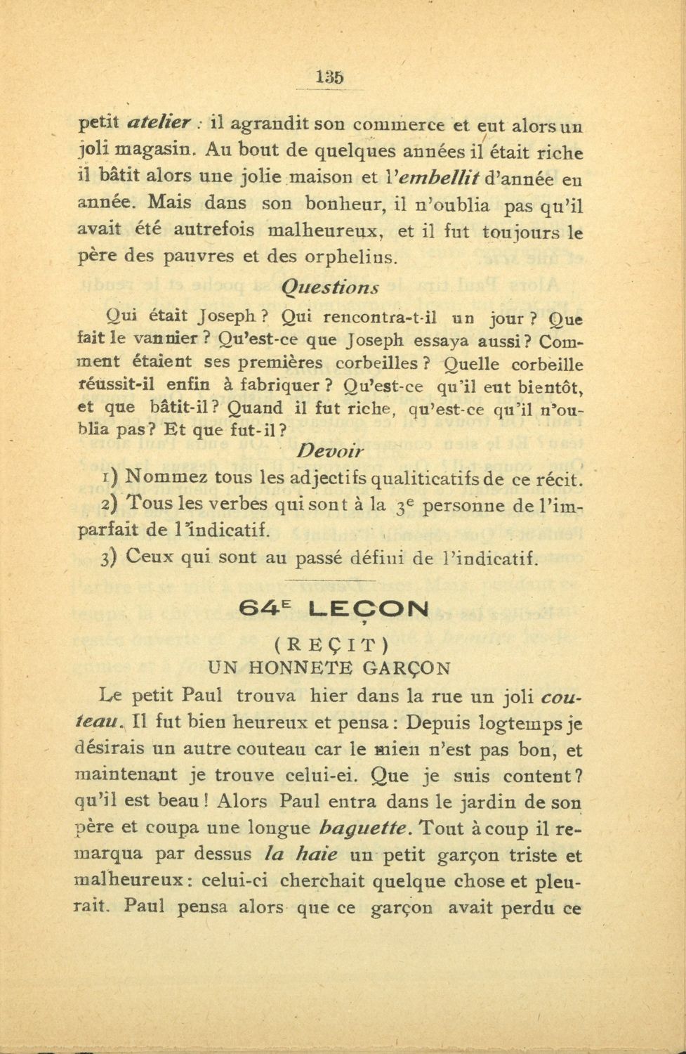 Σχολικό εγχειρίδιο Γαλλικών για τις Β΄ και Γ' Ελληνικού Σχολείου, Αστικού Σχολείου και Παρθεναγωγείου που περιλαμβάνει κείμενα, κανόνες γραμματικής και συντακτικού, και λεξιλογικά και πραγματολογικά σχόλια.