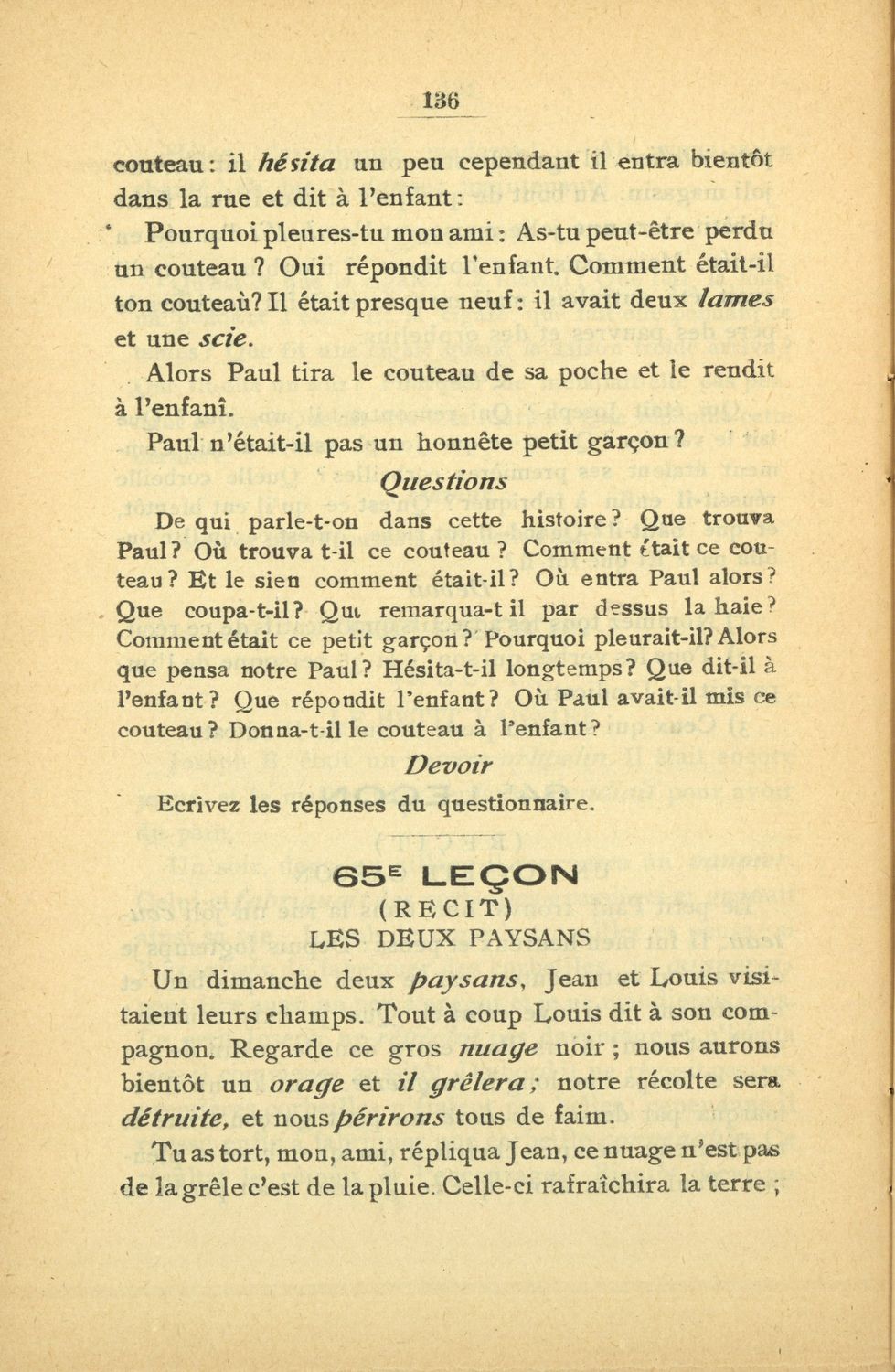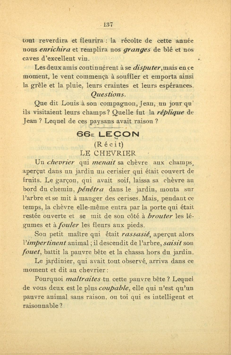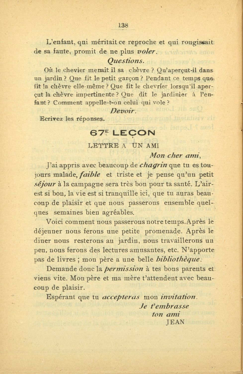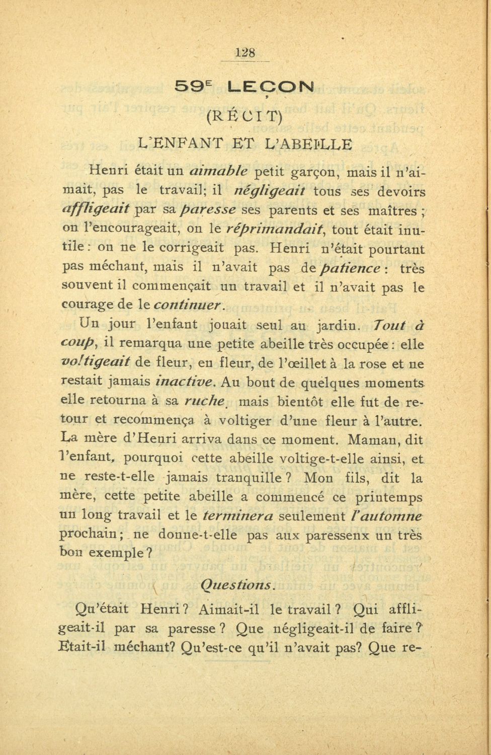 Σχολικό εγχειρίδιο Γαλλικών για τις Β΄ και Γ' Ελληνικού Σχολείου, Αστικού Σχολείου και Παρθεναγωγείου που περιλαμβάνει κείμενα, κανόνες γραμματικής και συντακτικού, και λεξιλογικά και πραγματολογικά σχόλια.