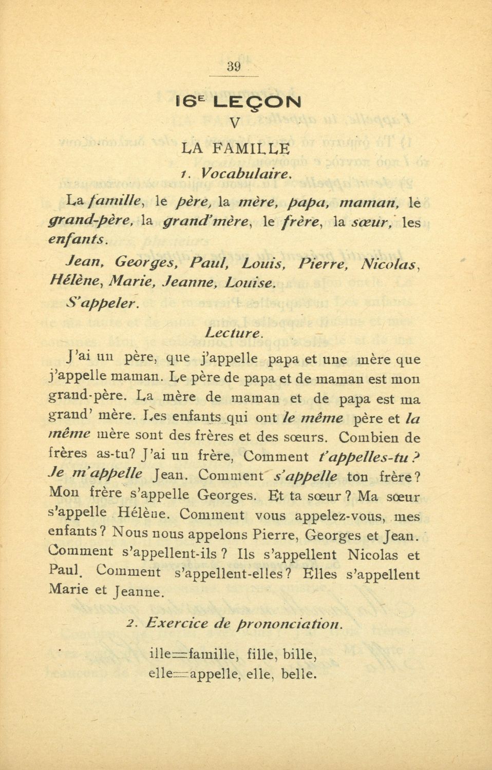 Σχολικό εγχειρίδιο Γαλλικών που περιλαμβάνει 54 κείμενα για τη διδασκαλία των γραμματικών και συντακτικών φαινομένων και της ορθογραφίας, λεξιλόγιο και παράρτημα με τους κανόνες συλλαβισμού.