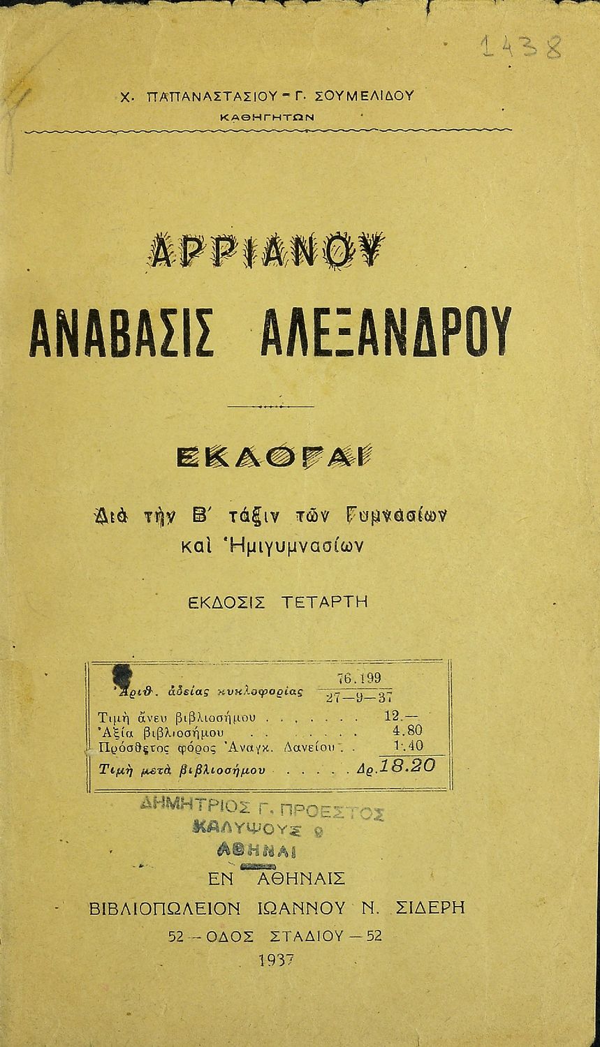 Συγγραφέας: Αρριανός (Lucius Flavius Arrianus), Χ. Παπαναστασίου, Γ. Σουμελίδης (σχόλια)