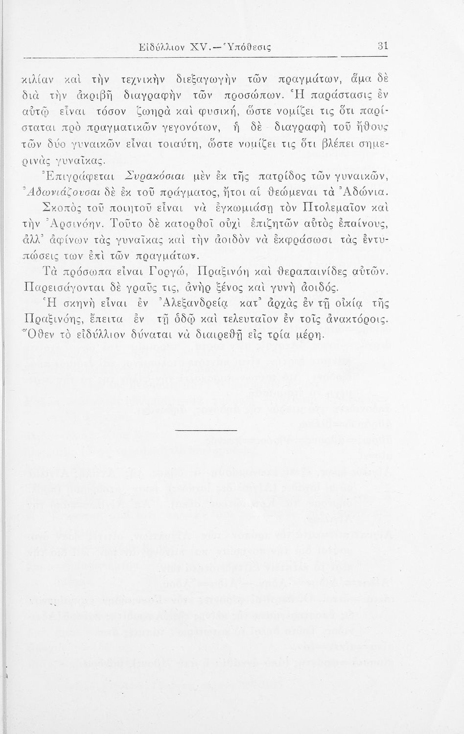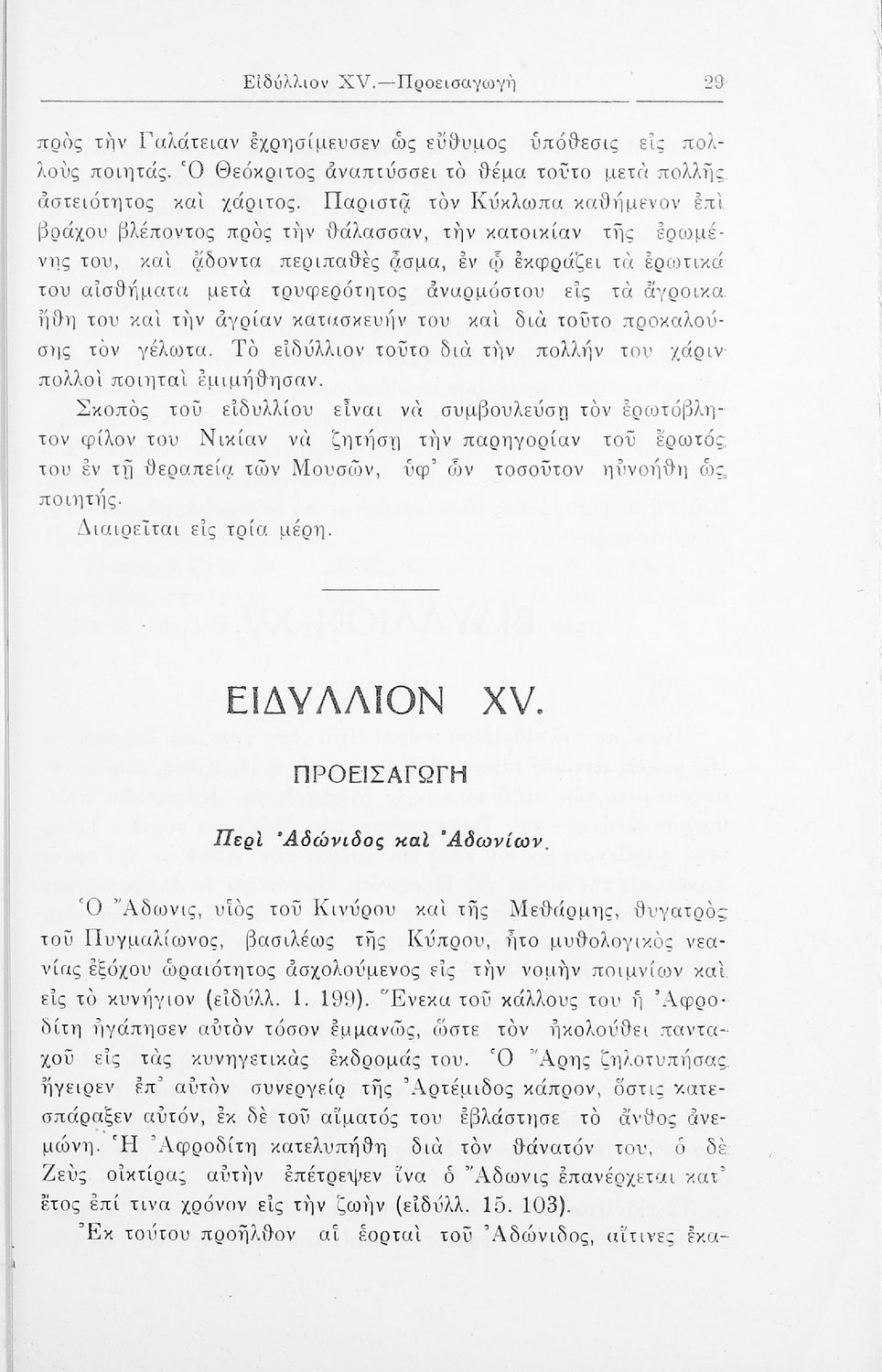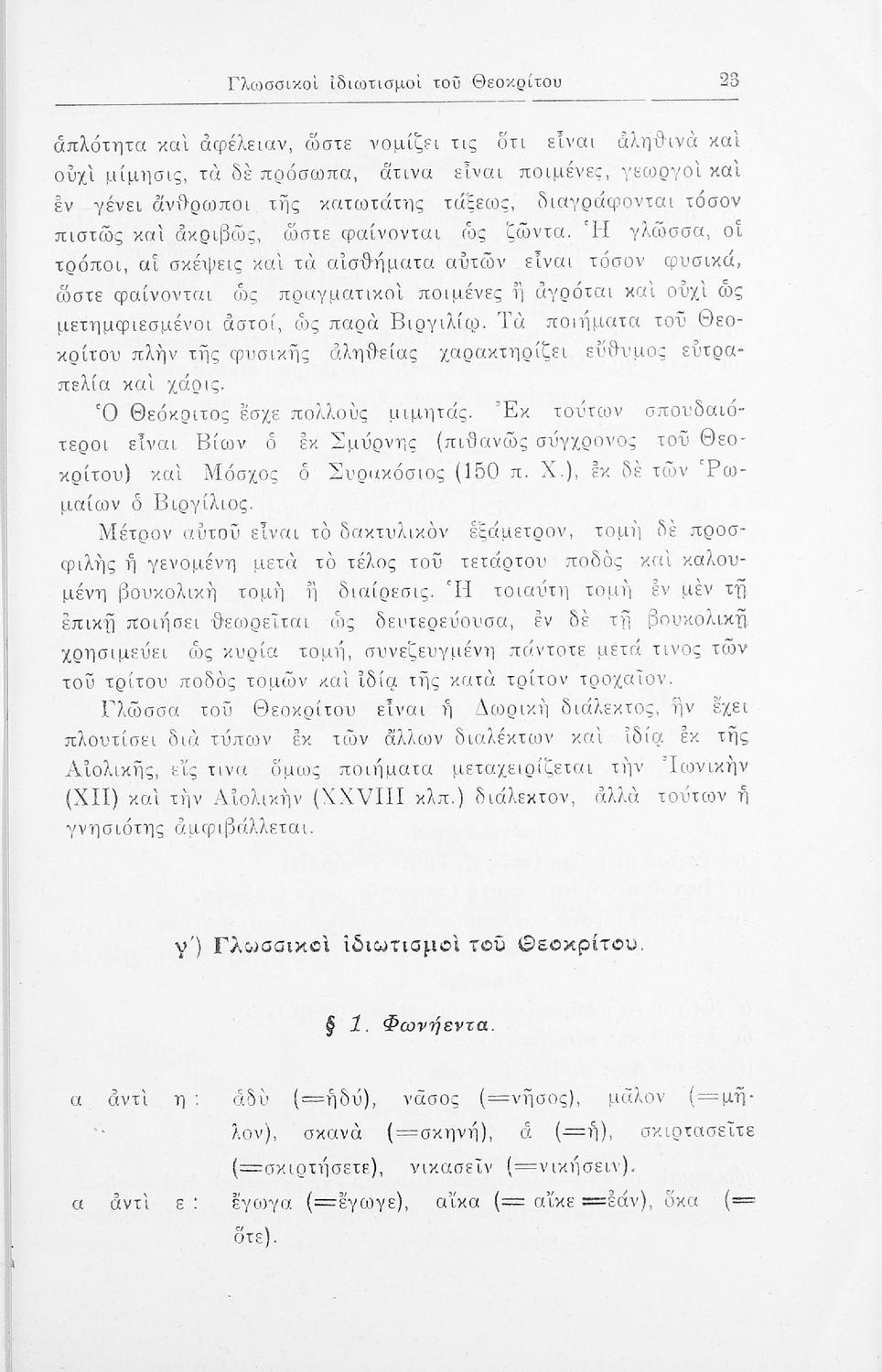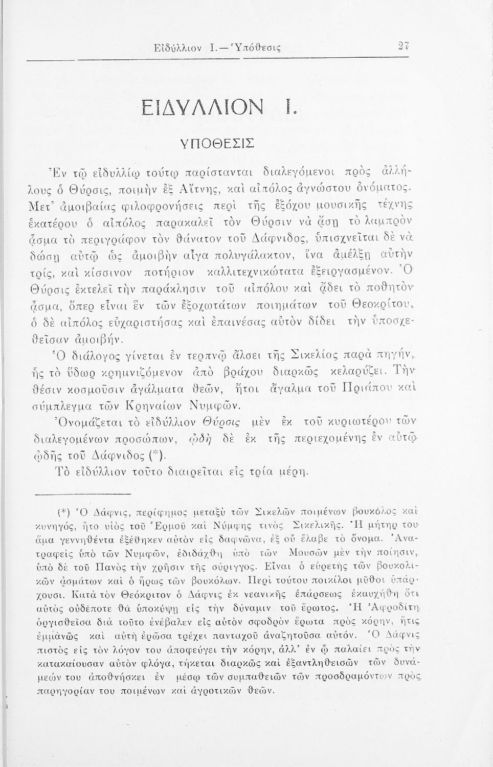 Σχολικό εγχειρίδιο Αρχαίων Ελληνικών που περιλαμβάνει τα ειδύλλια του Θεόκριτου, εισαγωγή στην βουκολική ποίηση, και στη ζωή και το έργο του Θεόκριτου, την υπόθεση του έργου και γραμματικές και συντακτικές ...