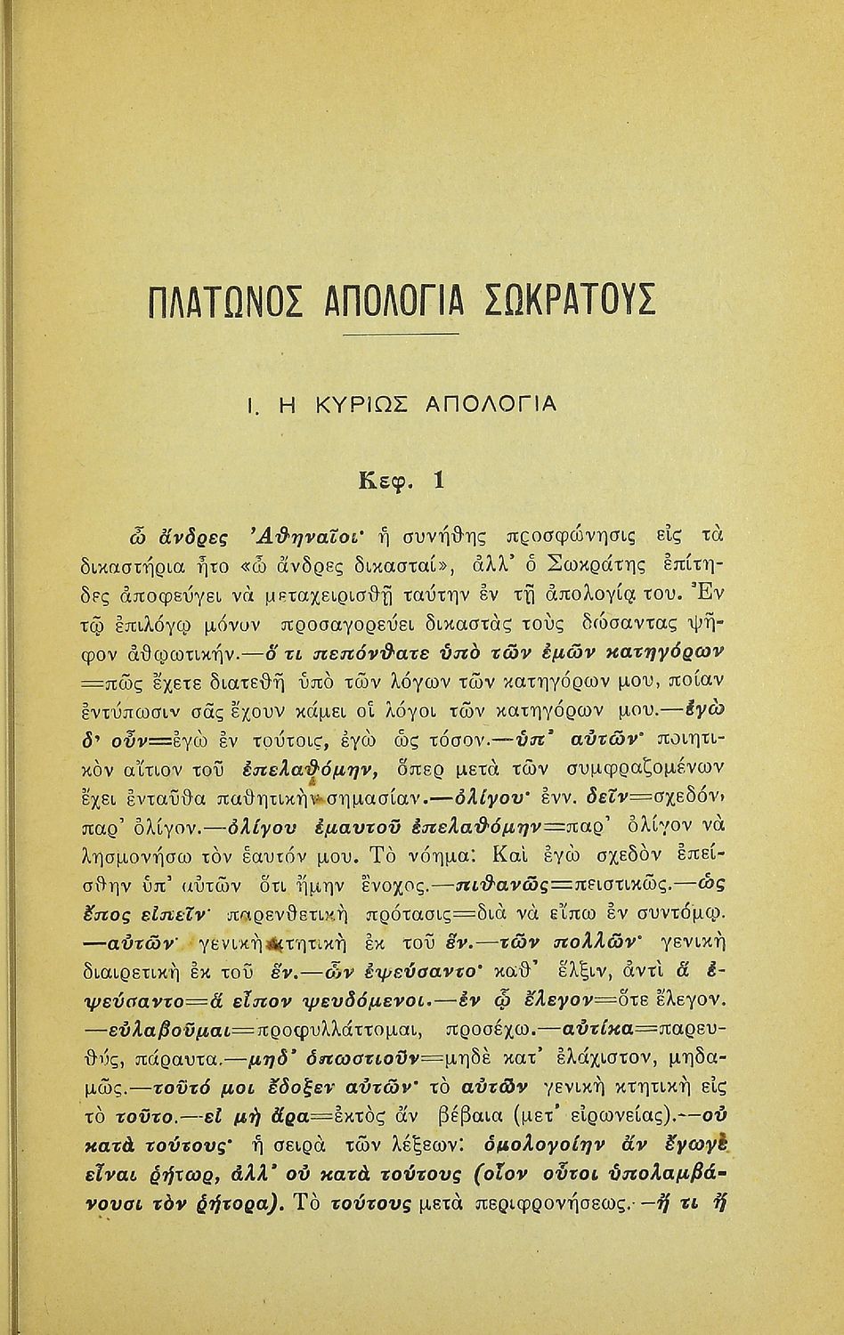 Πλάτωνος Απολογία Σωκράτους εκλογαί μετά εισαγωγής και ερμηνευτικών σημειώσεων διά τους μαθητάς των σχολείων Μ. Εκπαιδεύσεως