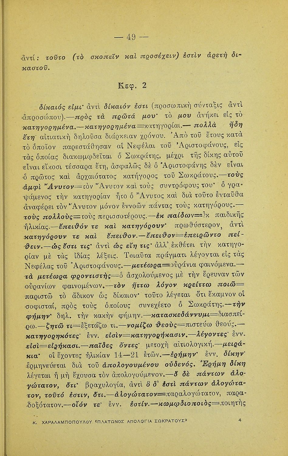 Παιδαγωγικό βοήθημα Αρχαίων Ελληνικών. Βιβλίο που περιέχει την Απολογία του Σωκράτη του Πλάτωνα και ερμηνευτικές σημειώσεις.