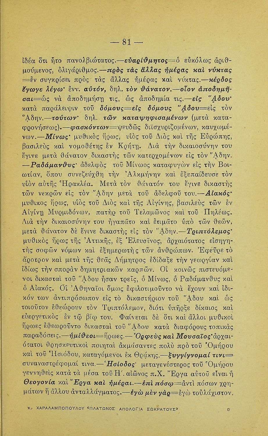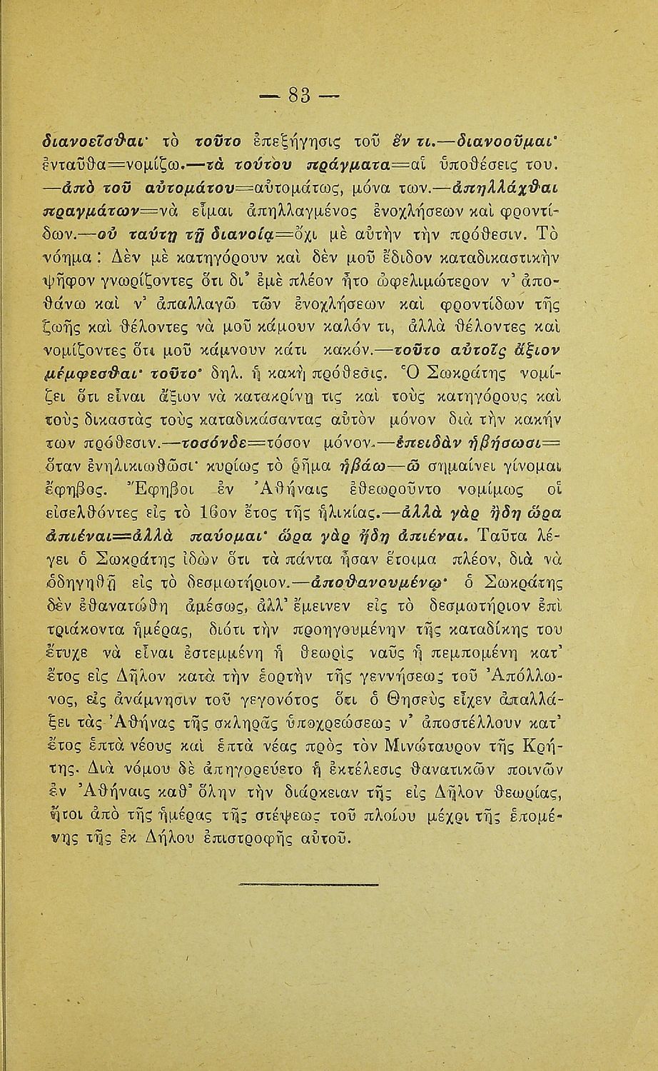 Σχολικό εγχειρίδιο Αρχαίων Ελληνικών που περιλαμβάνει την Απολογία Σωκράτους του Πλάτωνα και ερμηνευτικές παρατηρήσεις.