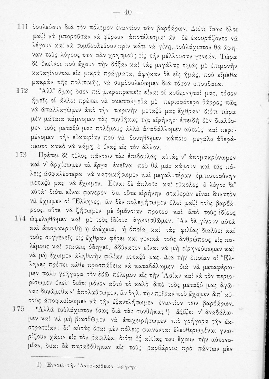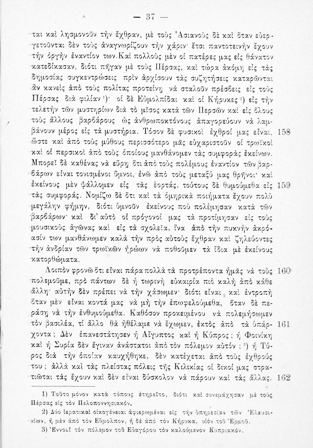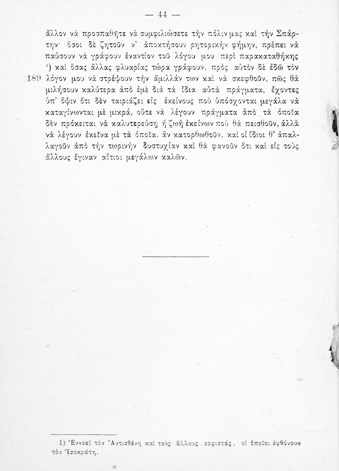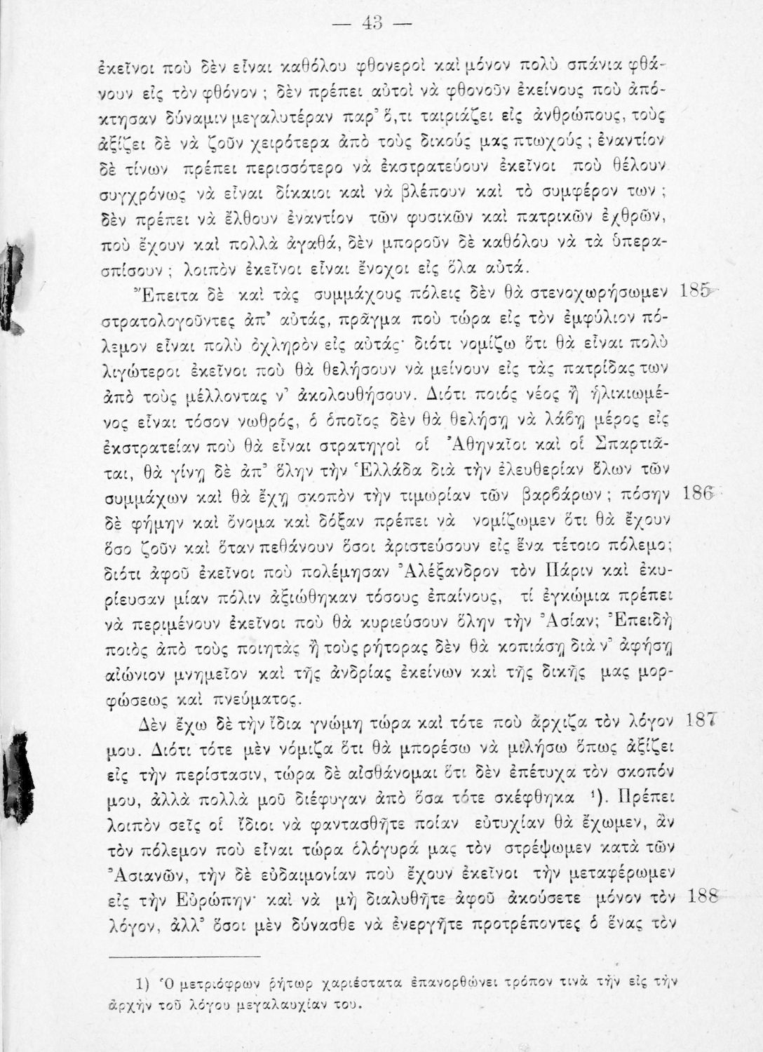 Σχολικό εγχειρίδιο Αρχαίων Ελληνικών Γ΄ Γυμνασίου που περιλαμβάνει μετάφραση του Λόγου του Ισοκράτη Πανηγυρικός, εισαγωγικά σχόλια για τη ζωή και το έργο του και ερμηνευτικά και πραγματολογικά σχόλια.