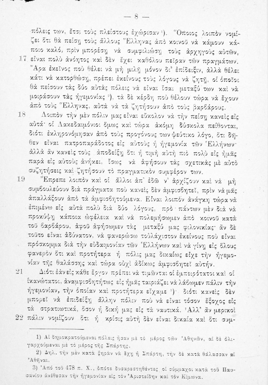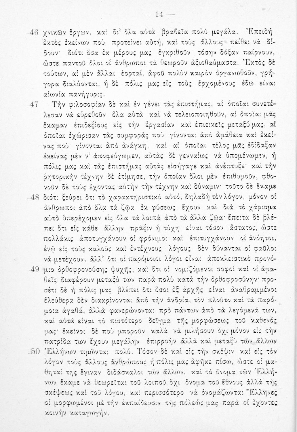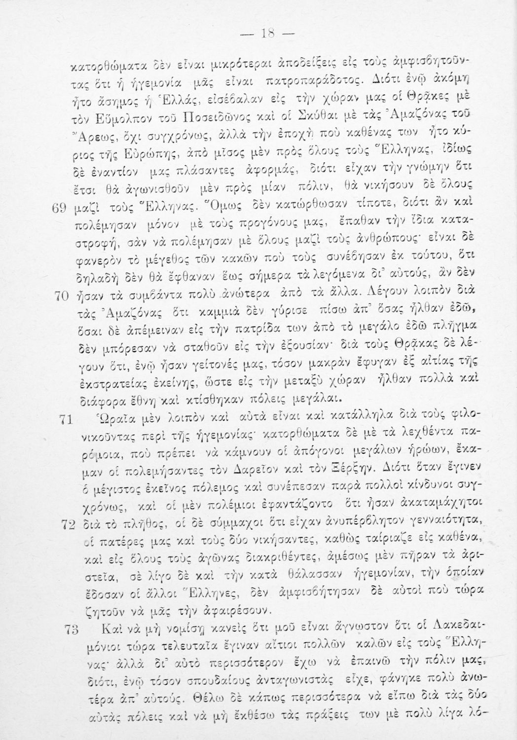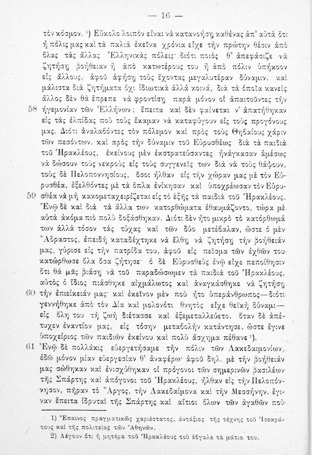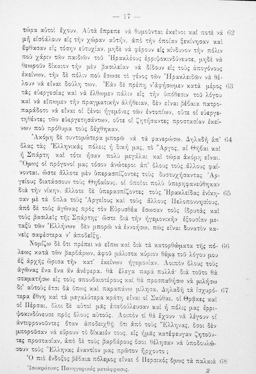 Σχολικό εγχειρίδιο Αρχαίων Ελληνικών Γ΄ Γυμνασίου που περιλαμβάνει μετάφραση του Λόγου του Ισοκράτη Πανηγυρικός, εισαγωγικά σχόλια για τη ζωή και το έργο του και ερμηνευτικά και πραγματολογικά σχόλια.