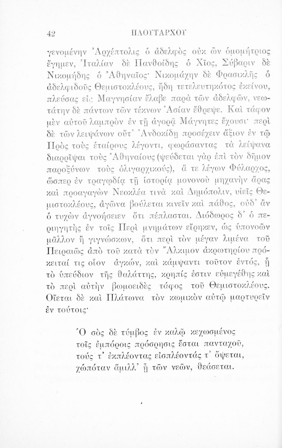 Σχολικό εγχειρίδιο Αρχαίων Ελληνικών Α΄ Γυμνασίου που περιλαμβάνει το έργο του Πλούταρχου Θεμιστοκλής, εισαγωγή στη ζωή και το έργο του, ερμηνευτικά και πραγματολογικά σχόλια, και αλφαβητικό πίνακα των κυριοτέρων ονομάτων.